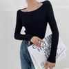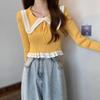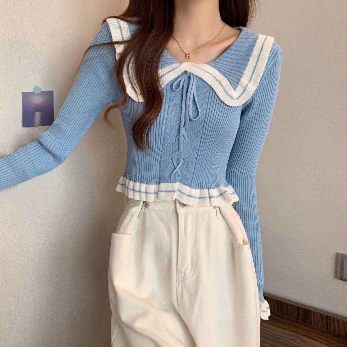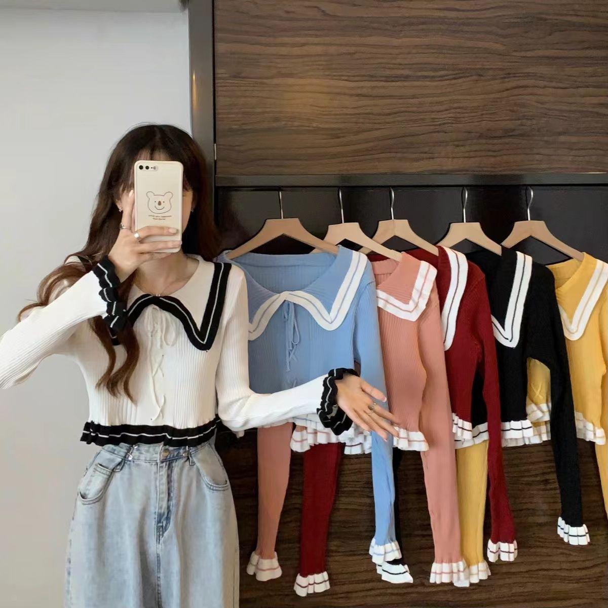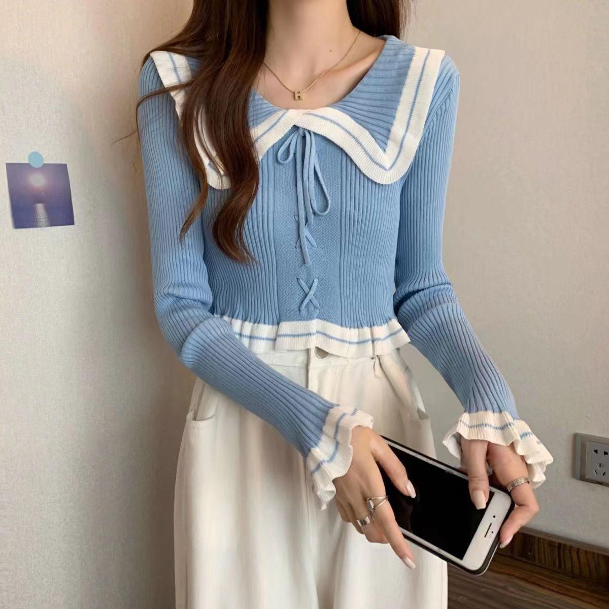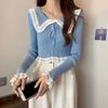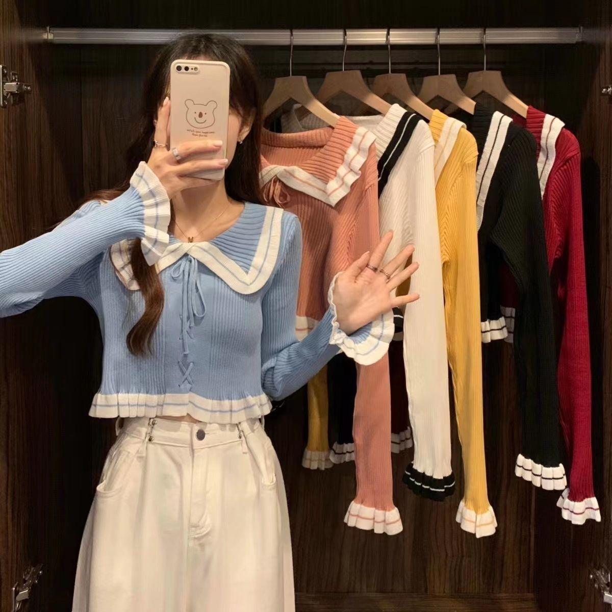 Suéter básico de manga larga con cuello de muñeca estilo francés para mujer Primavera y Otoño Nuevo suéter pequeño corto ajustado