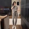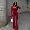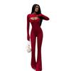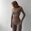 Conjunto deportivo ajustado de dos piezas para mujer, sexy, con cuello redondo, manga larga y espalda descubierta, estilo transfronterizo europeo y americano.