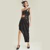Vestido largo de tubo con cuello sexy de moda europea y americana, vestido ajustado elegante con abertura, vestido de noche elegante para mujer