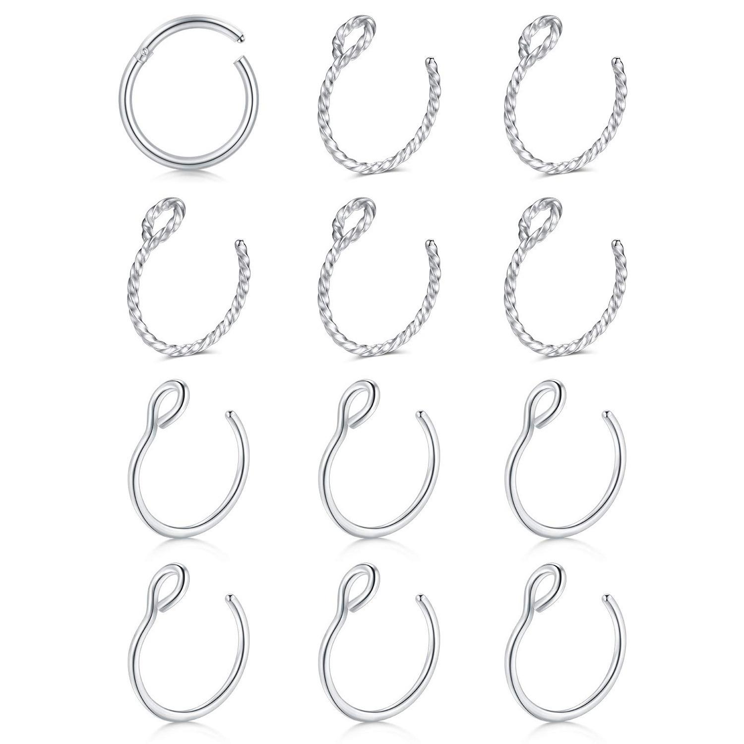 Anillo nasal de acero inoxidable transfronterizo de 12 piezas, joyería anti-punción plateada, ideal para Amazon, AliExpress y mucho más.
