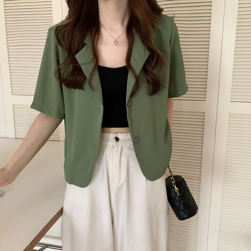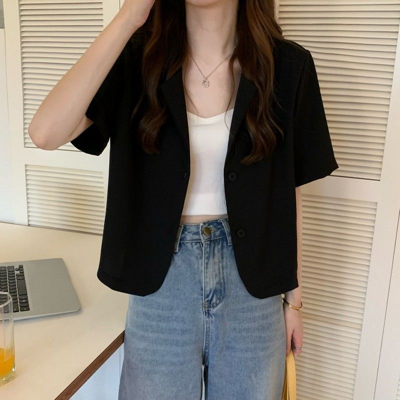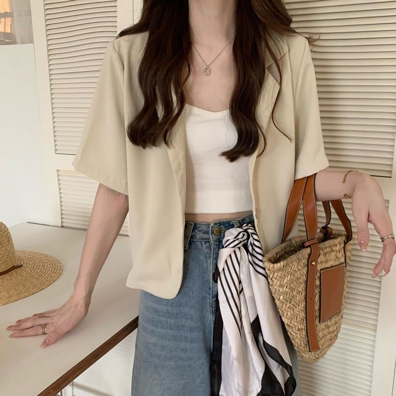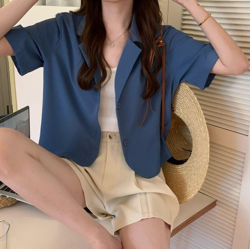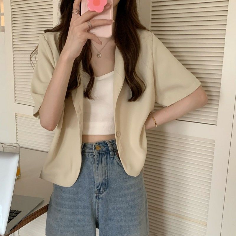 Abrigo informal holgado de verano de nuevo estilo 2024, traje de manga corta, top y pantalón corto exterior.