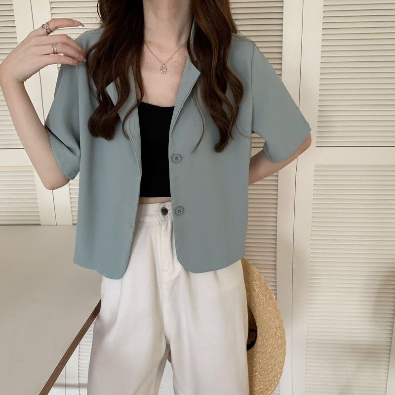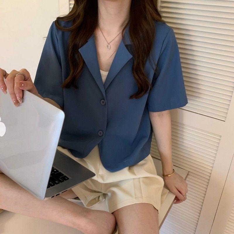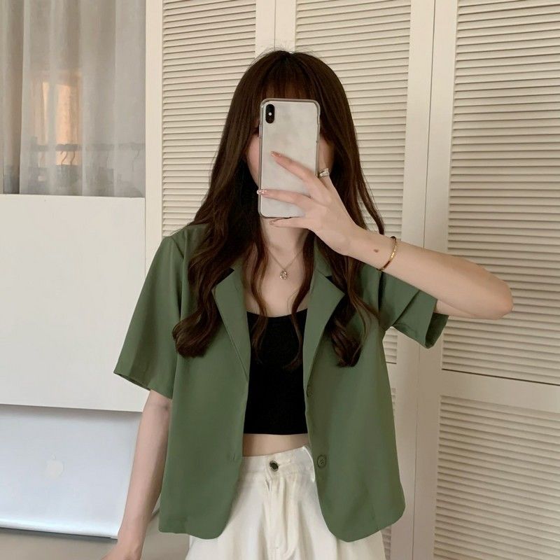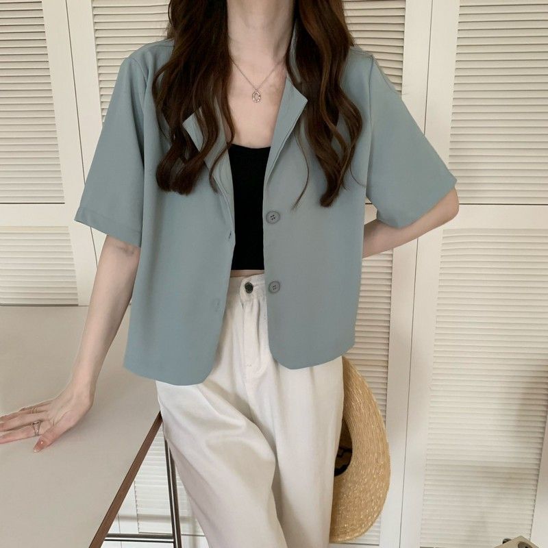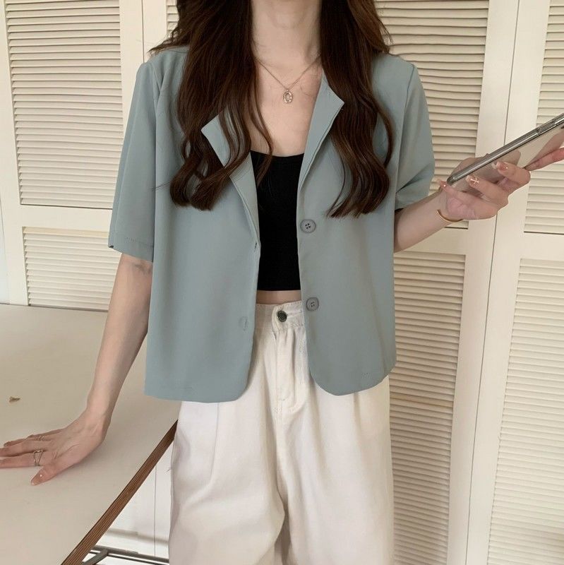 Abrigo informal holgado de verano de nuevo estilo 2024, traje de manga corta, top y pantalón corto exterior.