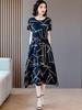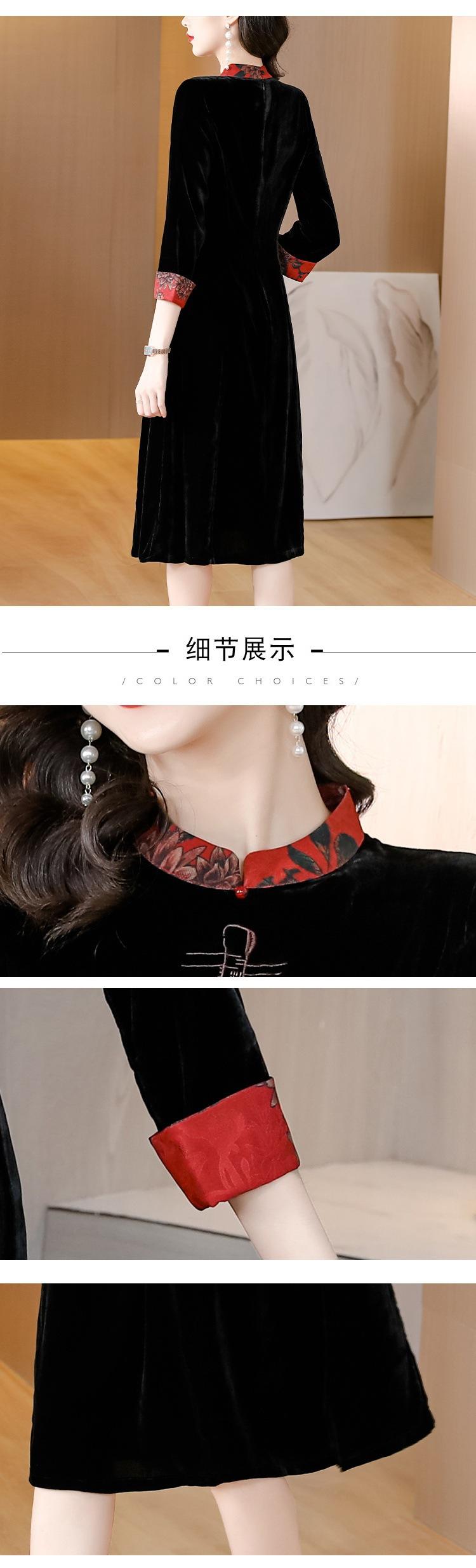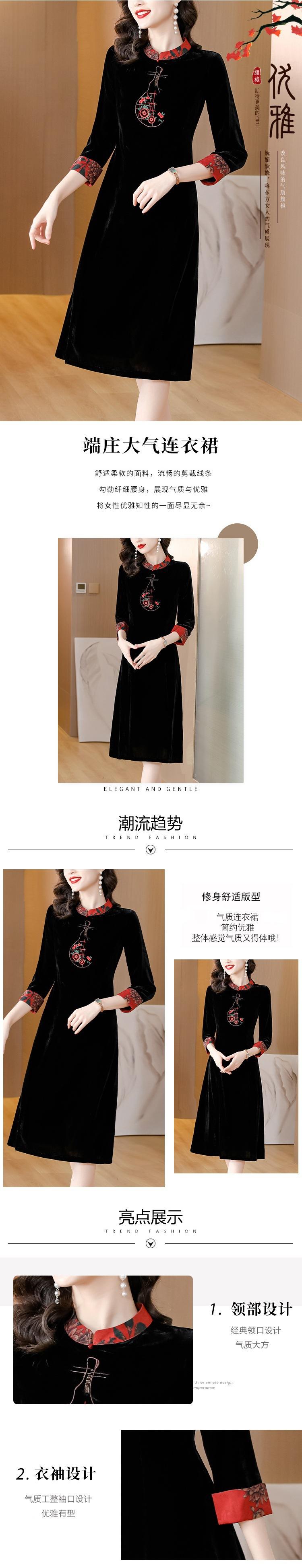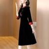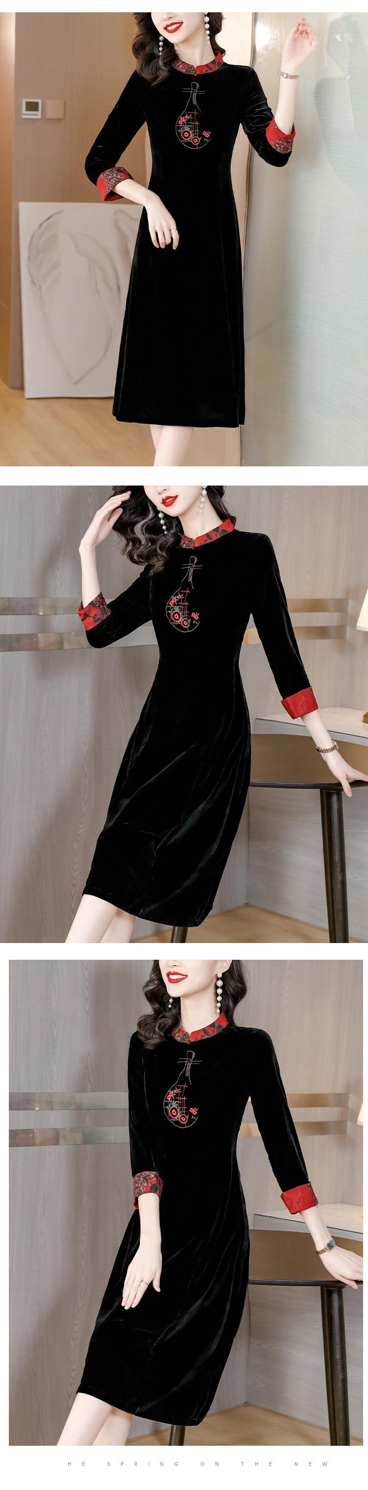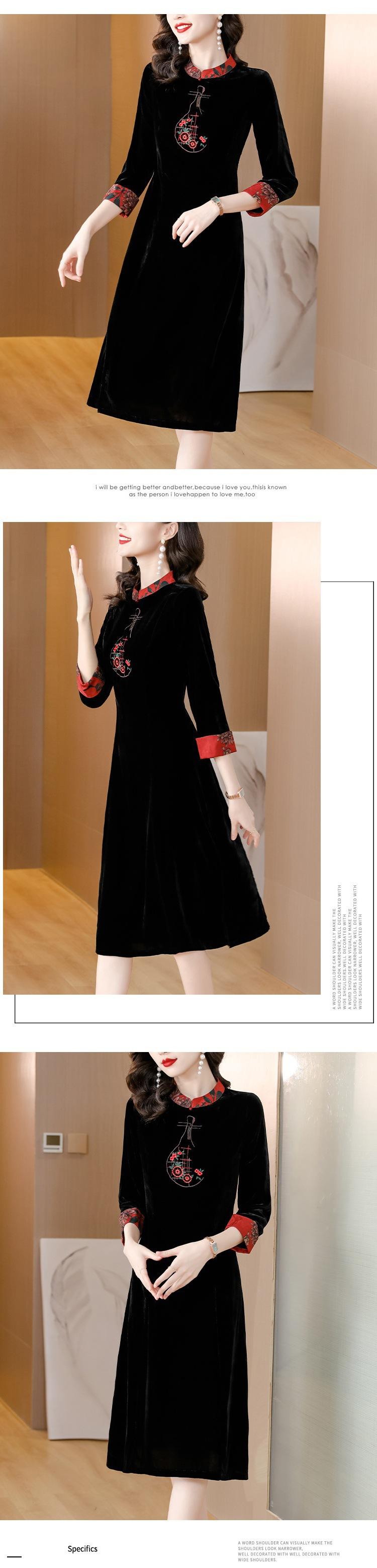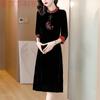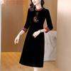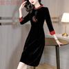 Garantía de Calidad Terciopelo Dorado Seda Madre Joven Vintage Vestido Bordado Combinable Holgado Adelgazante Midi