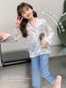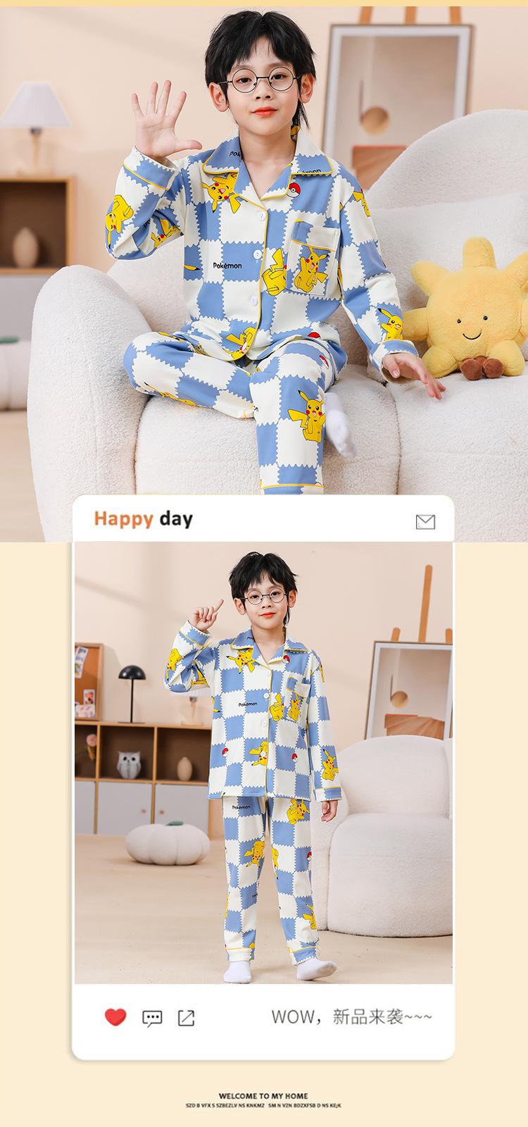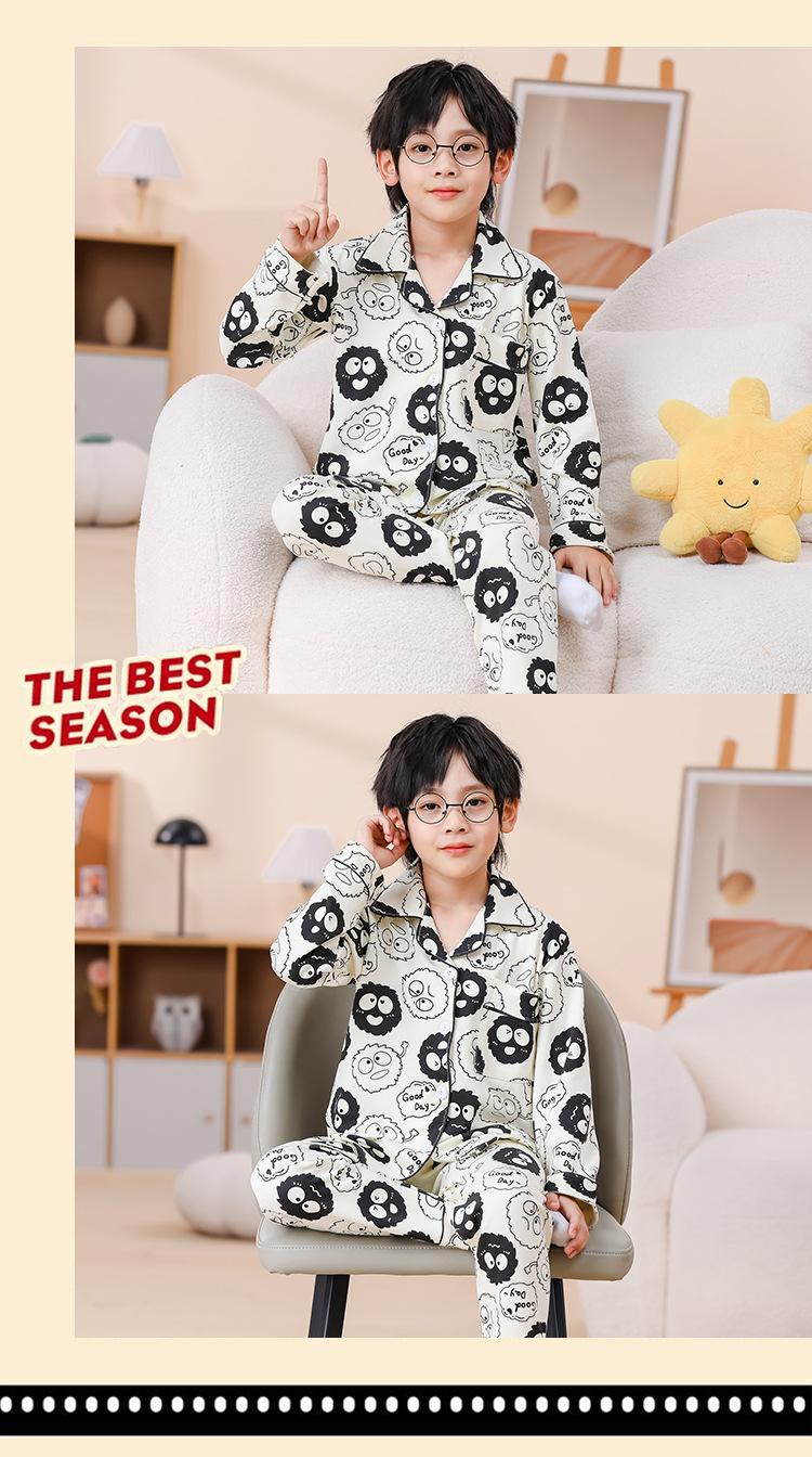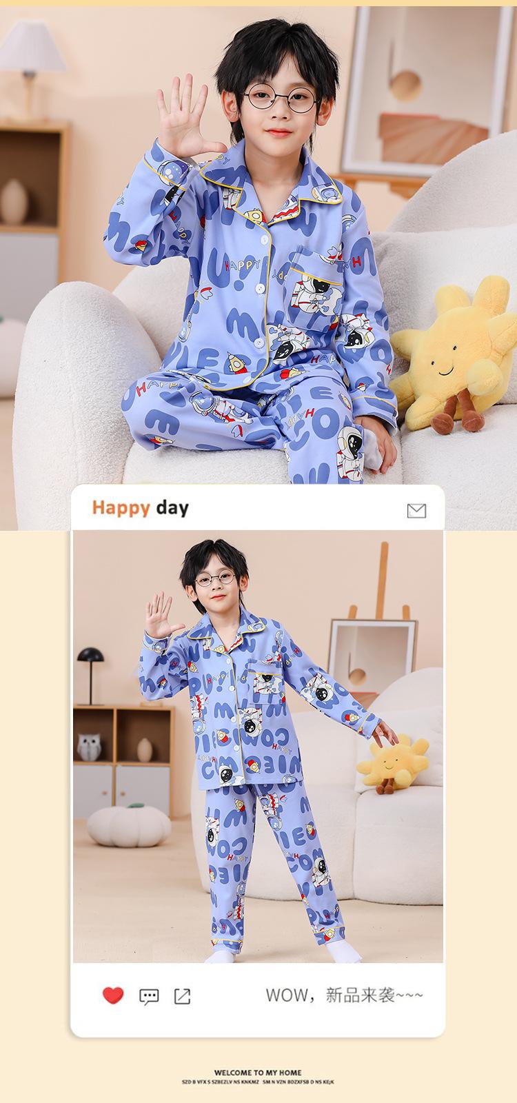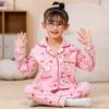 Pijamas para Niñas Primavera y Otoño Manga Larga Niñas Lindo Dibujo Animado Traje para Aire Acondicionado Cárdigan con Solapa para Niños Grandes Ropa para el Hogar Ropa Exterior