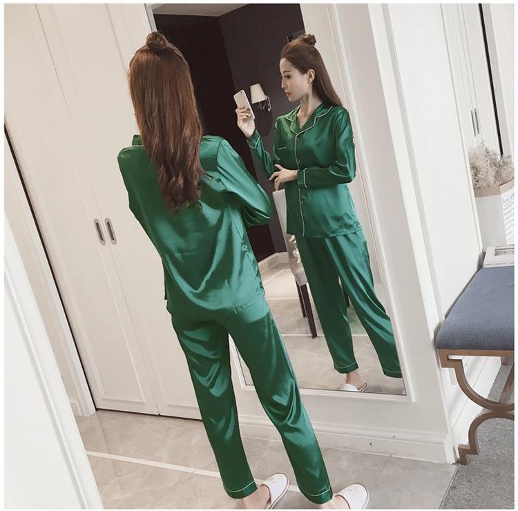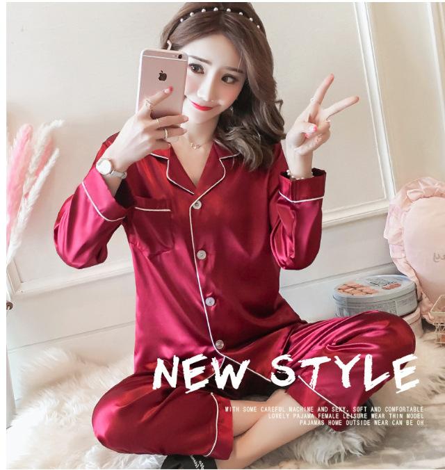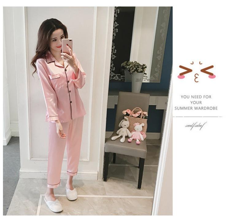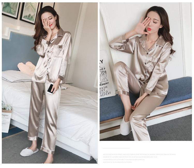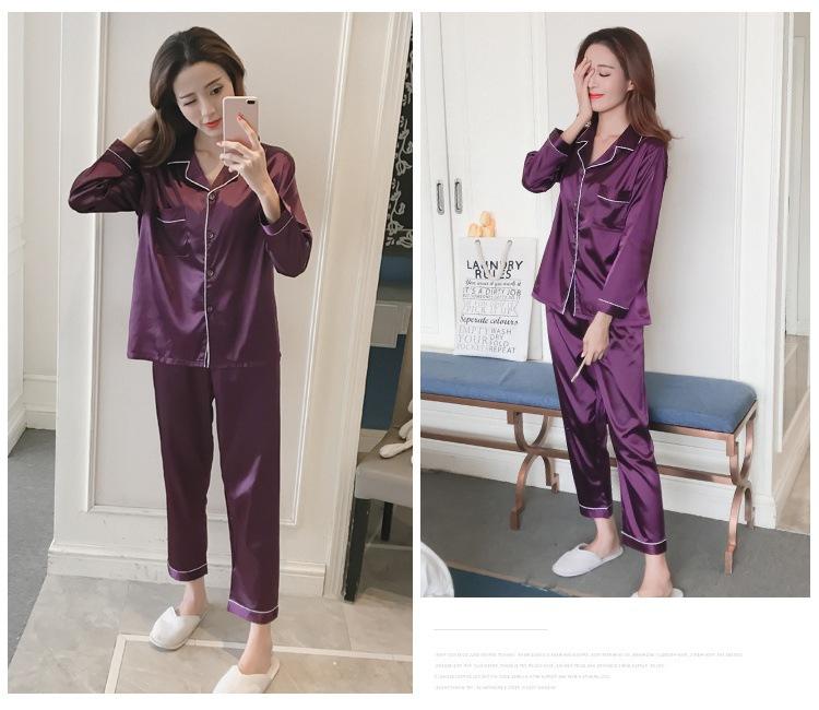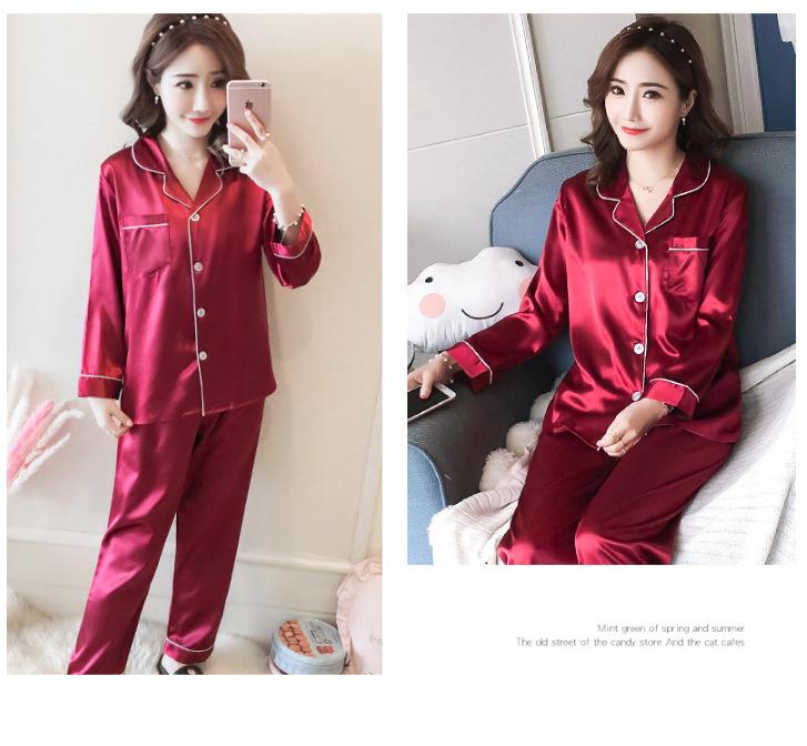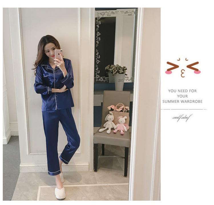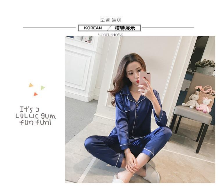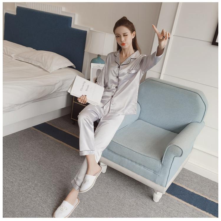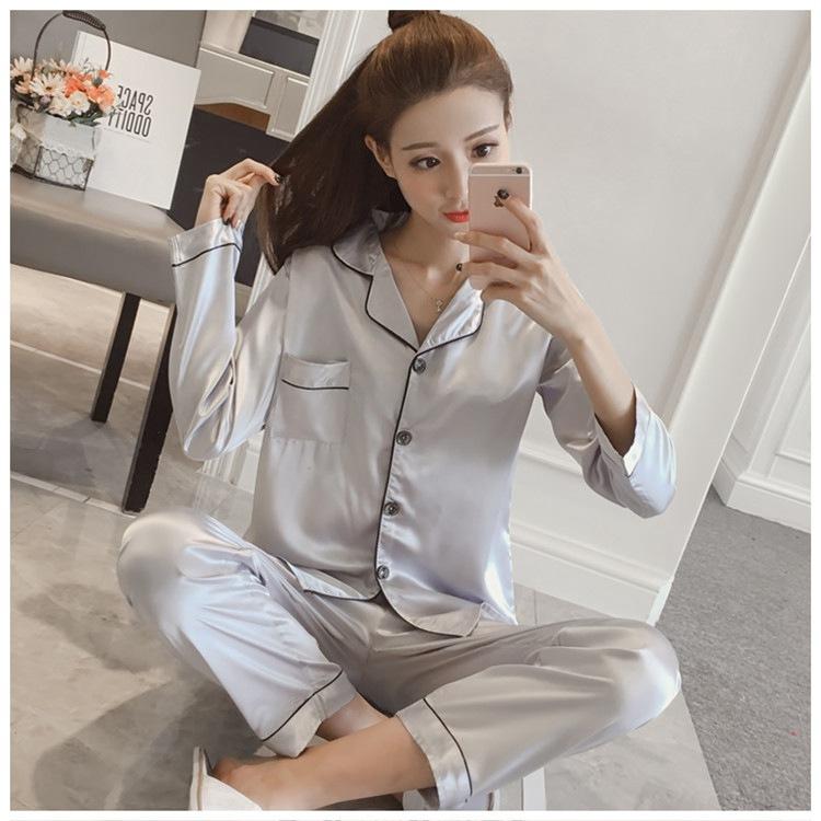 Pijama de Comercio Exterior Transfronterizo para Mujer, Cárdigan Delgado de Talla Grande, Traje de Seda de Hielo de Manga Larga, Ropa de Casa Suelta de Imitación de Seda