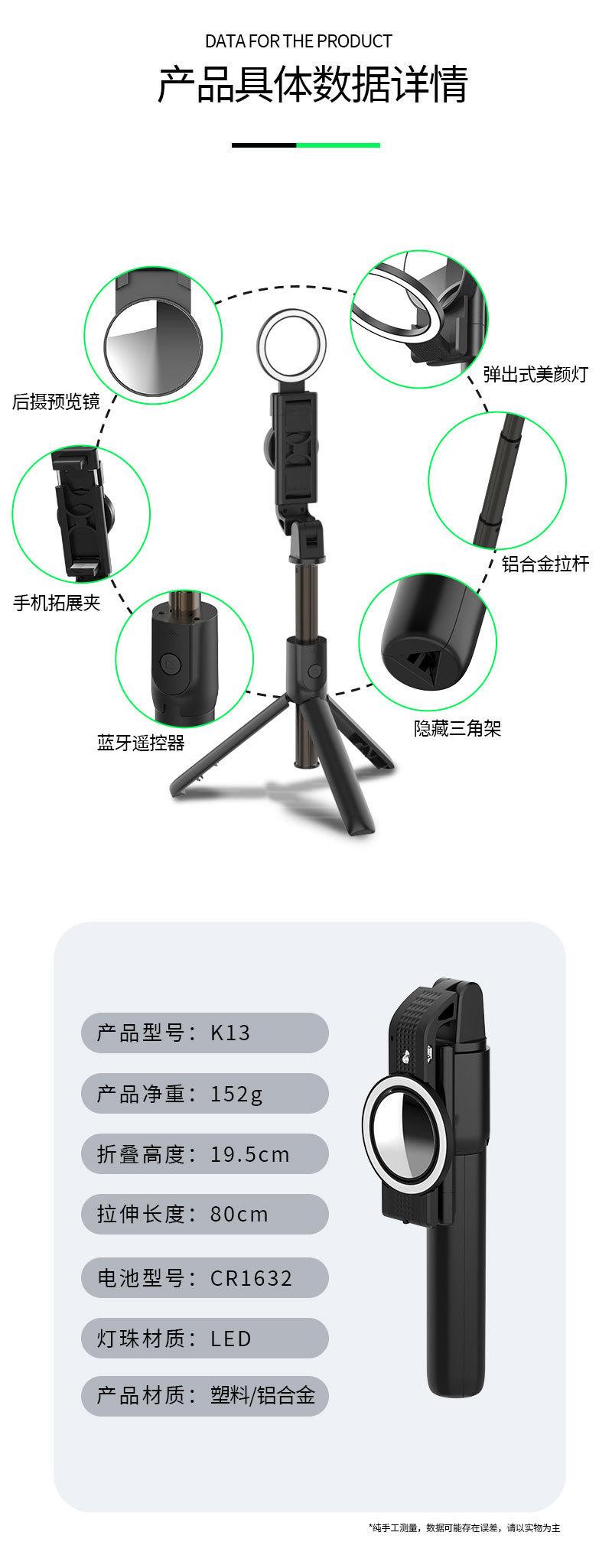 Nuevo palo de selfie K13 con Bluetooth, trípode portátil integrado, palo de selfie universal para teléfono móvil, soporte para teléfono móvil en vivo
