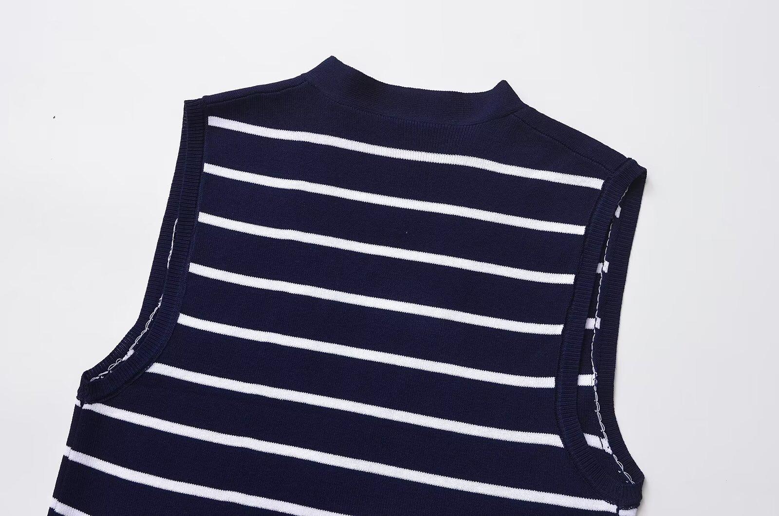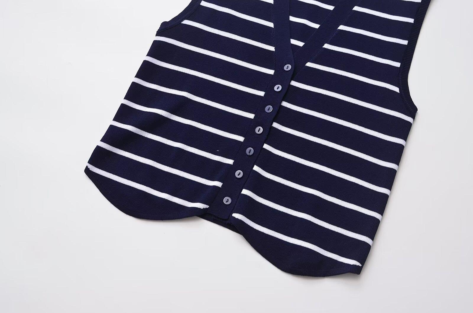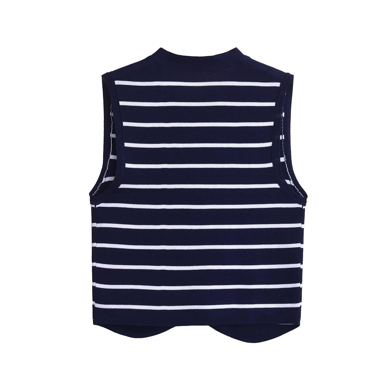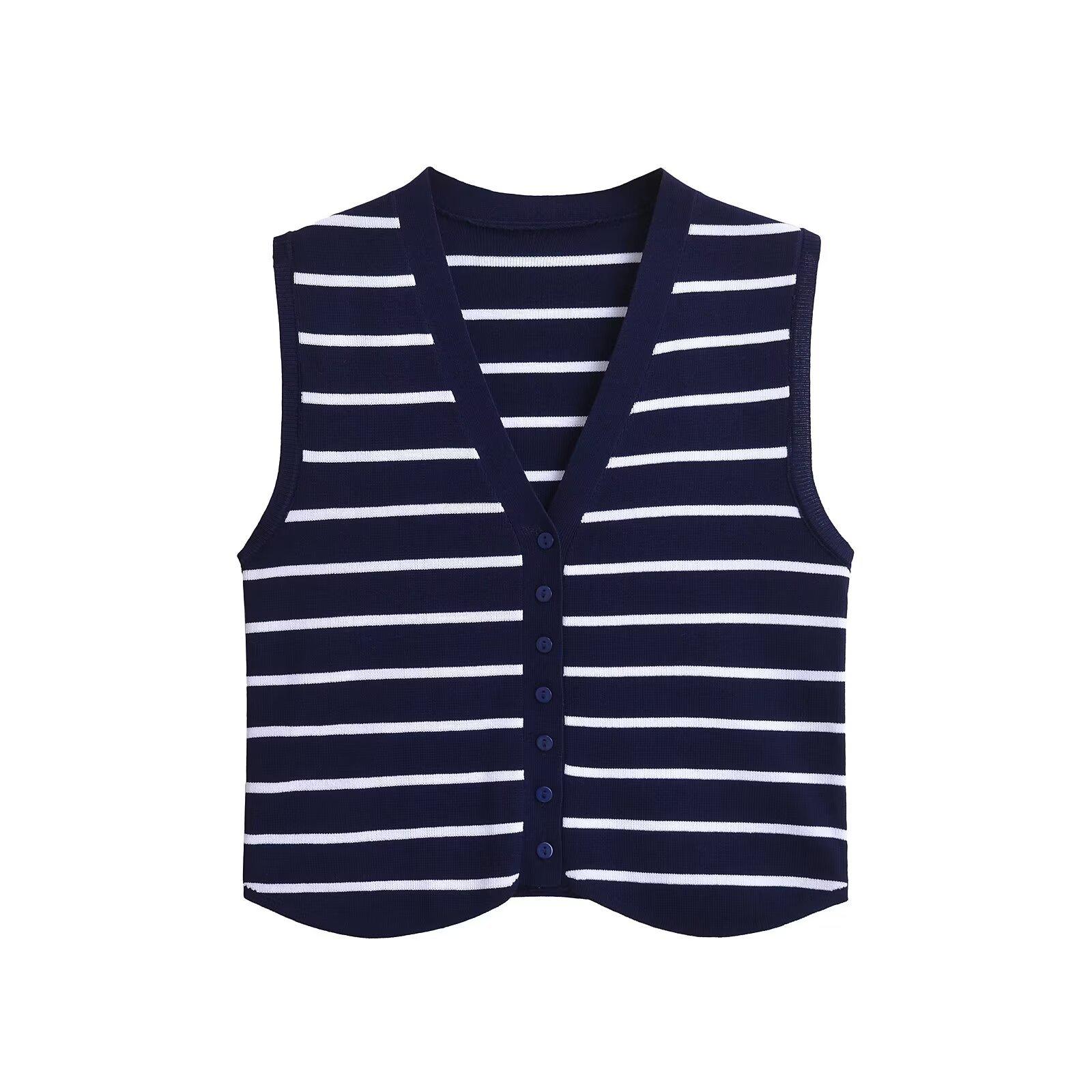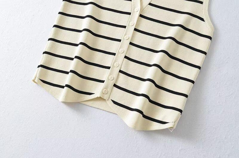 Otoño 2024 Nuevo chaleco de punto informal para mujer, estilo transfronterizo europeo y americano, de moda, con cuello en V y rayas.