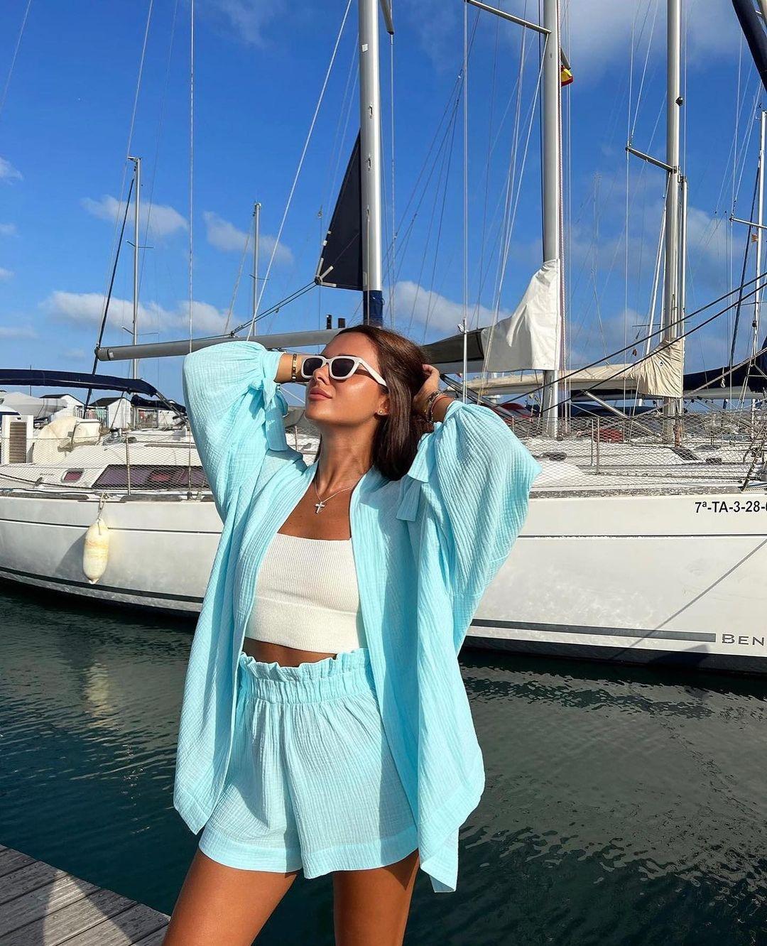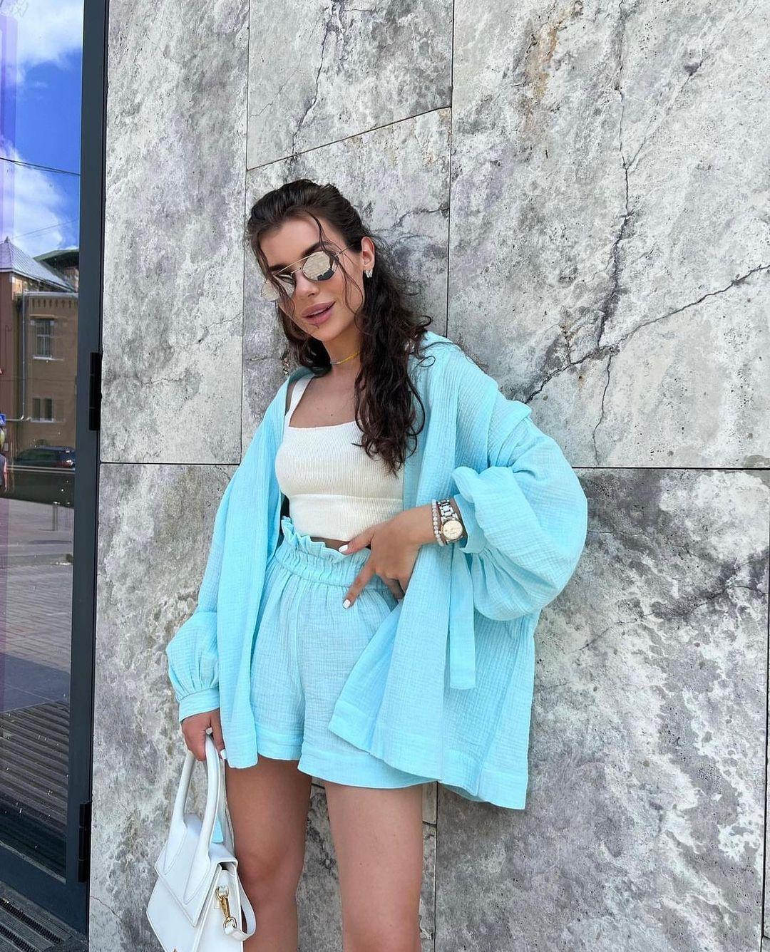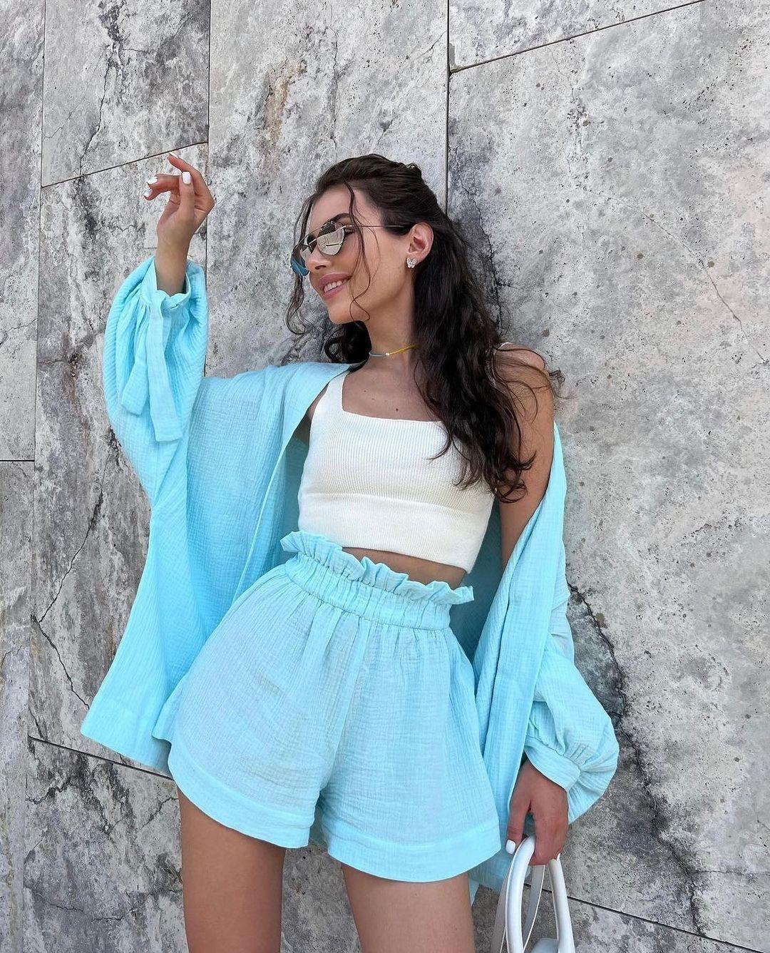 2024 nuevo comercio exterior transfronterizo suelto primavera y verano traje de mujer top pantalones cortos moda casual mujer dos piezas al por mayor