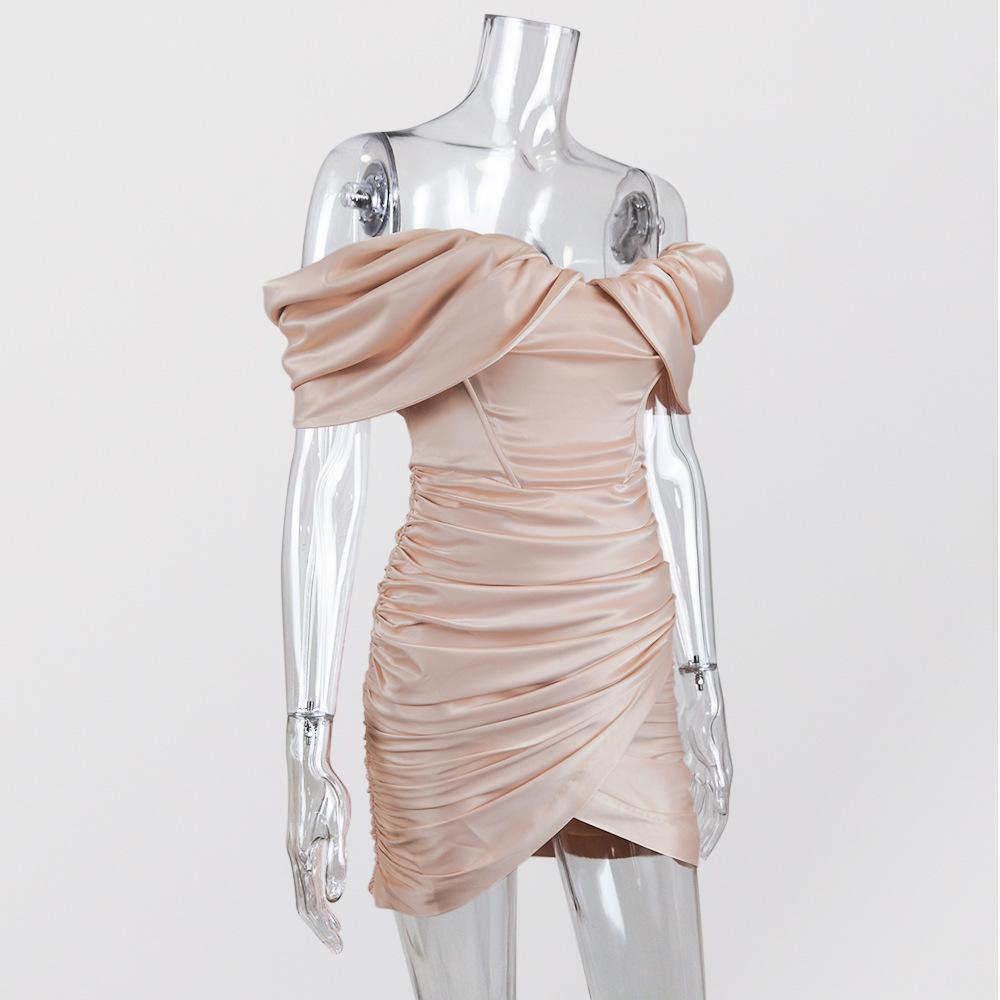 2024 Ropa de mujer de comercio exterior transfronterizo europeo y americano Nuevo vestido de hombro con tarjeta de espiga de pescado con top de tubo ajustado sexy y falda plisada