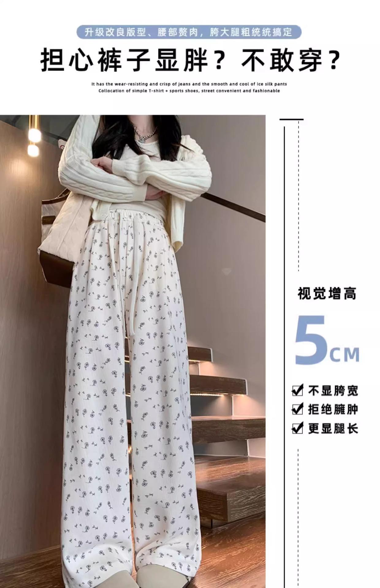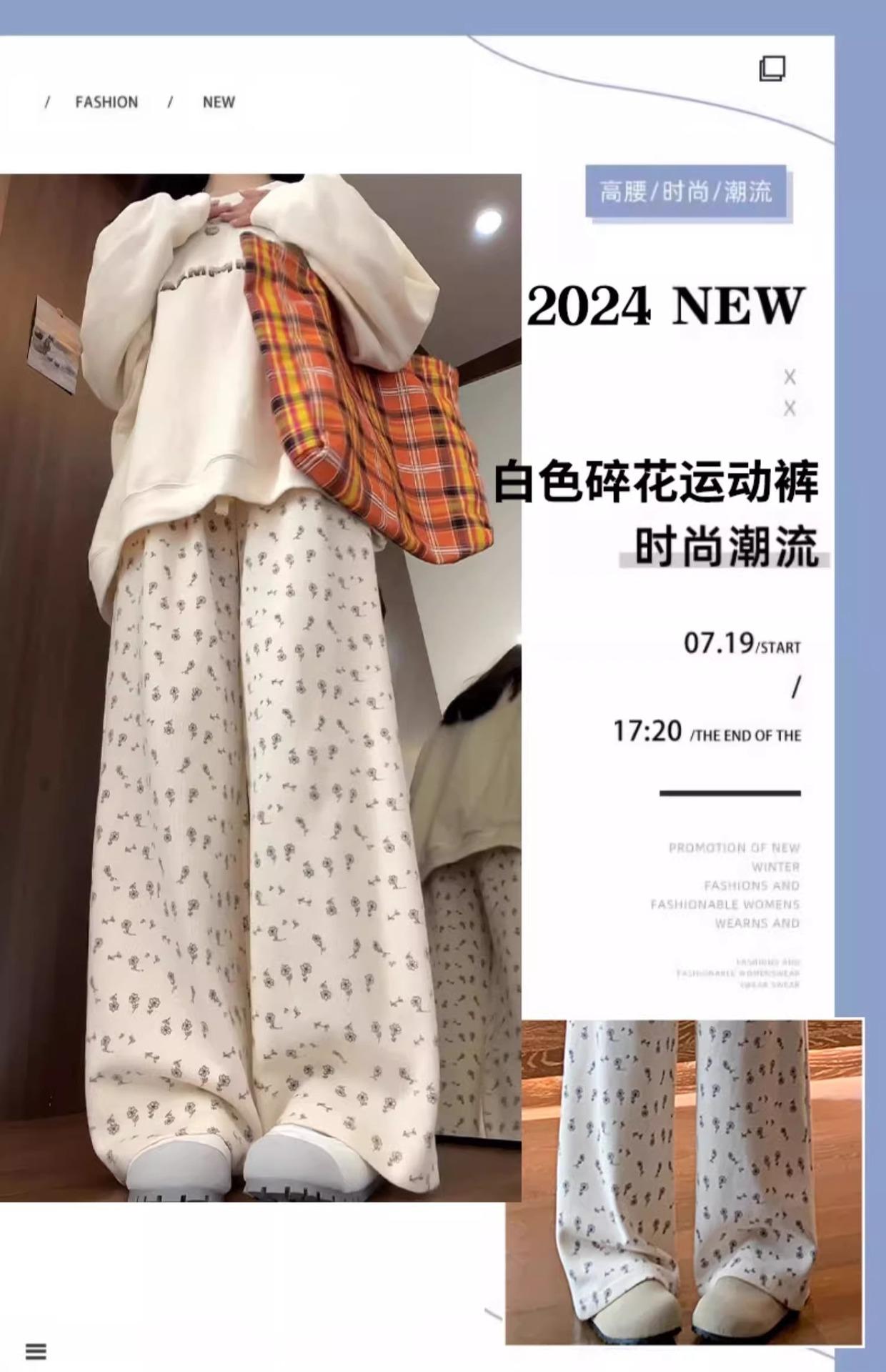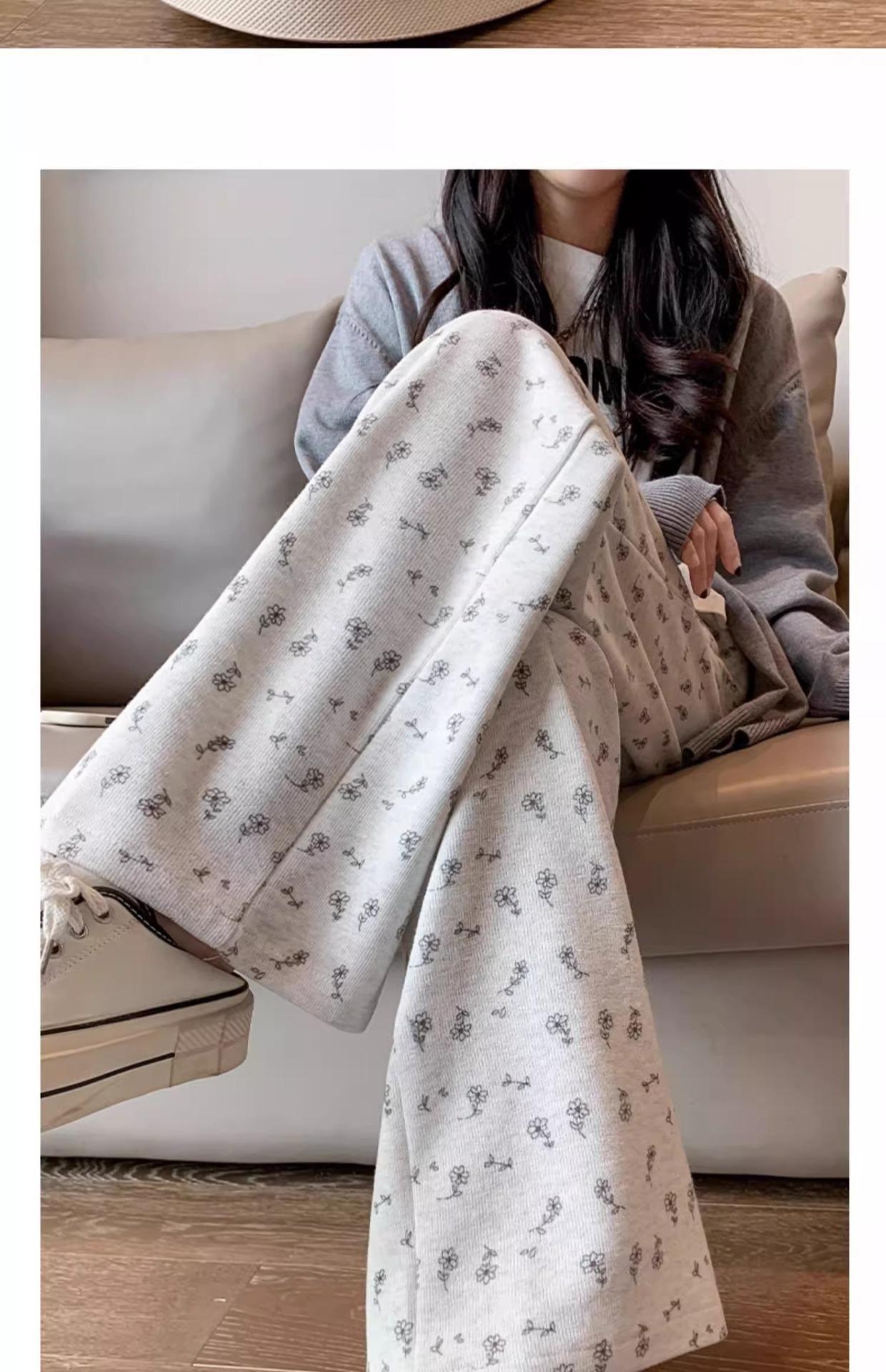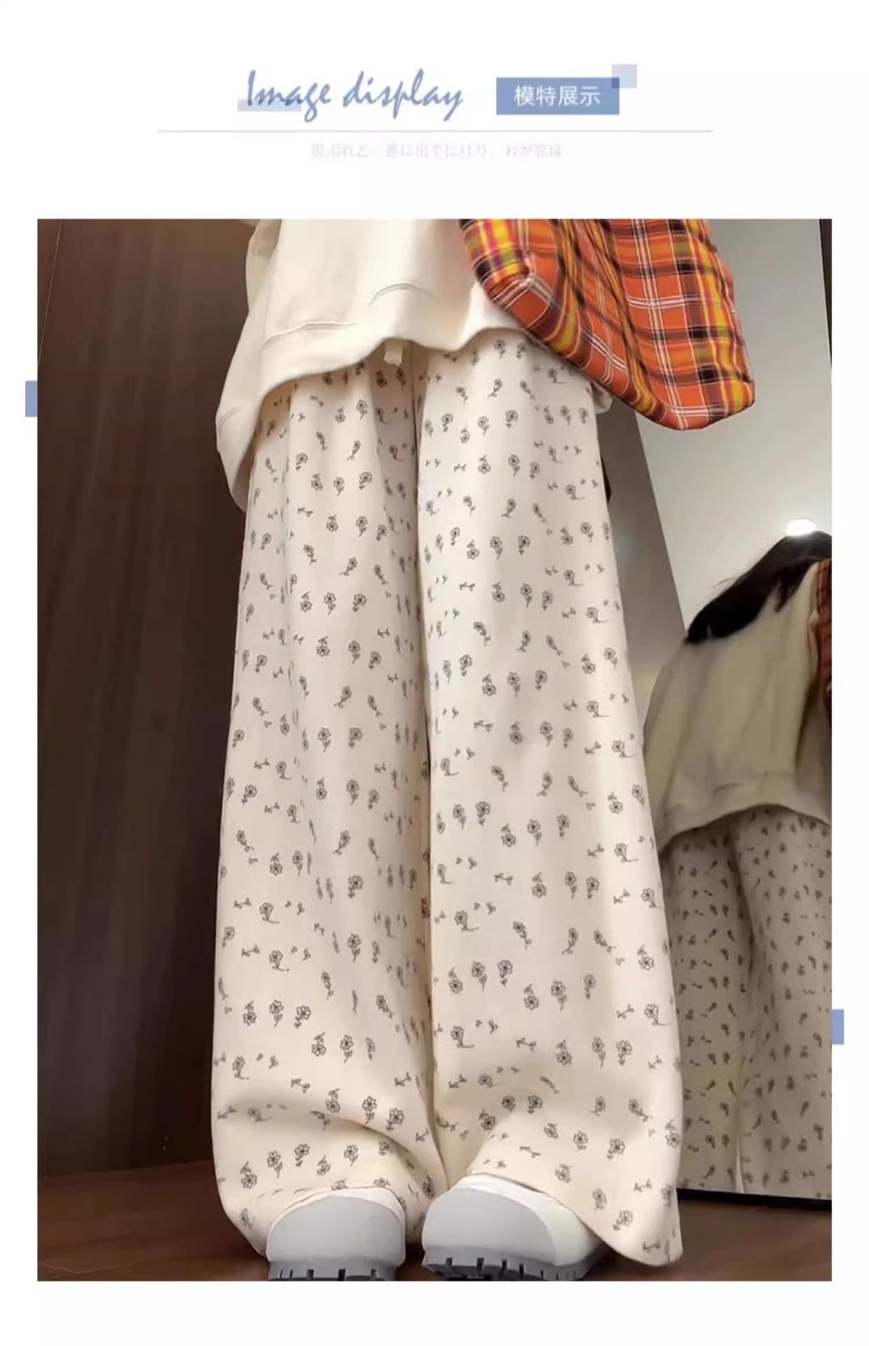 Pantalones Florales Blancos para Mujer Primavera Otoño e Invierno Pantalones Cortos Sueltos Rectos 2024 Nuevos Pantalones Deportivos de Pierna Ancha