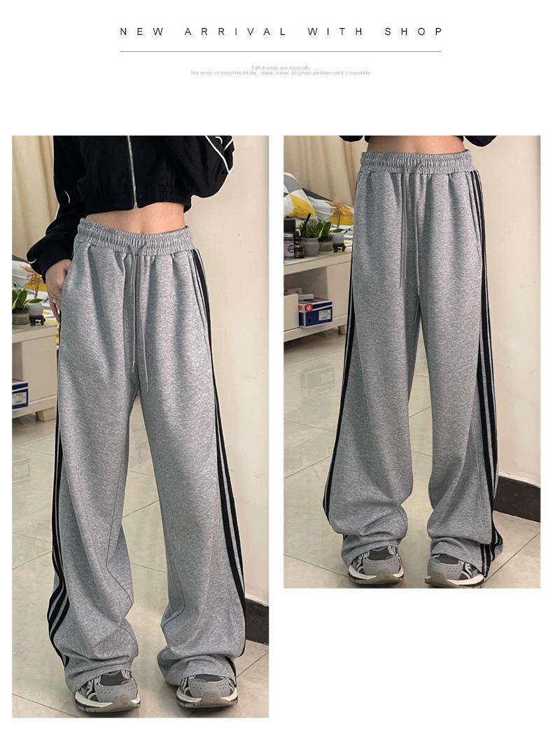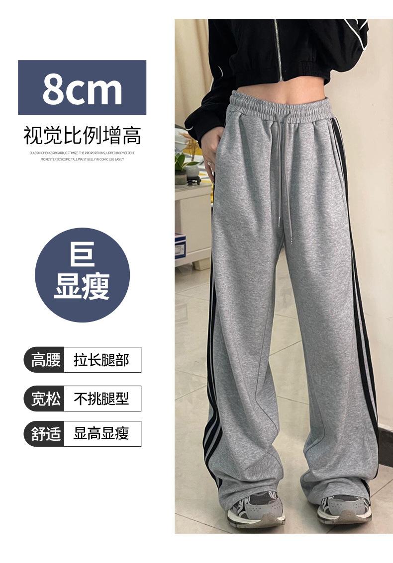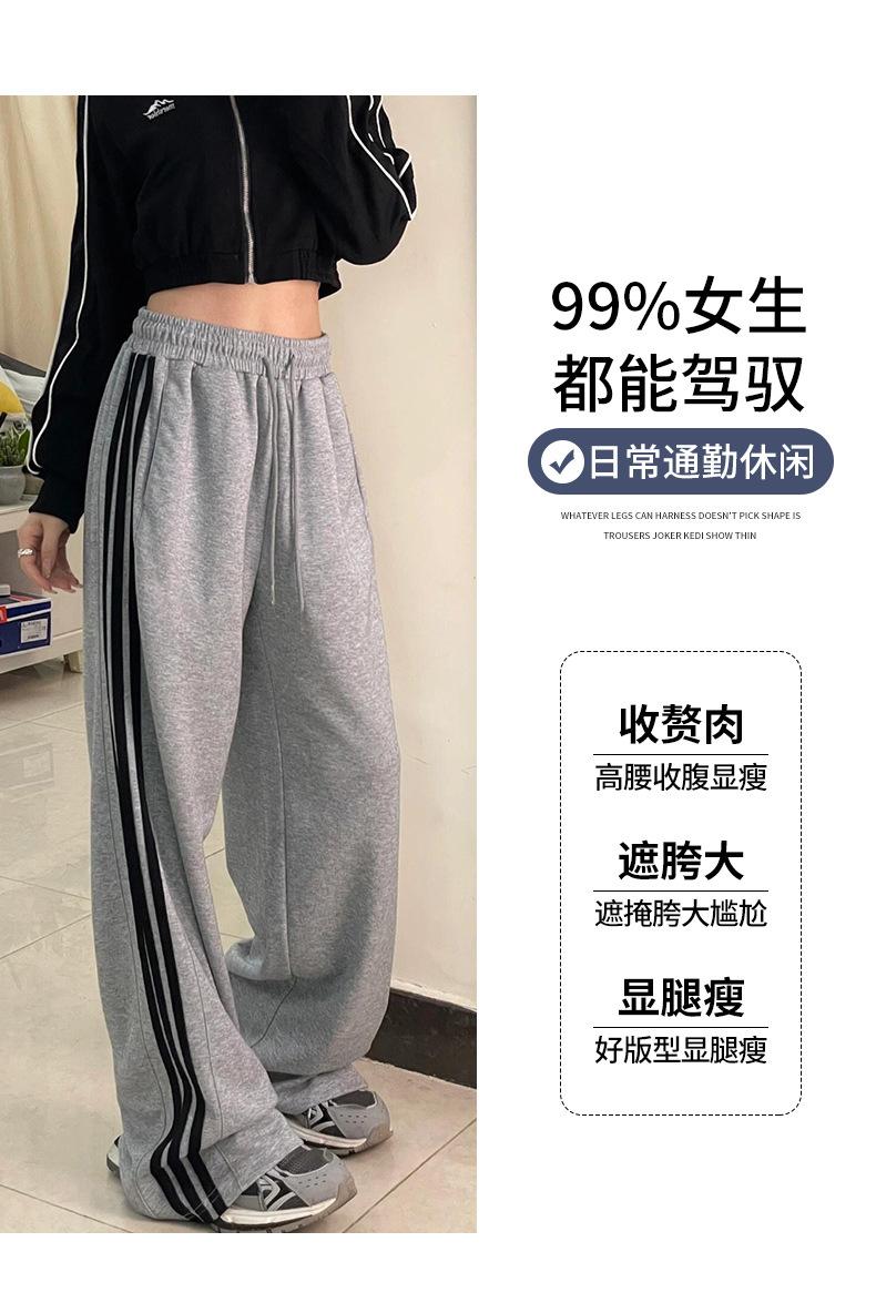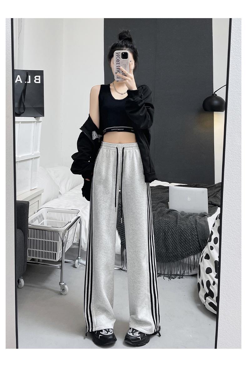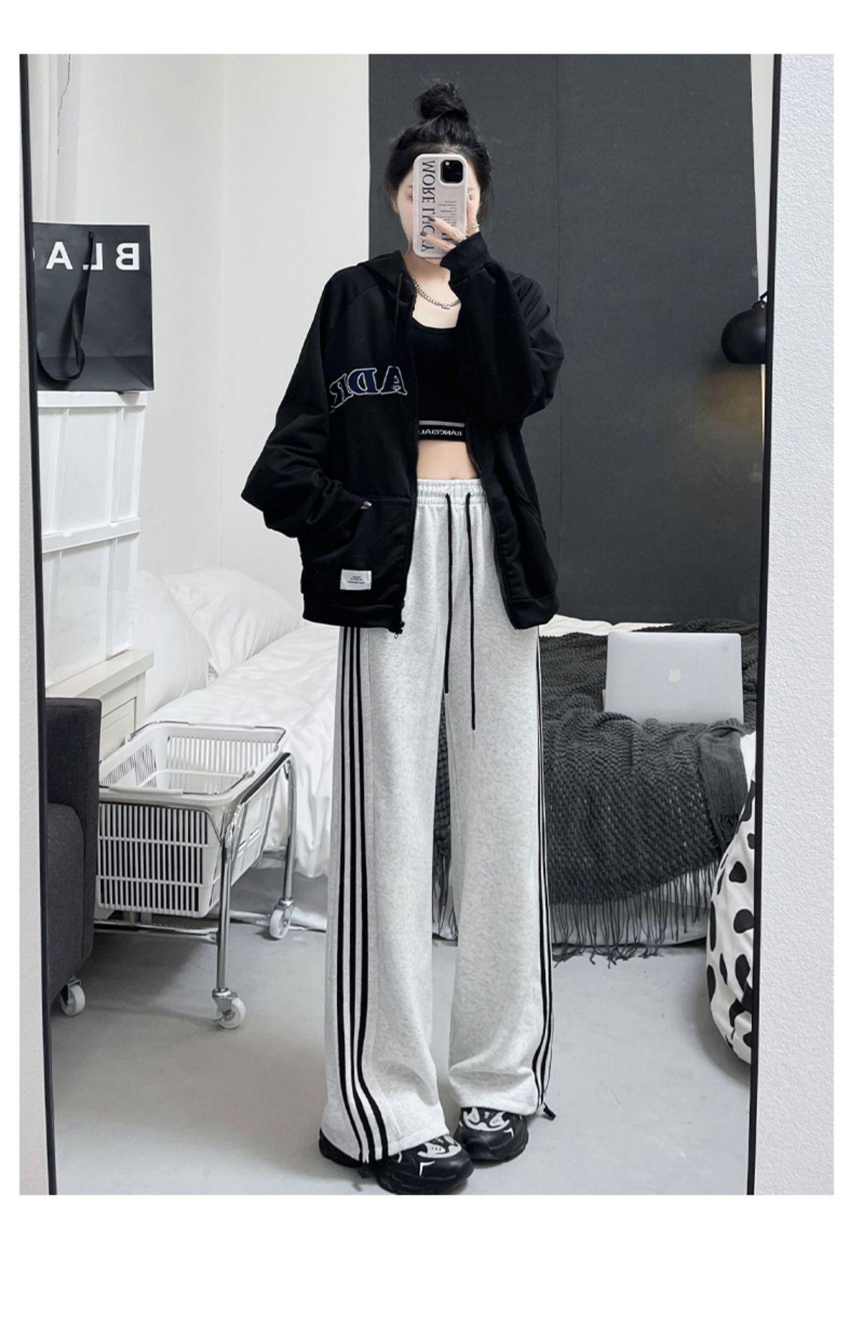 Pantalones deportivos grises de tres barras para mujer, de primavera y otoño, de cintura alta, rectos, de pierna ancha, holgados, a rayas, informales, pequeños