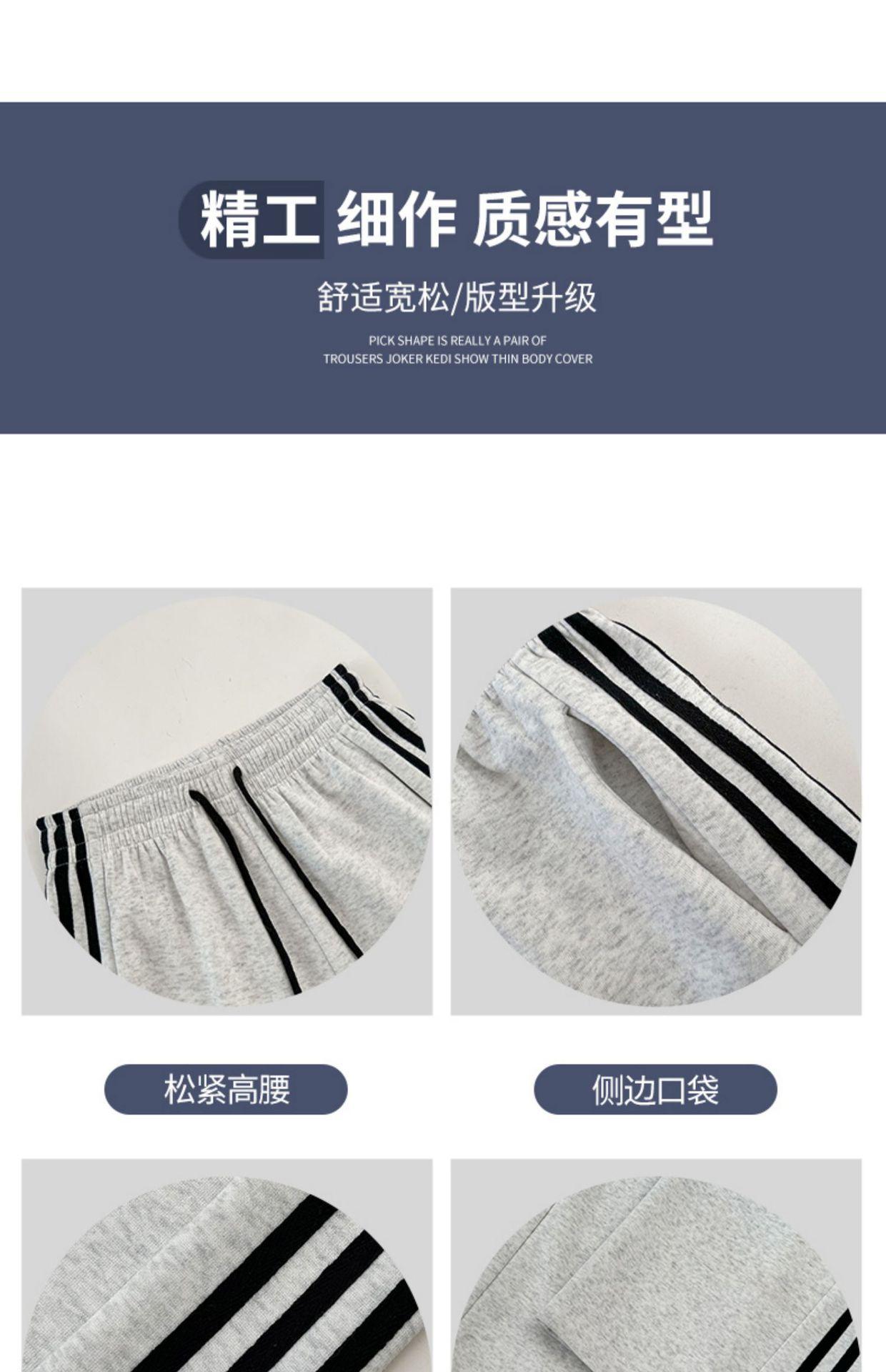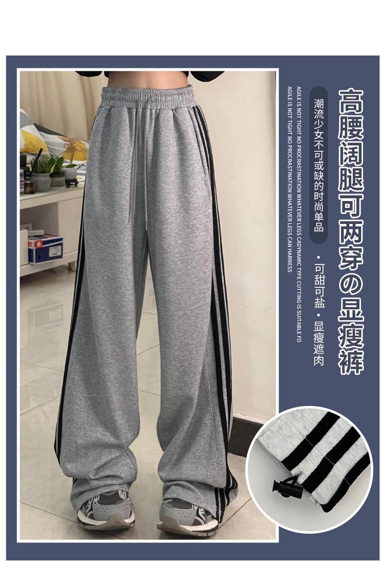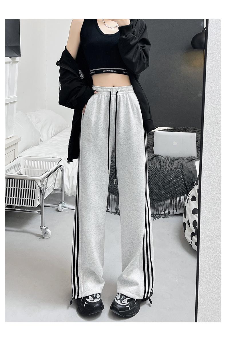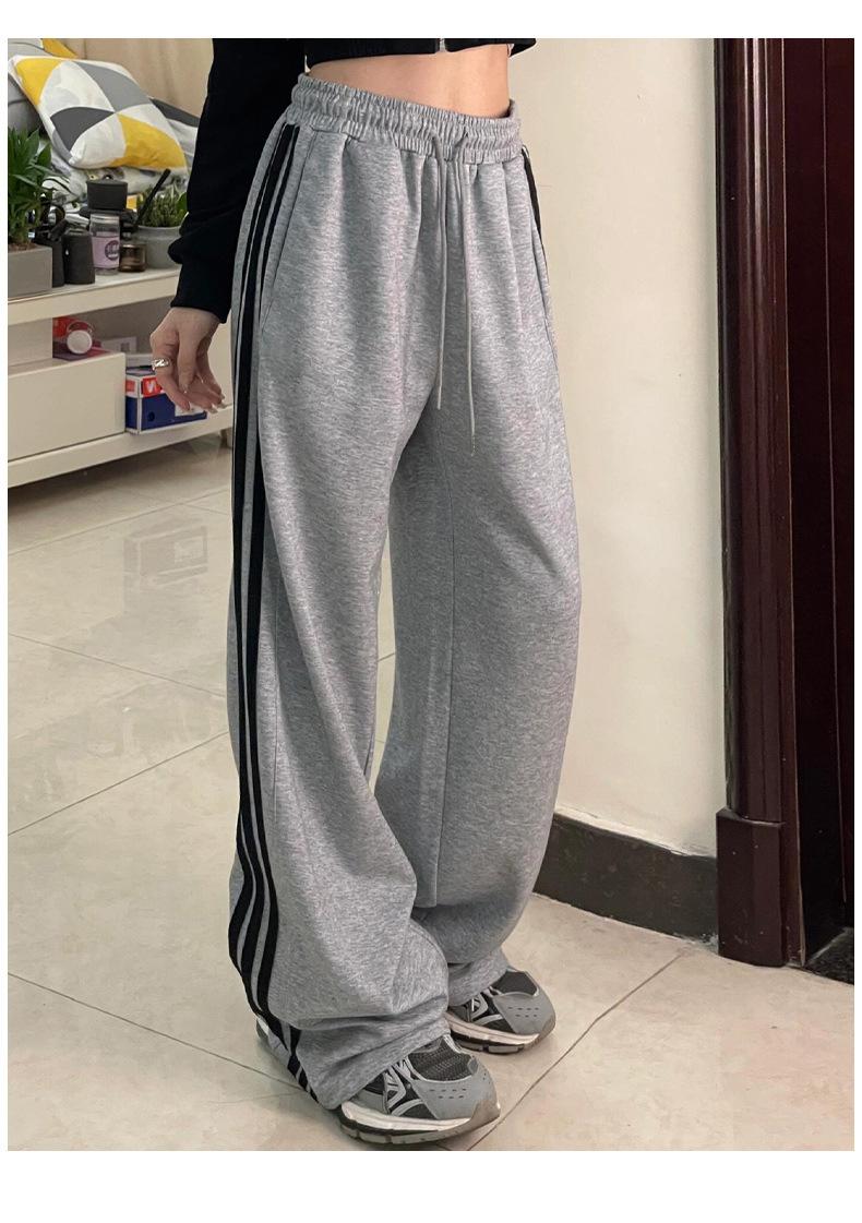 Pantalones deportivos grises de tres barras para mujer, de primavera y otoño, de cintura alta, rectos, de pierna ancha, holgados, a rayas, informales, pequeños
