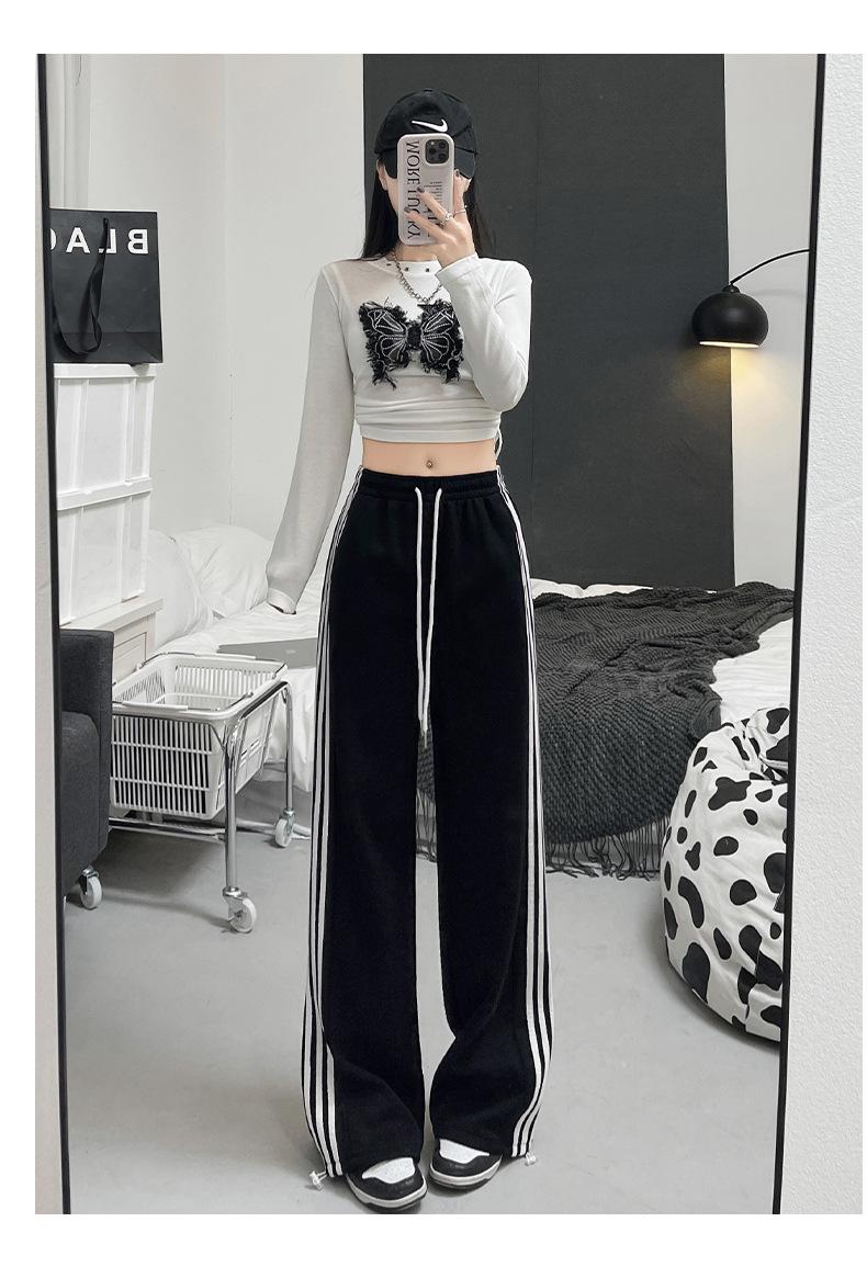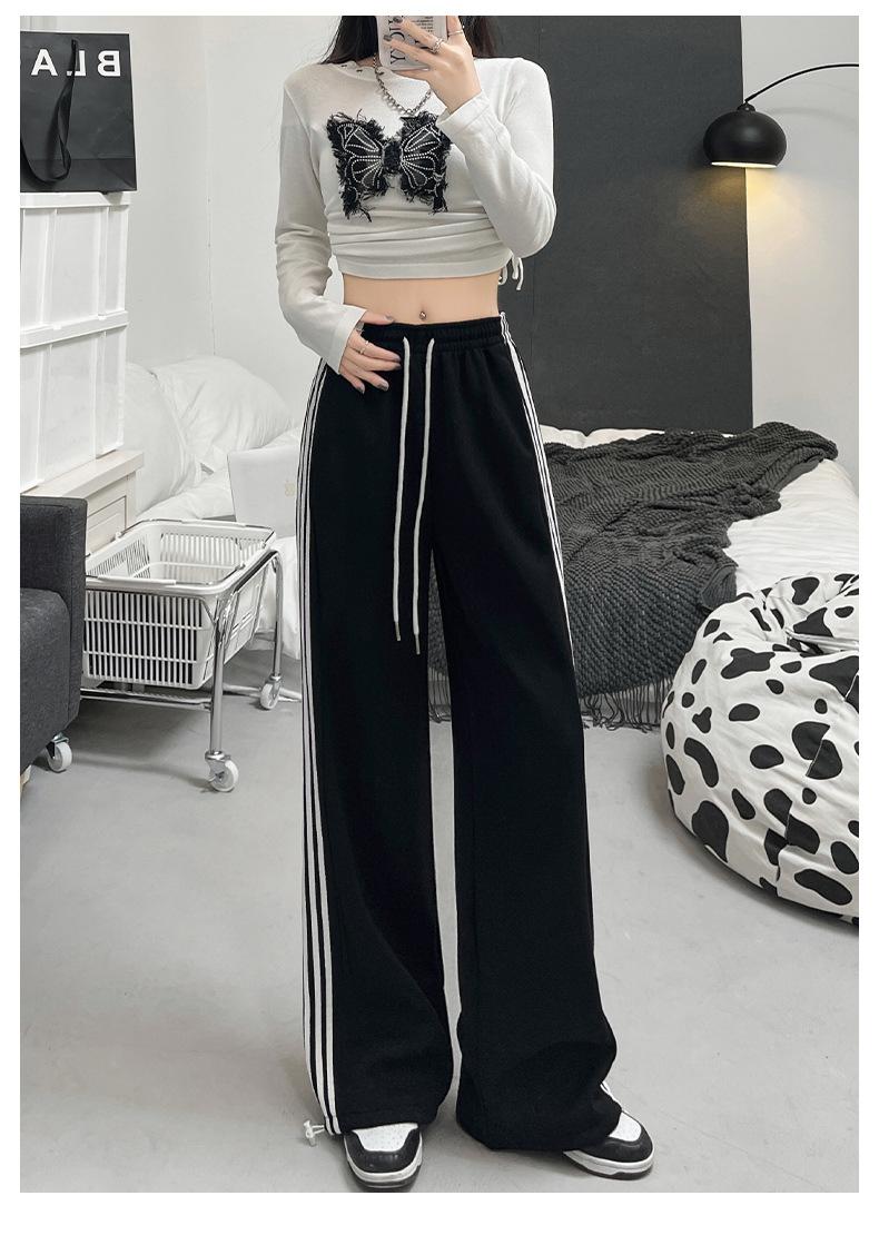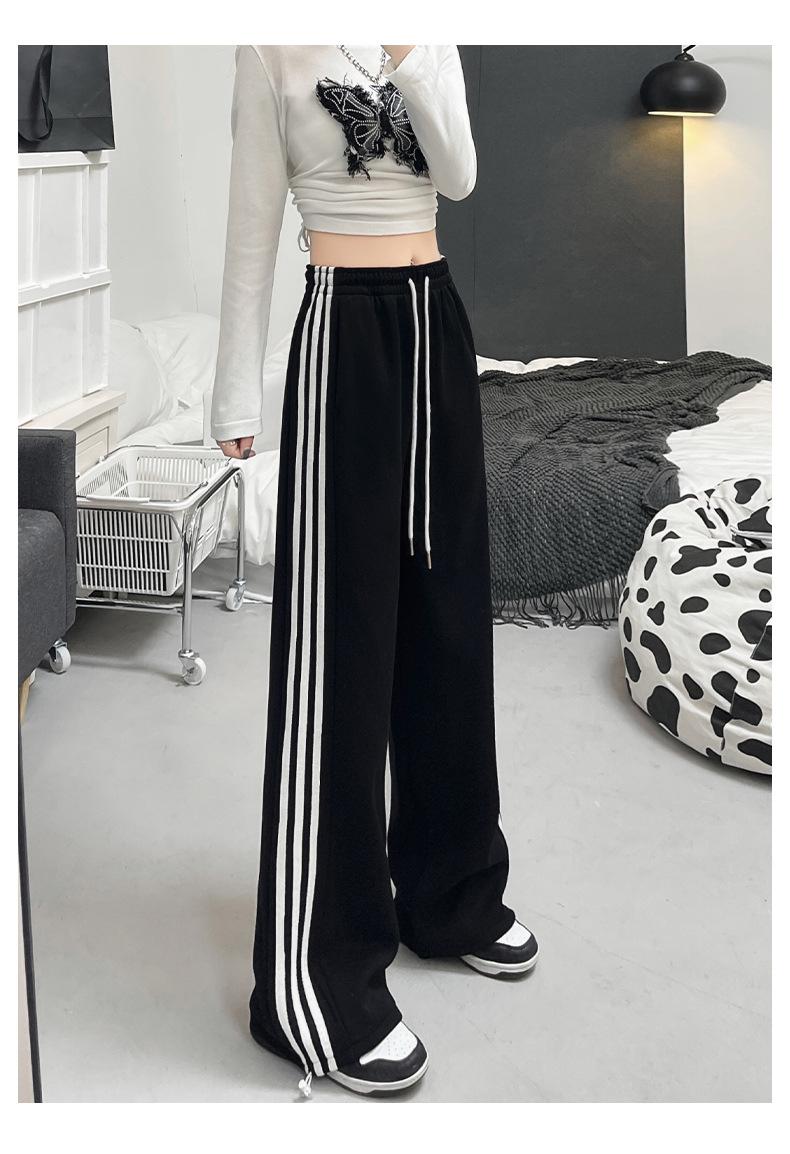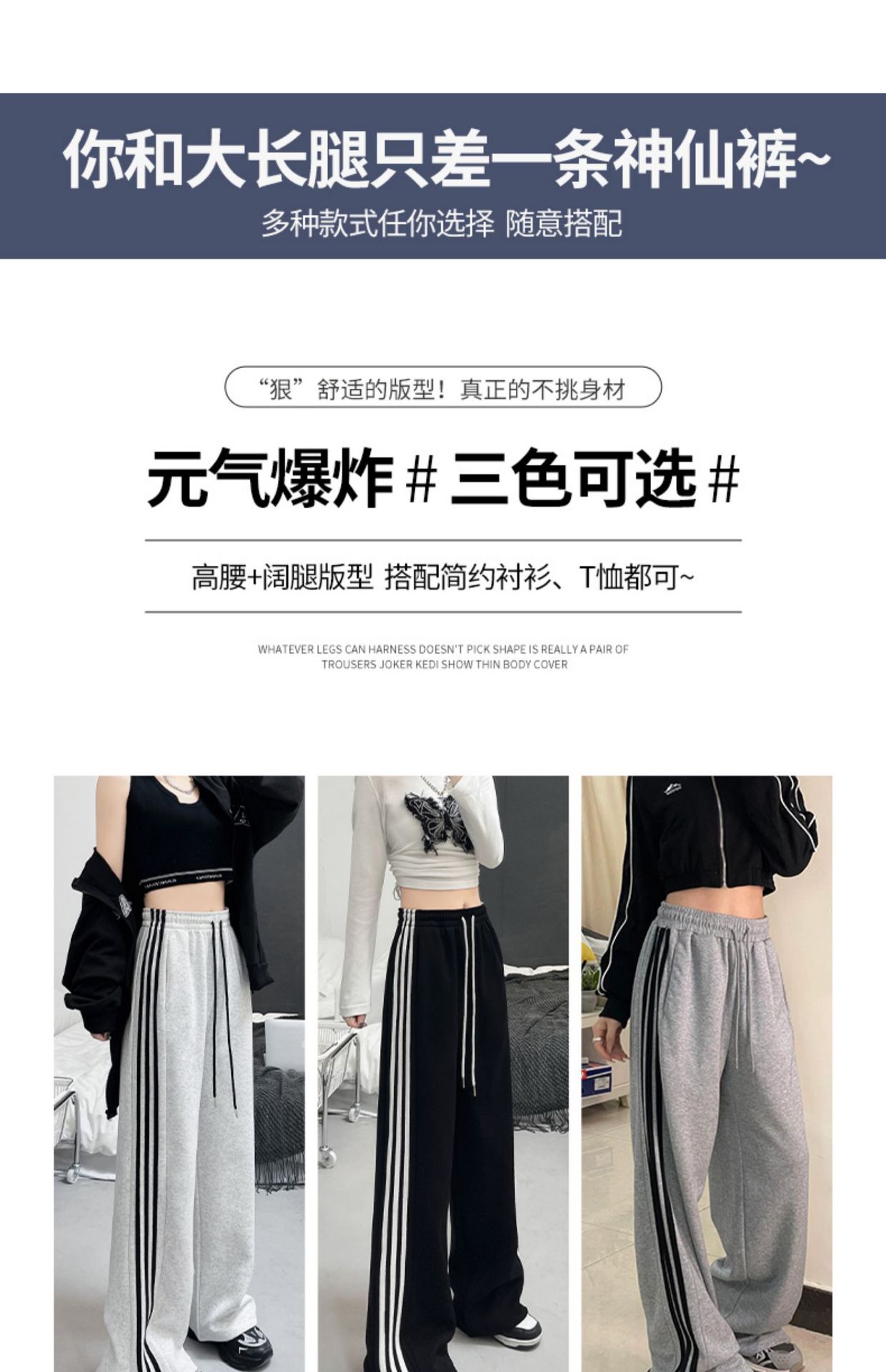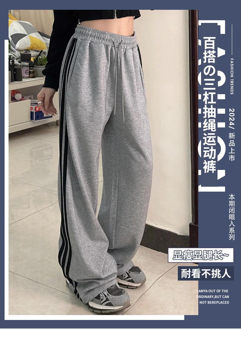 Pantalones deportivos grises de tres barras para mujer, de primavera y otoño, de cintura alta, rectos, de pierna ancha, holgados, a rayas, informales, pequeños