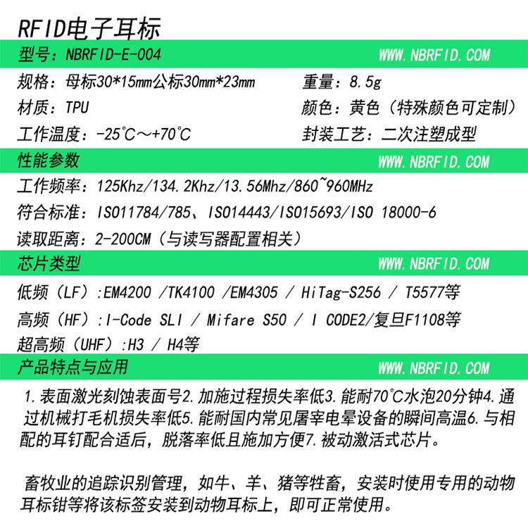 ISO11784/785(FDX, HDX)Etiqueta electrónica de oreja FDX-B etiqueta de oreja de cerdo ventaja de fabricante ganado vacuno y ovino etiqueta de oreja de cerdo rfid