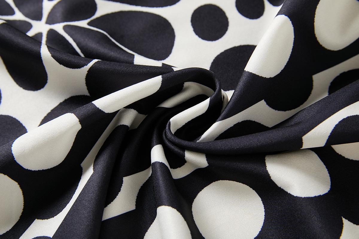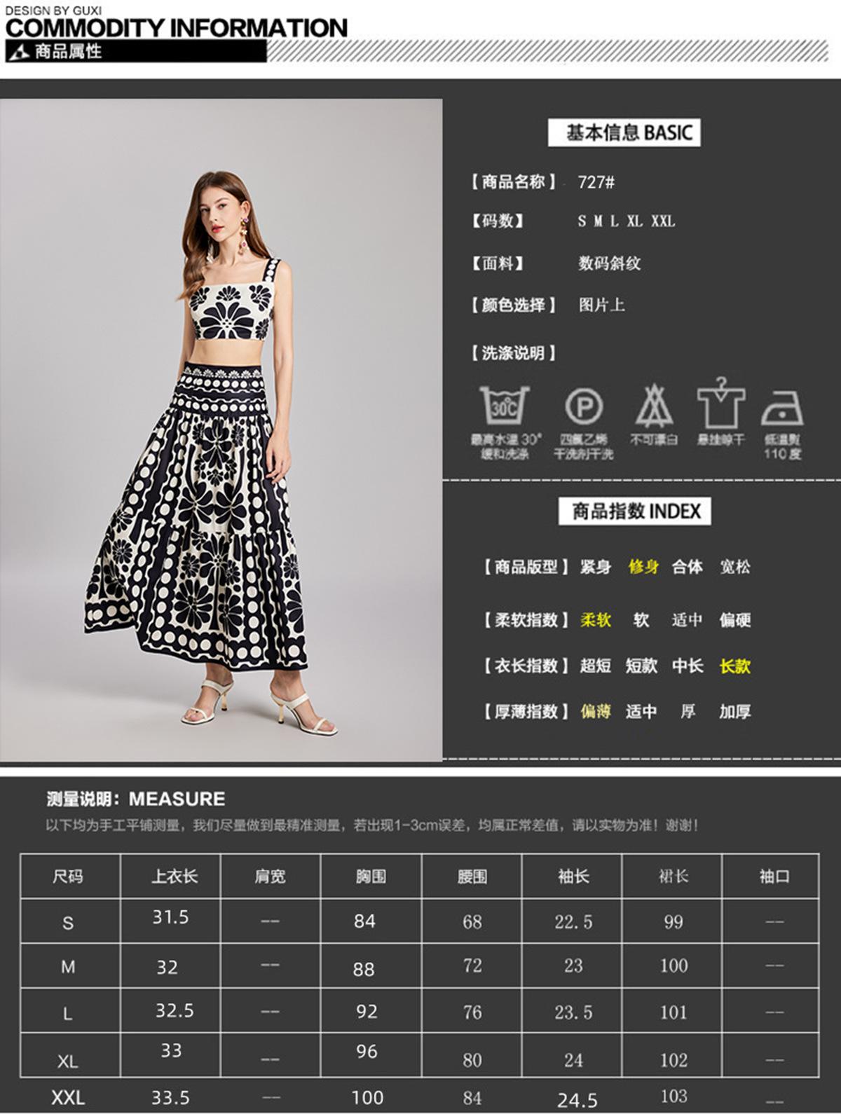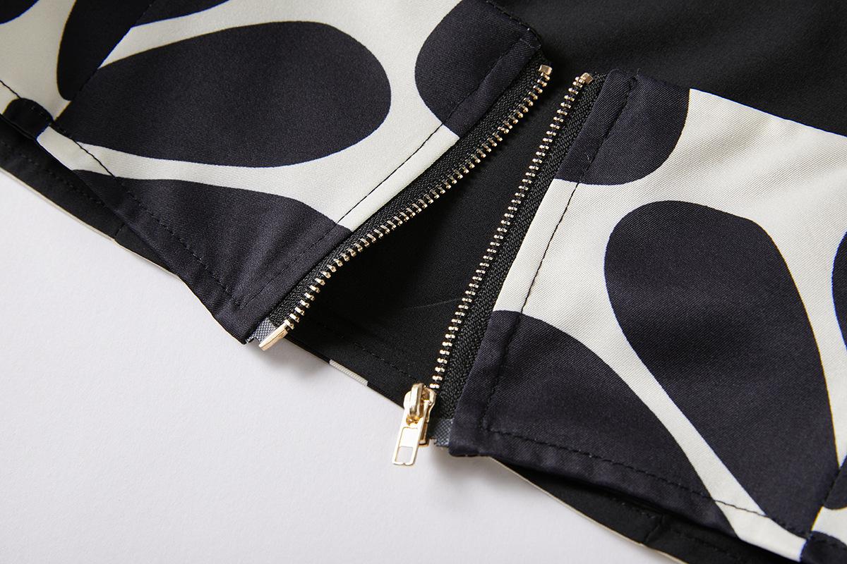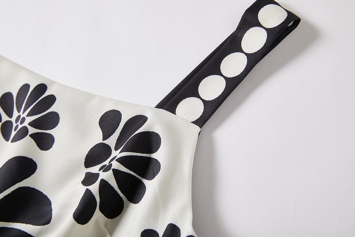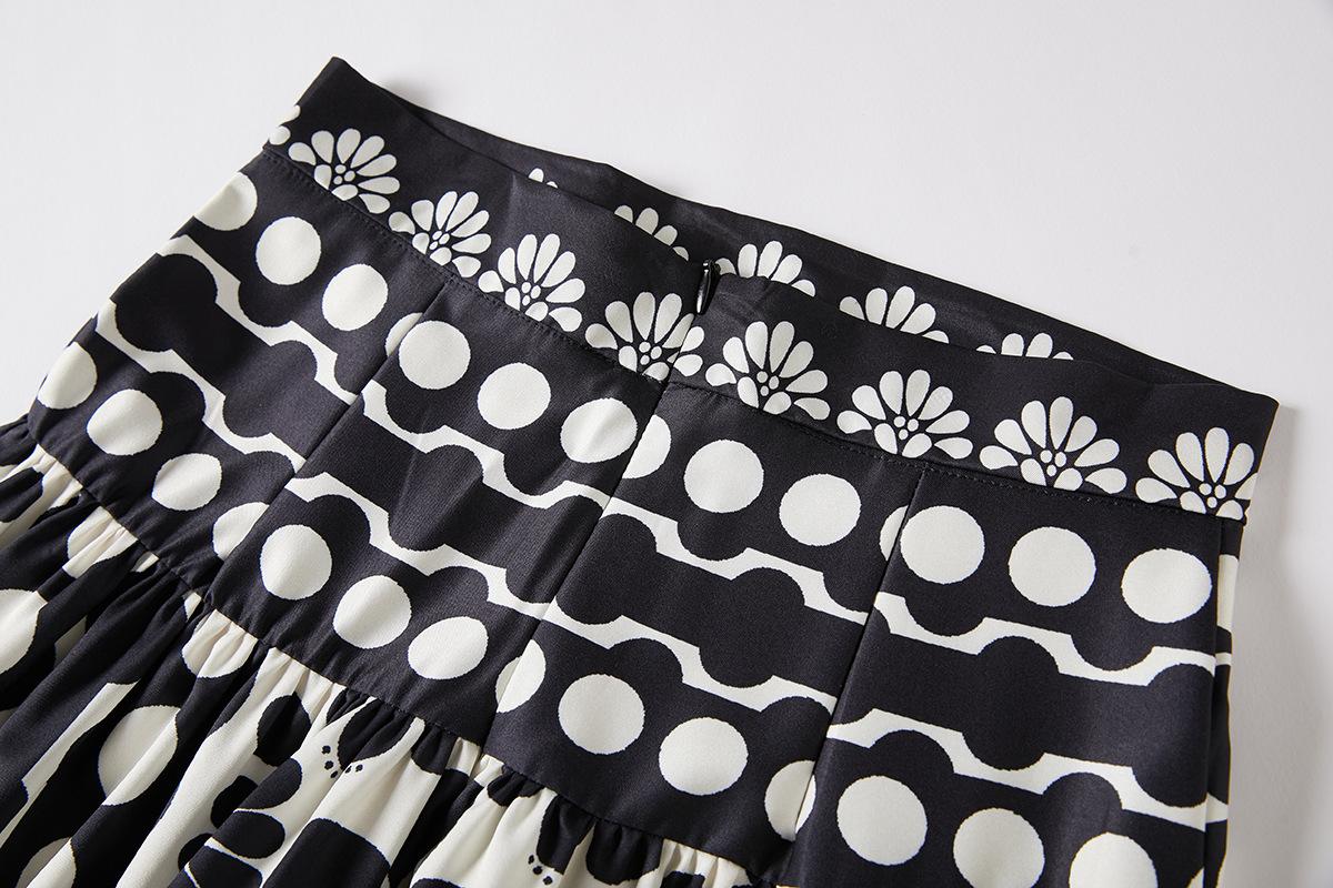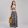 Traje de Moda Vacacional Estilo Europeo y Americano Camisola Floral Clásica en Blanco y Negro + Falda de Cintura Alta Conjunto de Dos Piezas