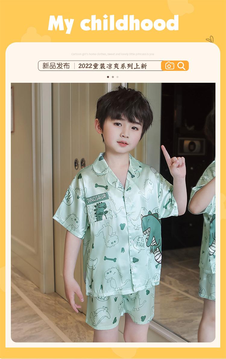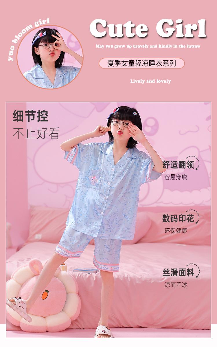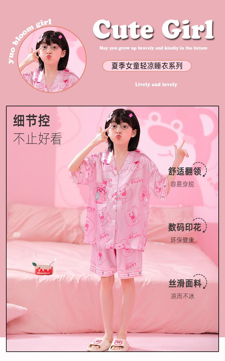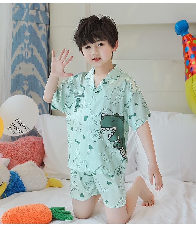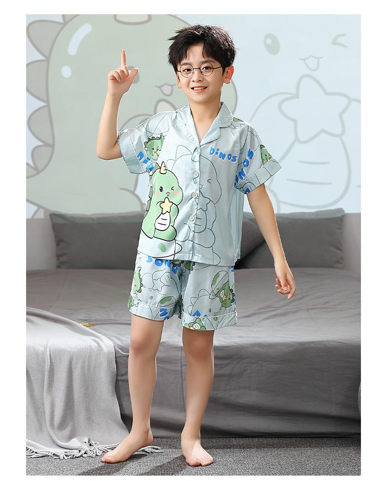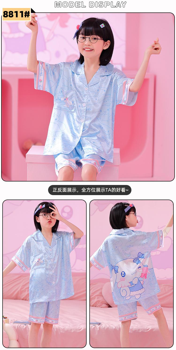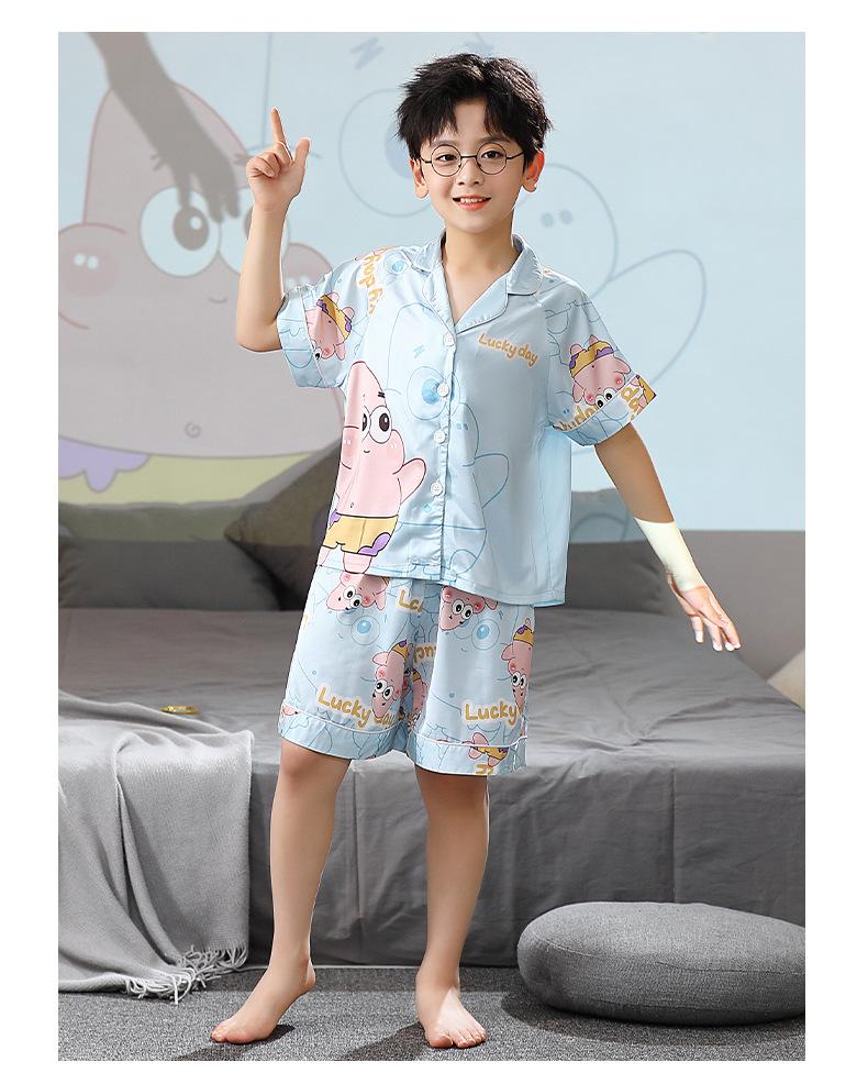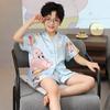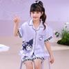Pijamas de verano para niños, ropa de dormir de manga corta con solapa y estampado de dibujos animados, ideal para estudiantes de secundaria y niñas.