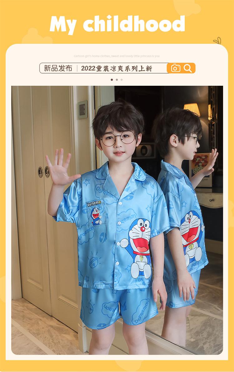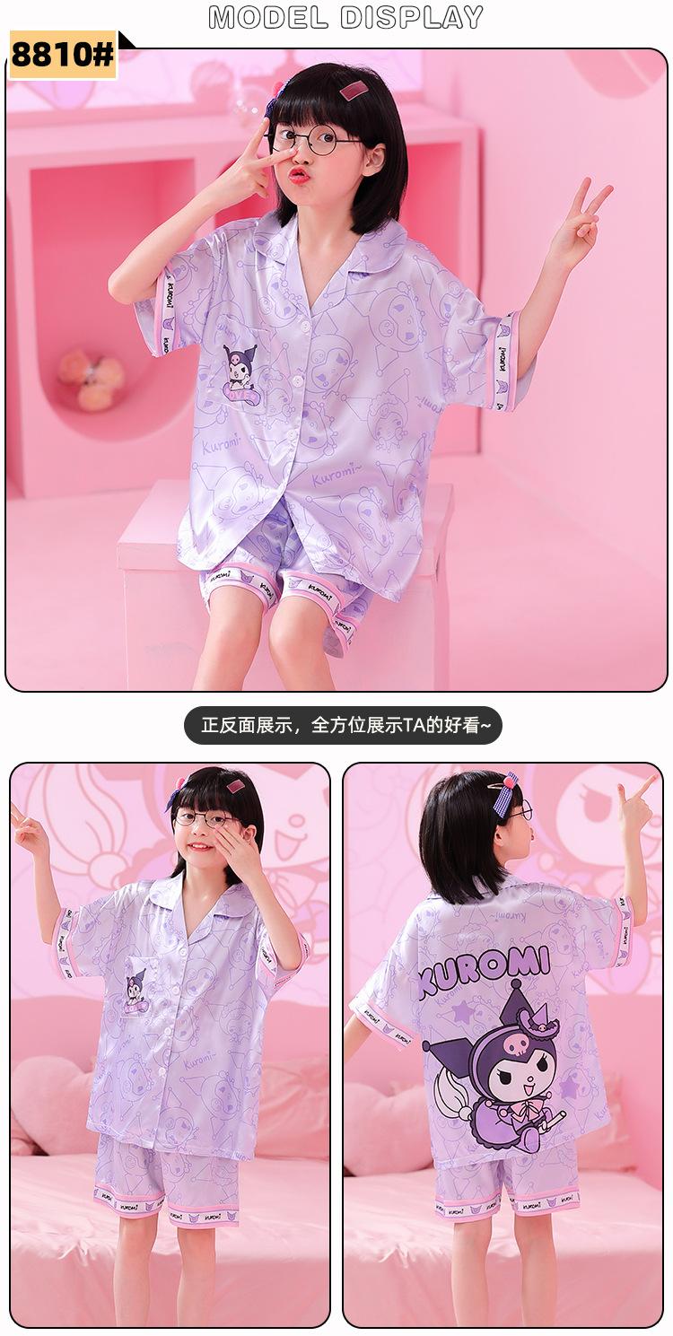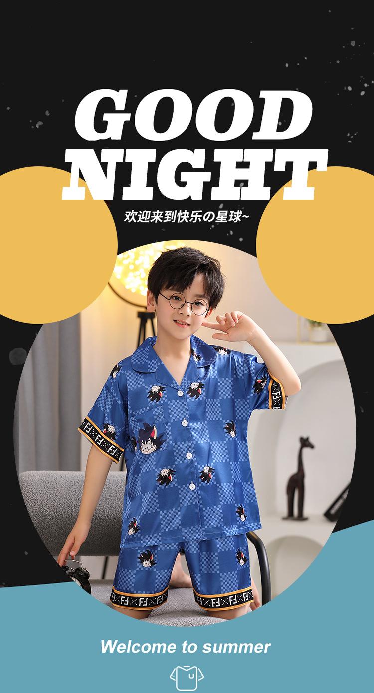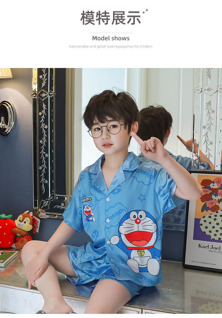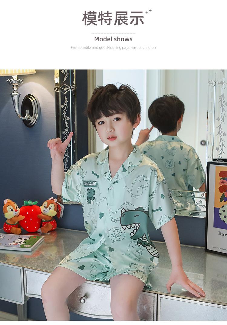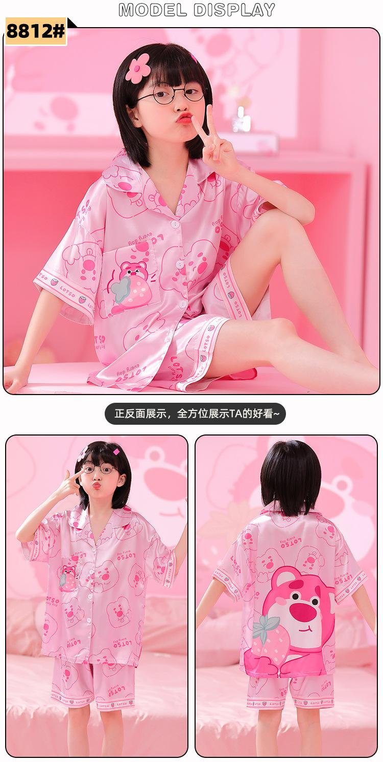 Pijamas de verano para niños, ropa de dormir de manga corta con solapa y estampado de dibujos animados, ideal para estudiantes de secundaria y niñas.