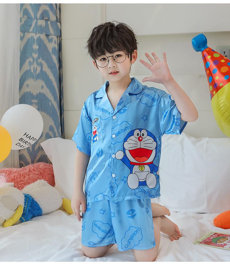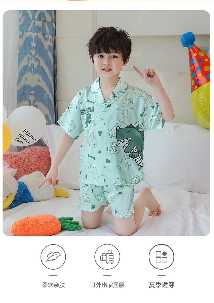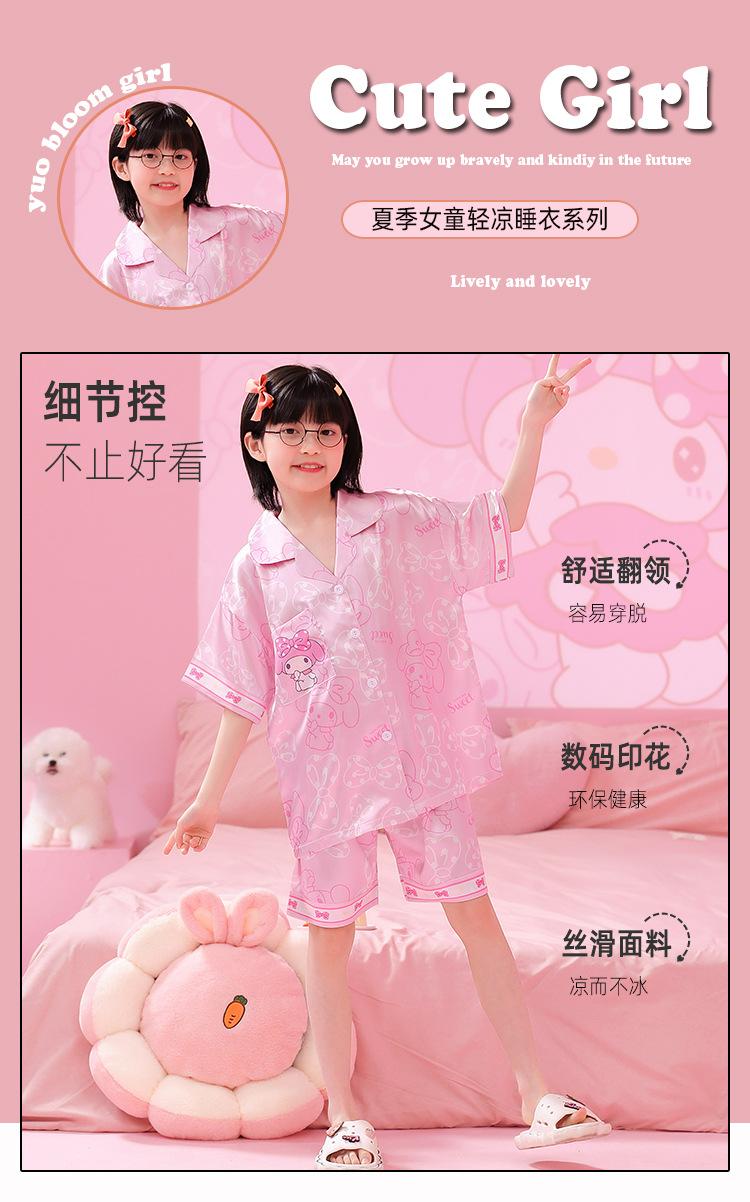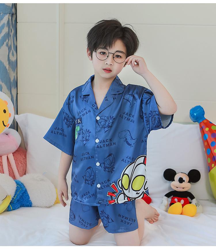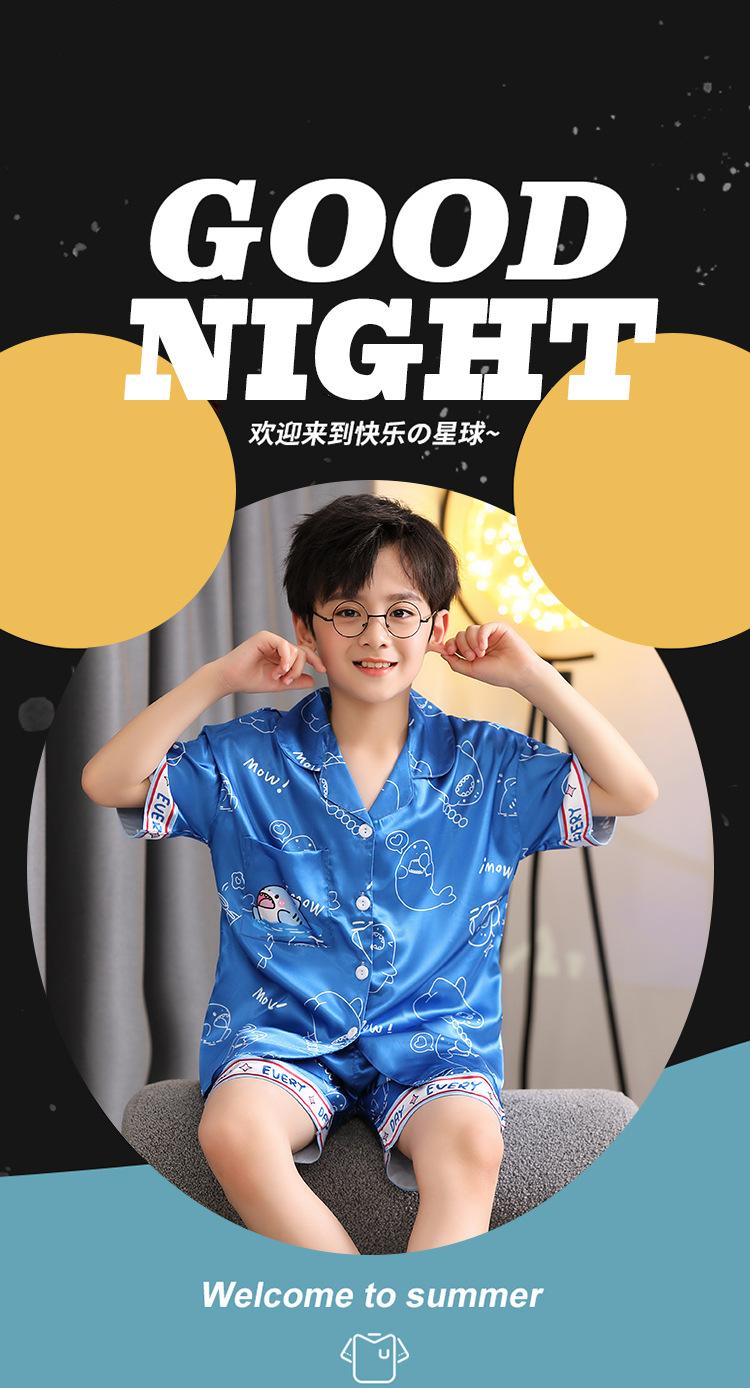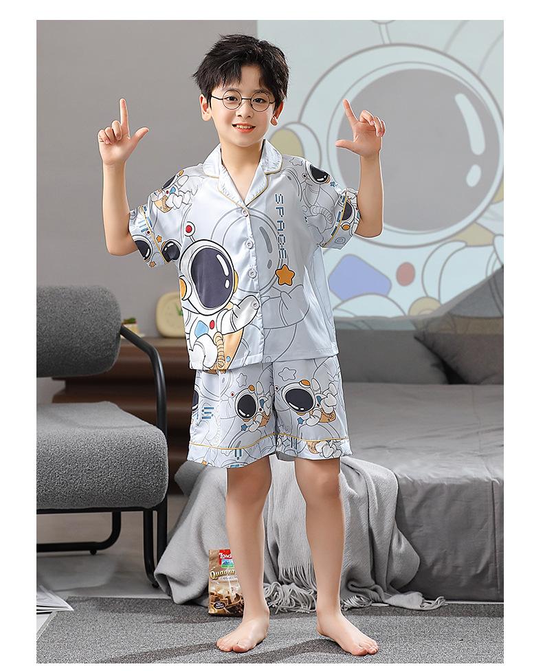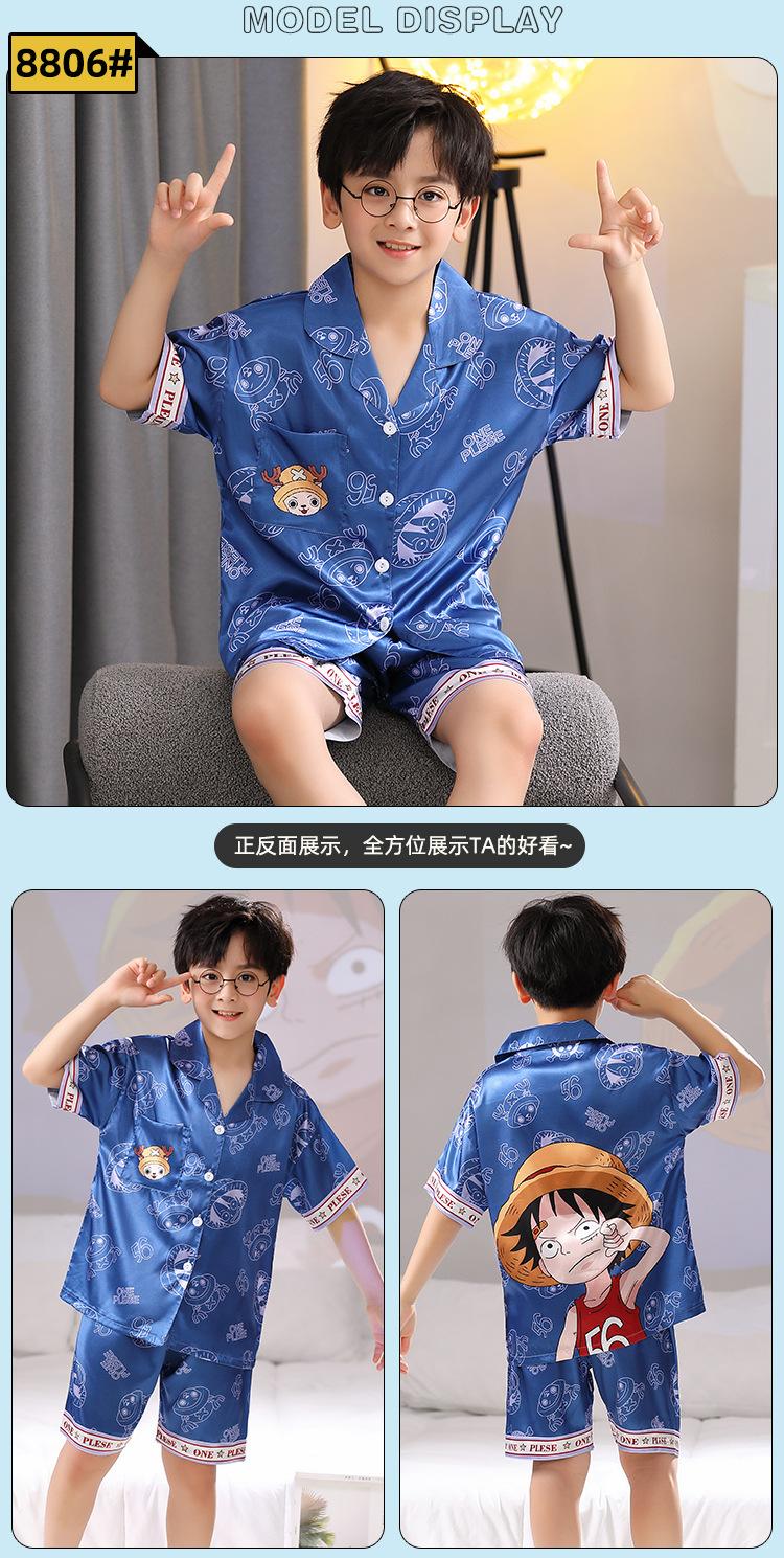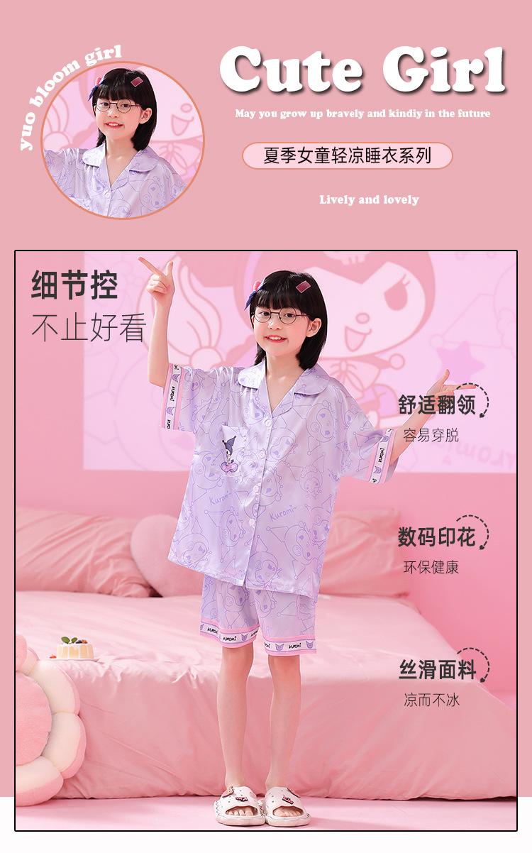 Pijamas de verano para niños, ropa de dormir de manga corta con solapa y estampado de dibujos animados, ideal para estudiantes de secundaria y niñas.