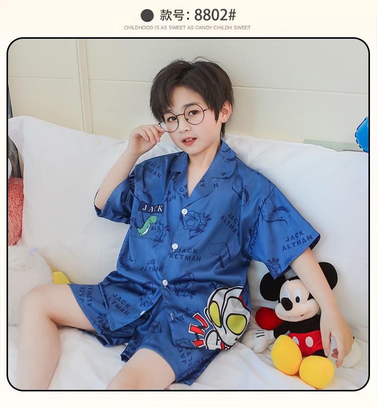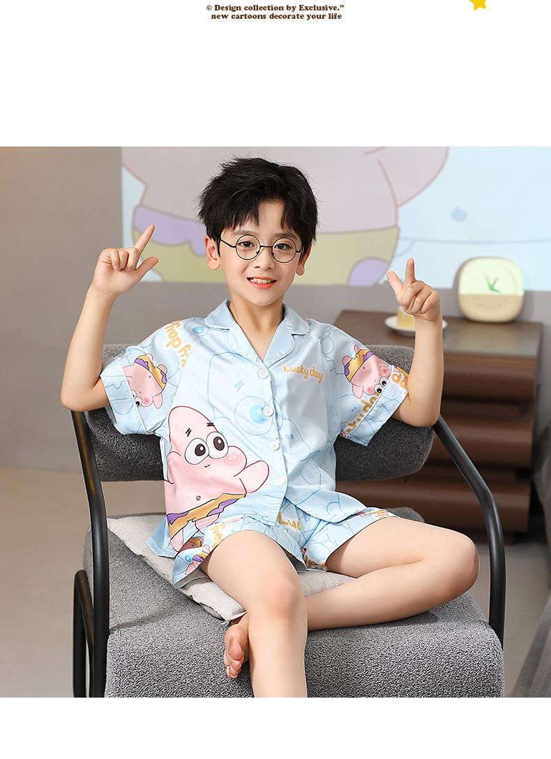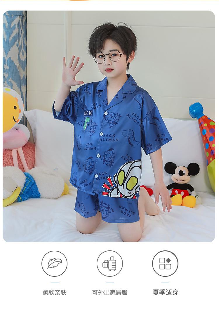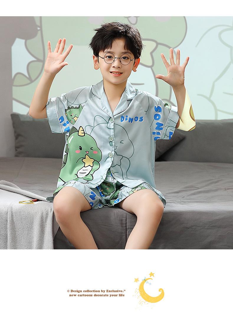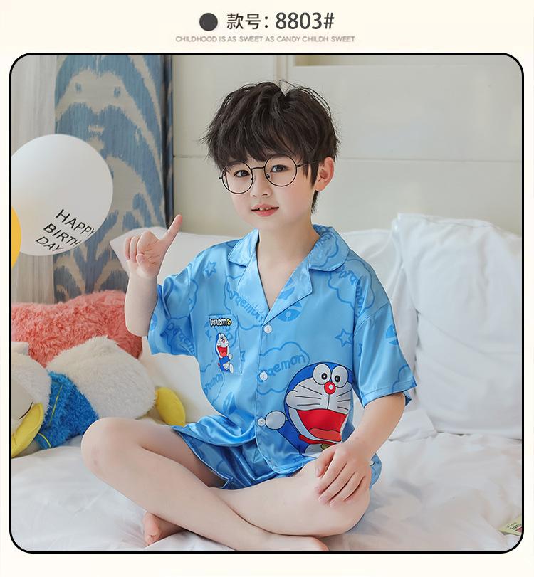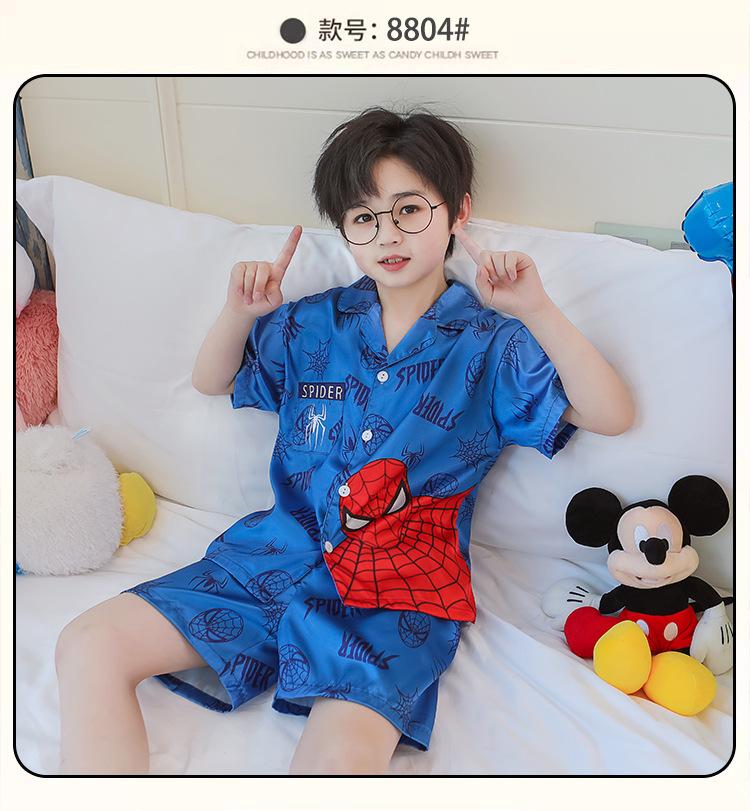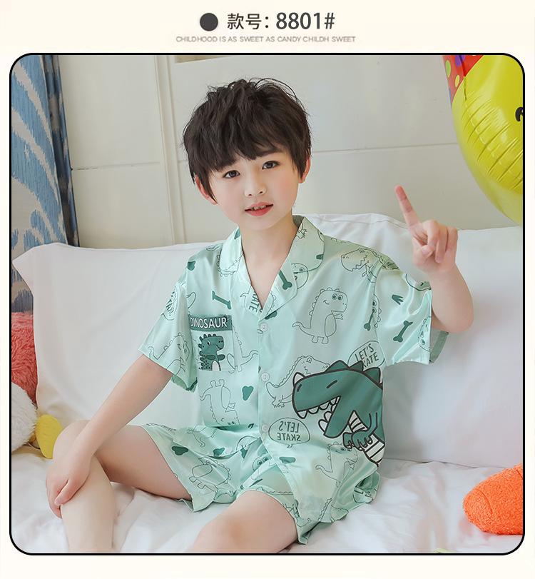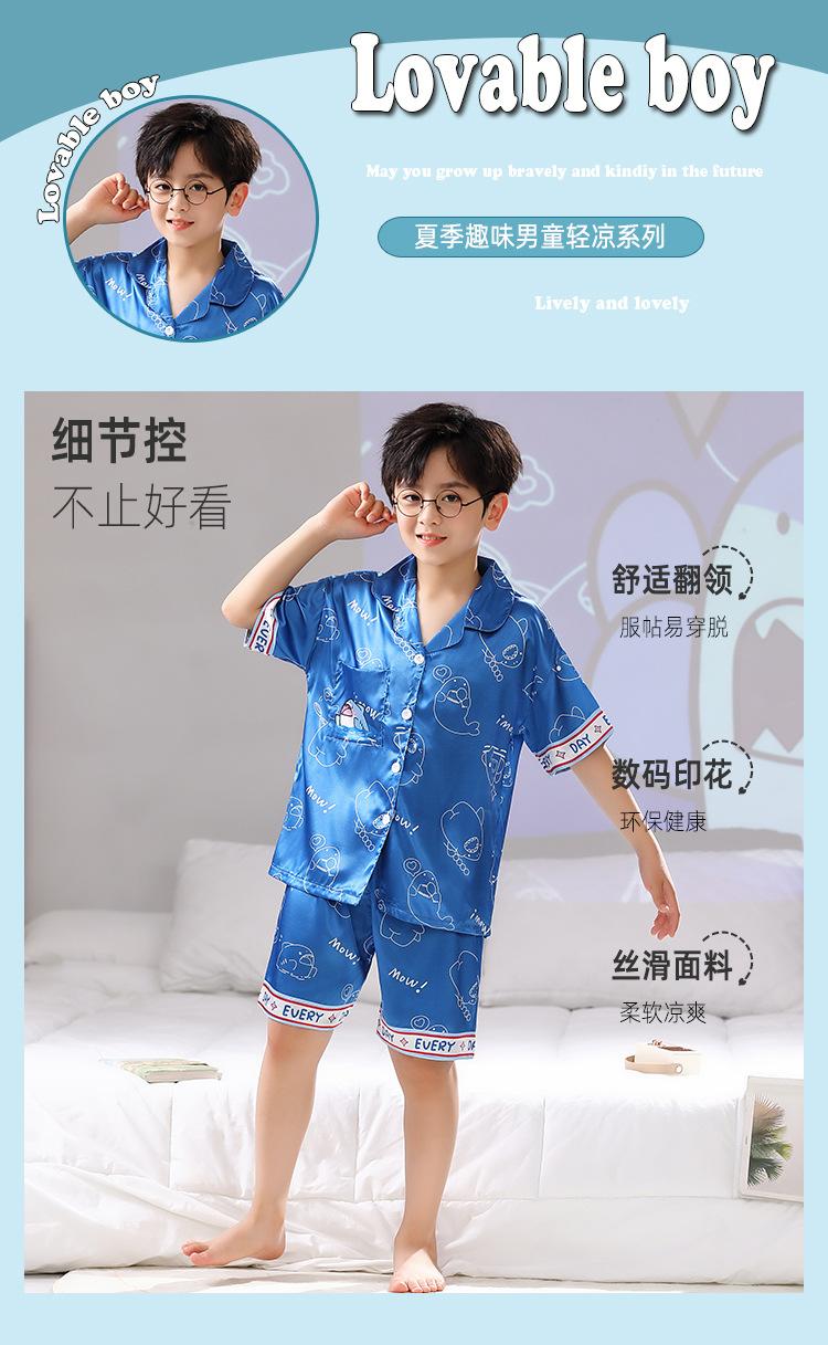 Pijamas de verano para niños, ropa de dormir de manga corta con solapa y estampado de dibujos animados, ideal para estudiantes de secundaria y niñas.