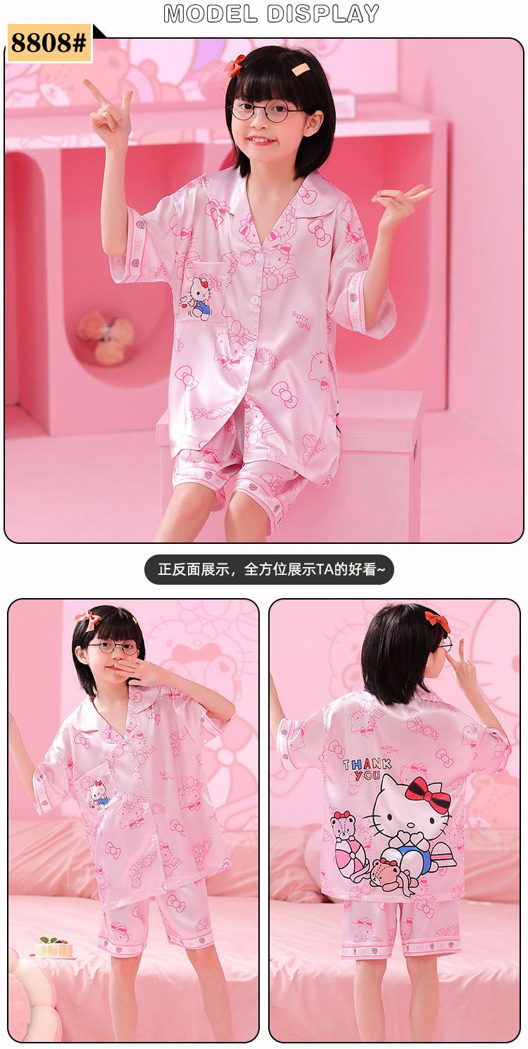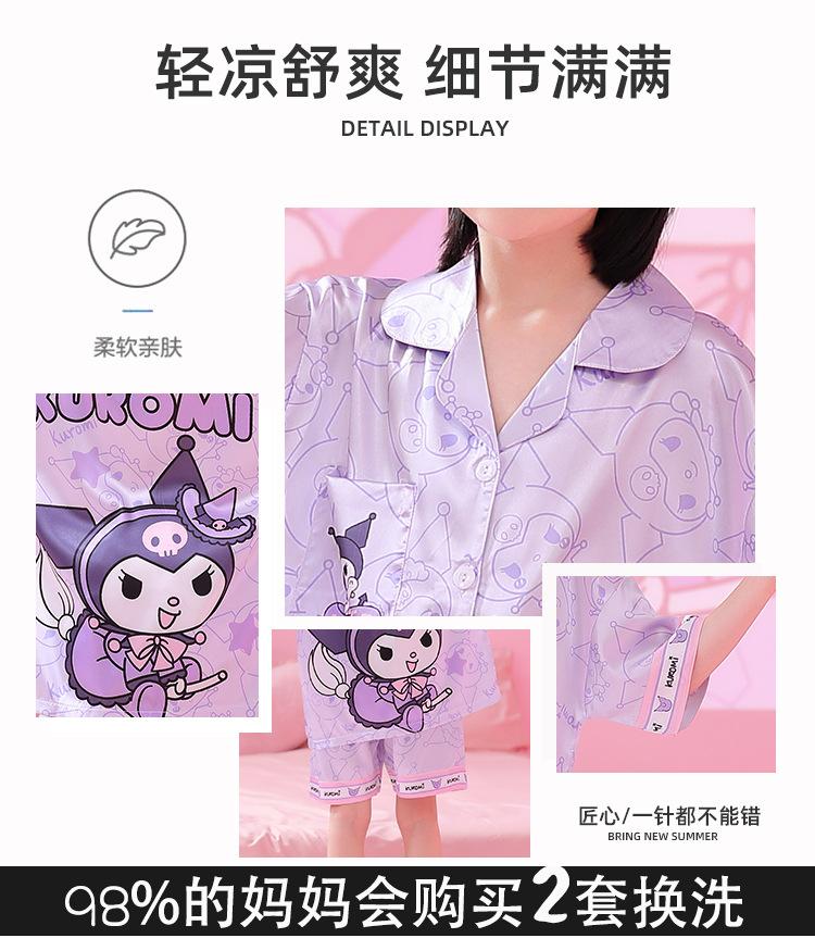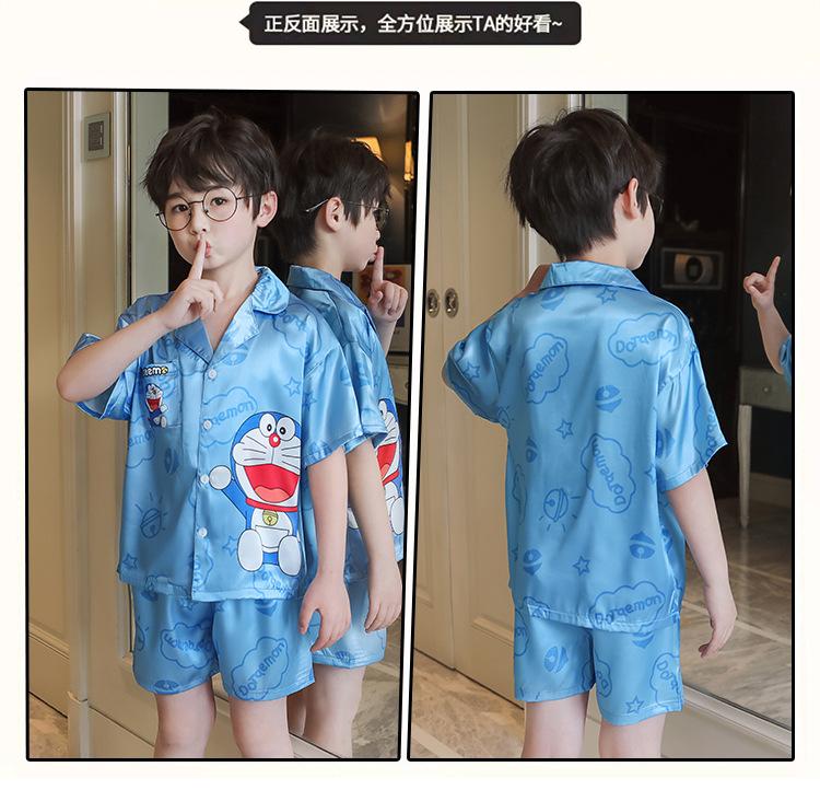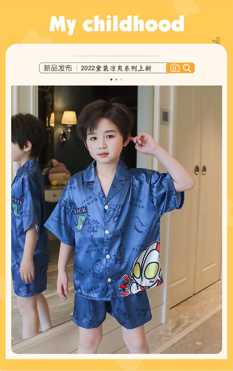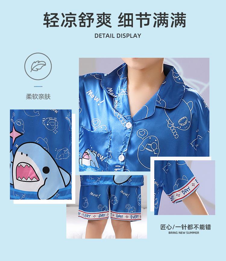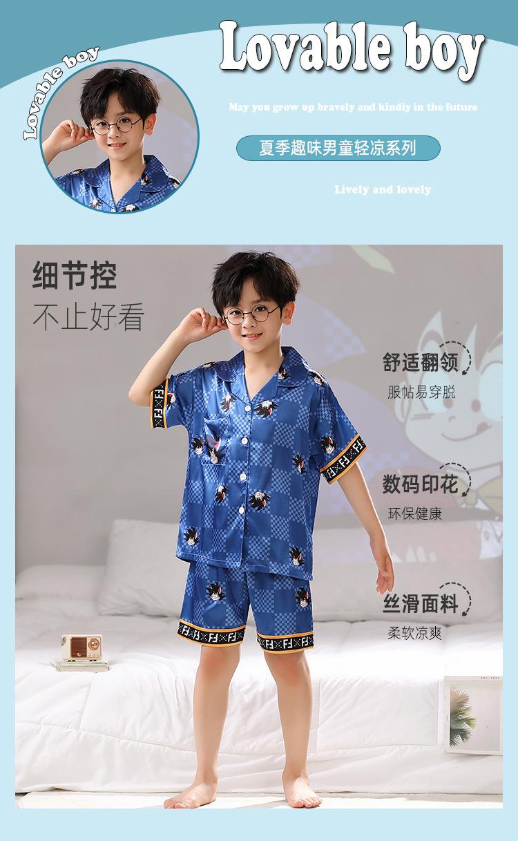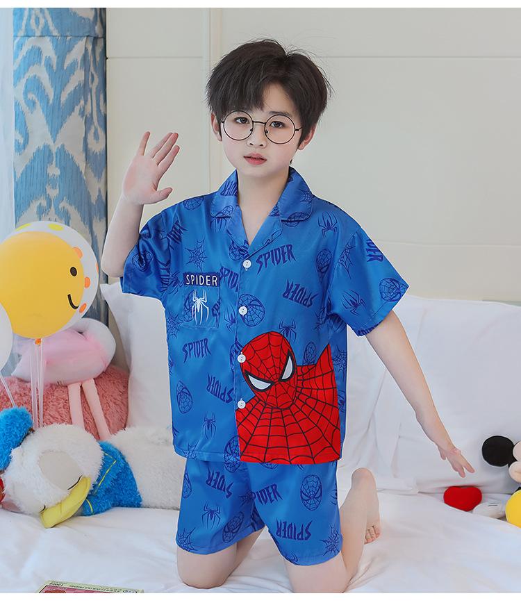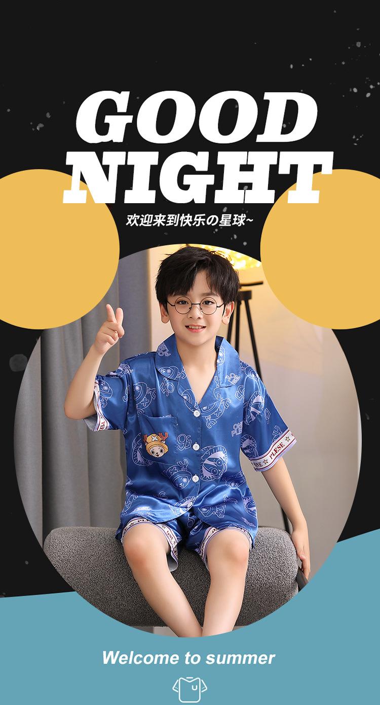 Pijamas de verano para niños, ropa de dormir de manga corta con solapa y estampado de dibujos animados, ideal para estudiantes de secundaria y niñas.