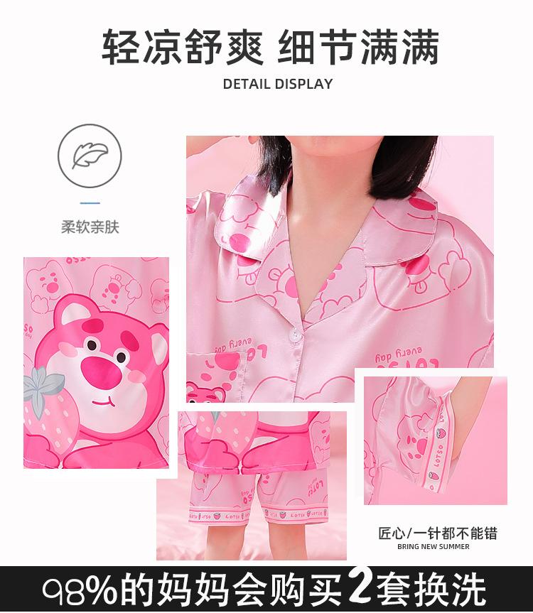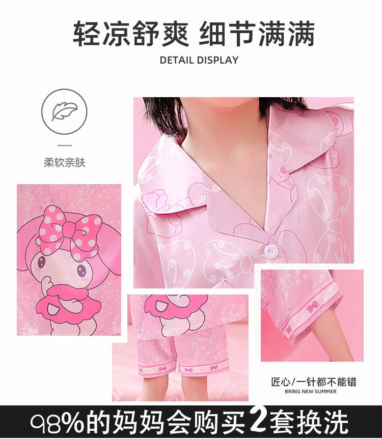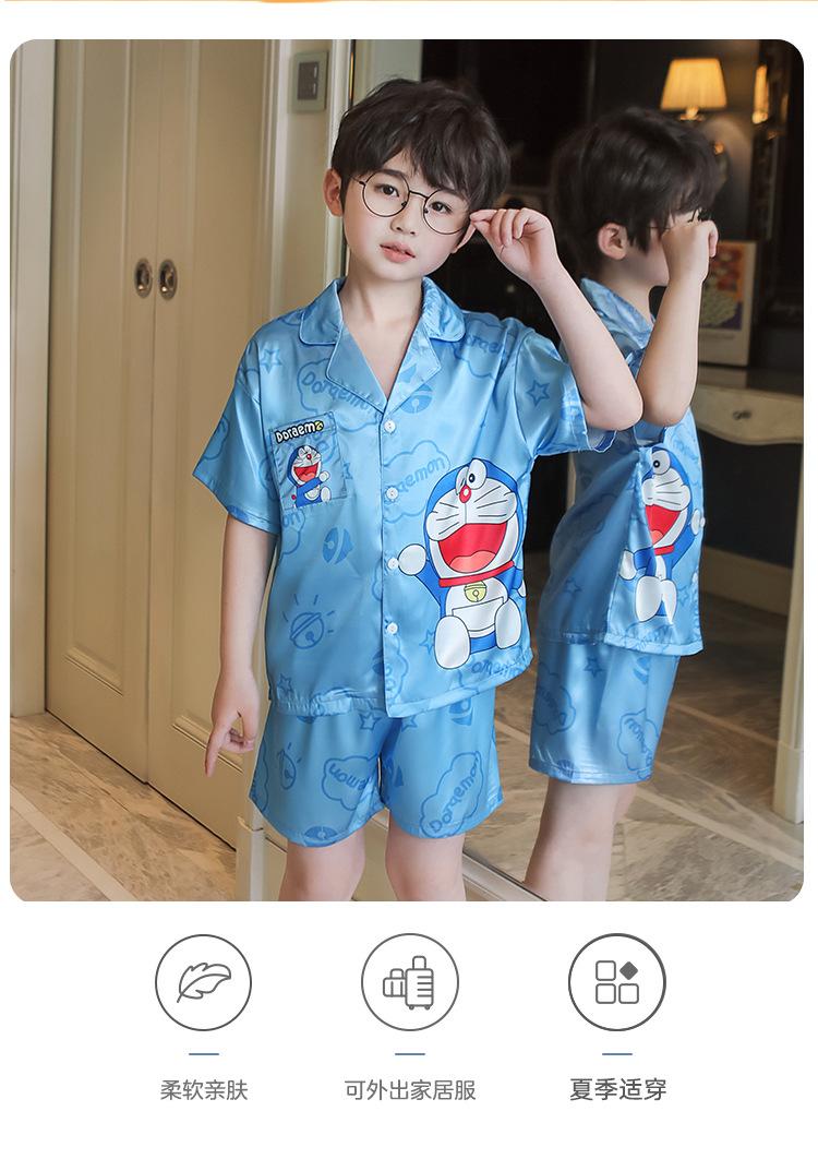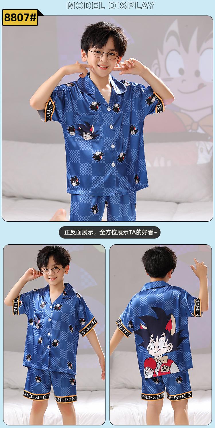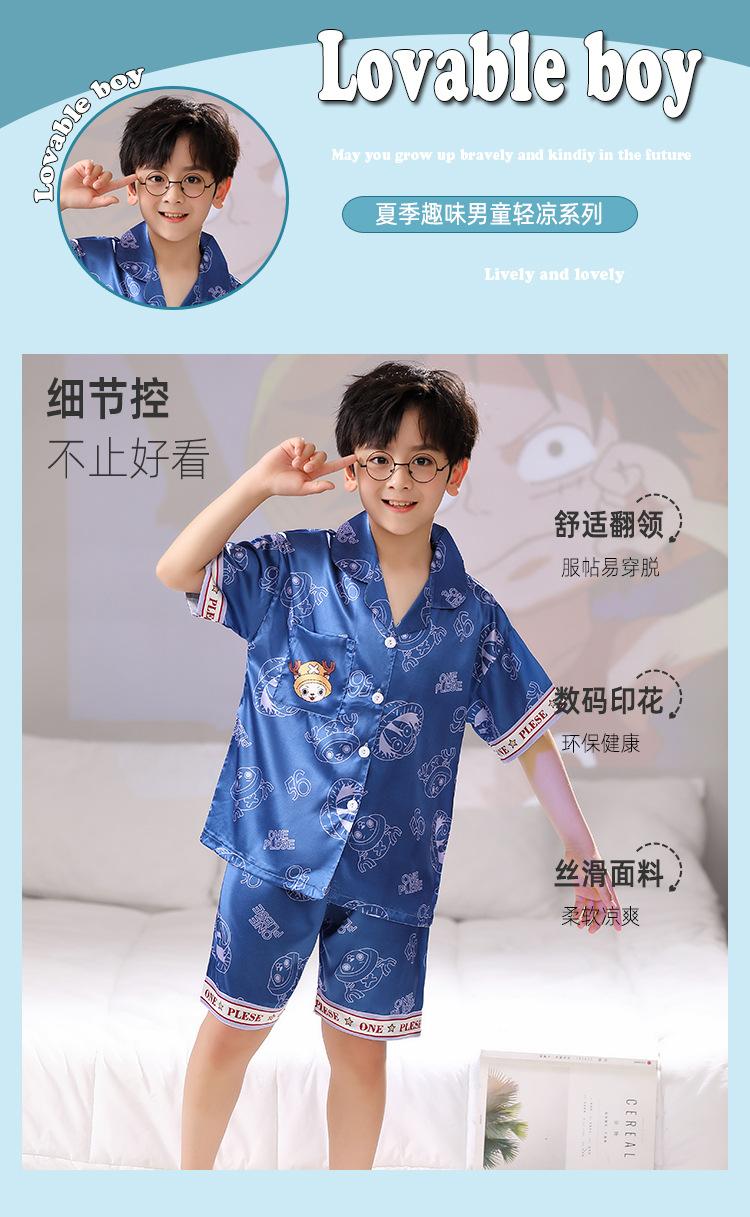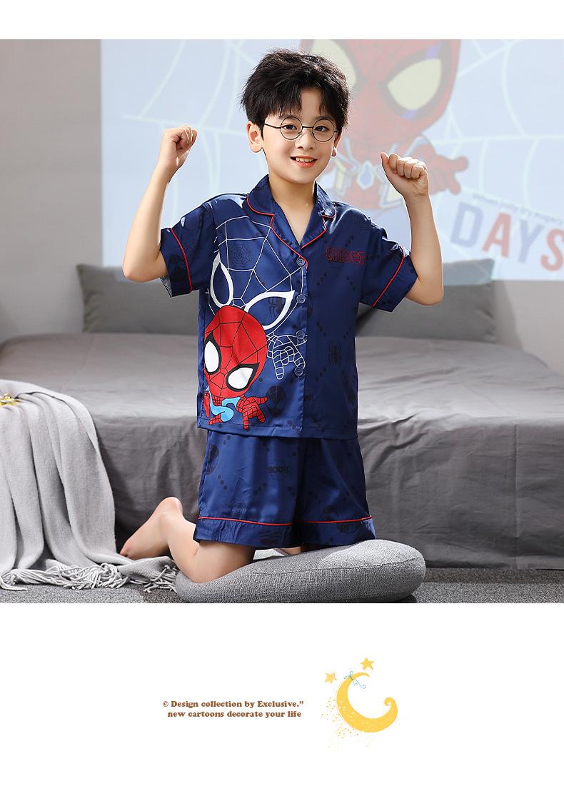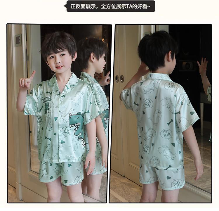 Pijamas de verano para niños, ropa de dormir de manga corta con solapa y estampado de dibujos animados, ideal para estudiantes de secundaria y niñas.