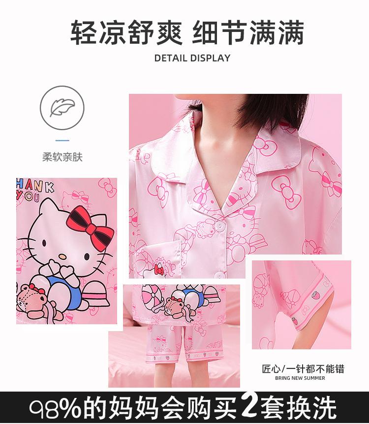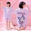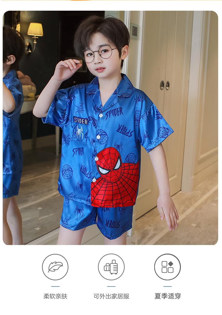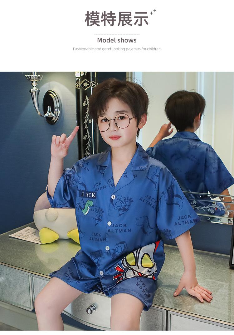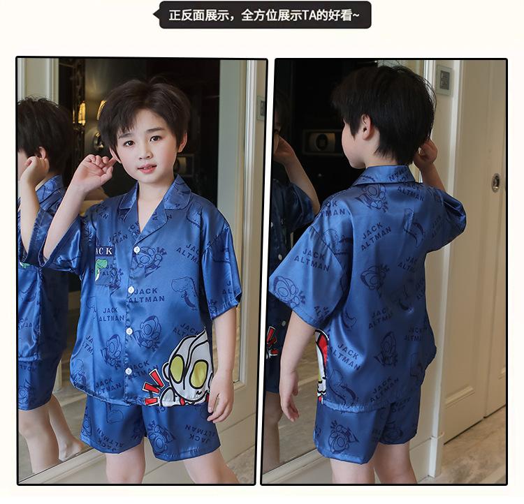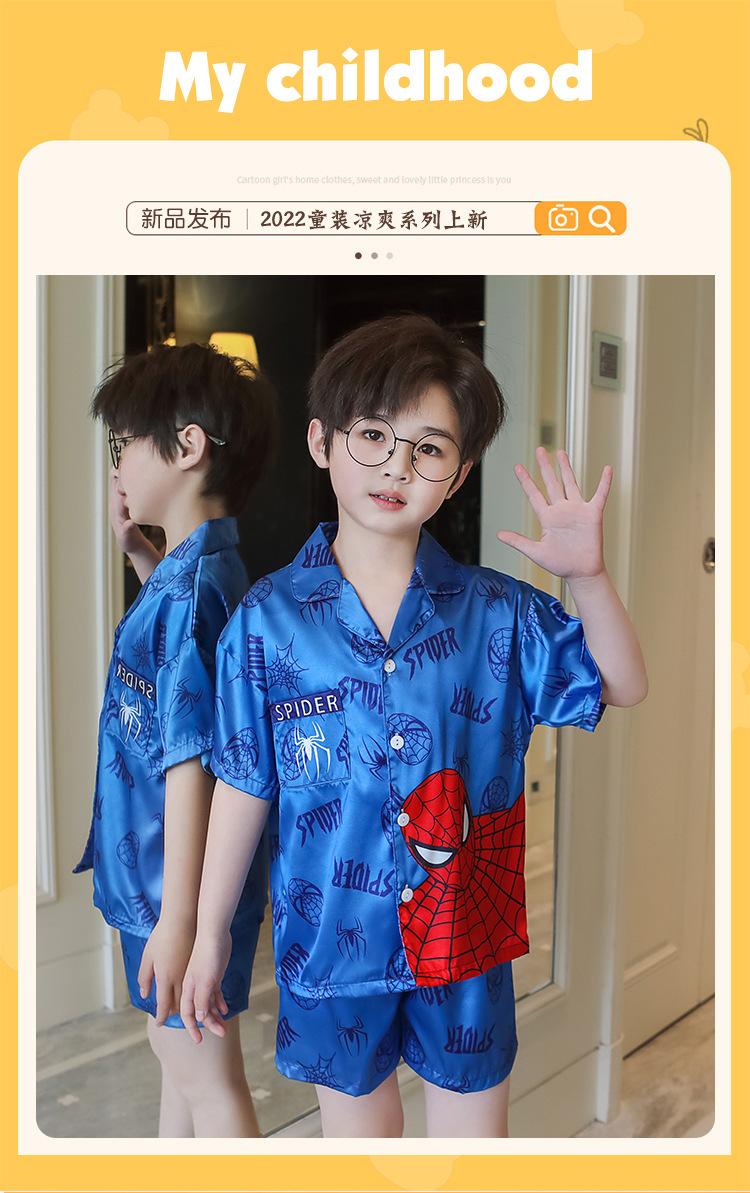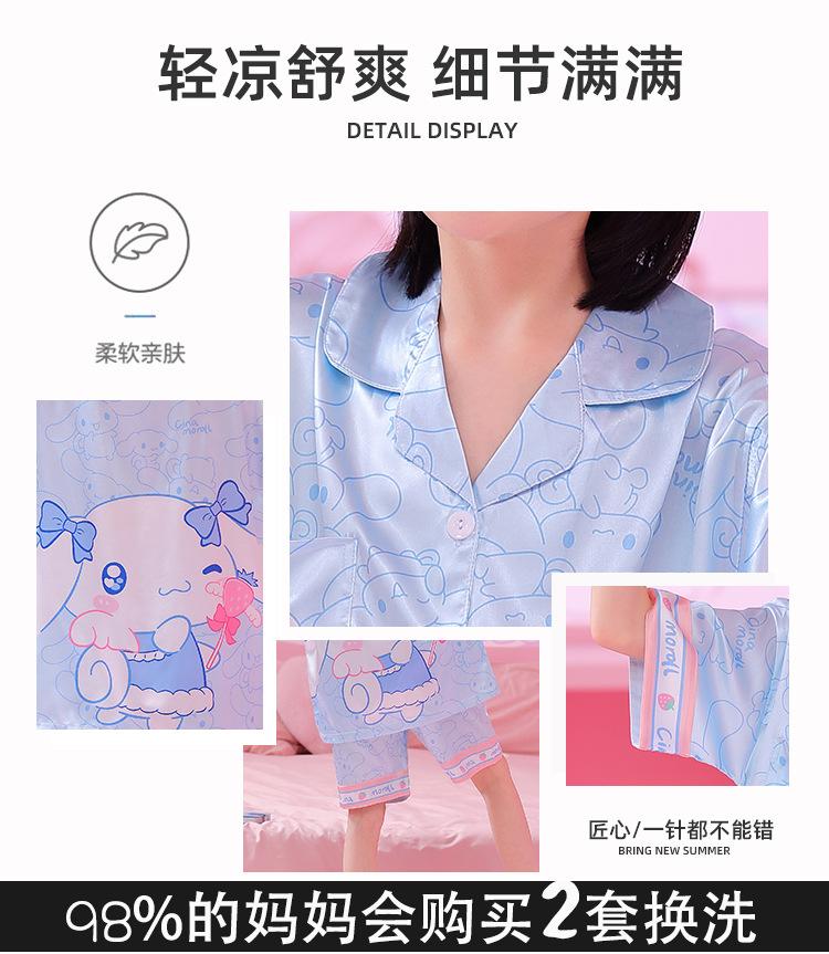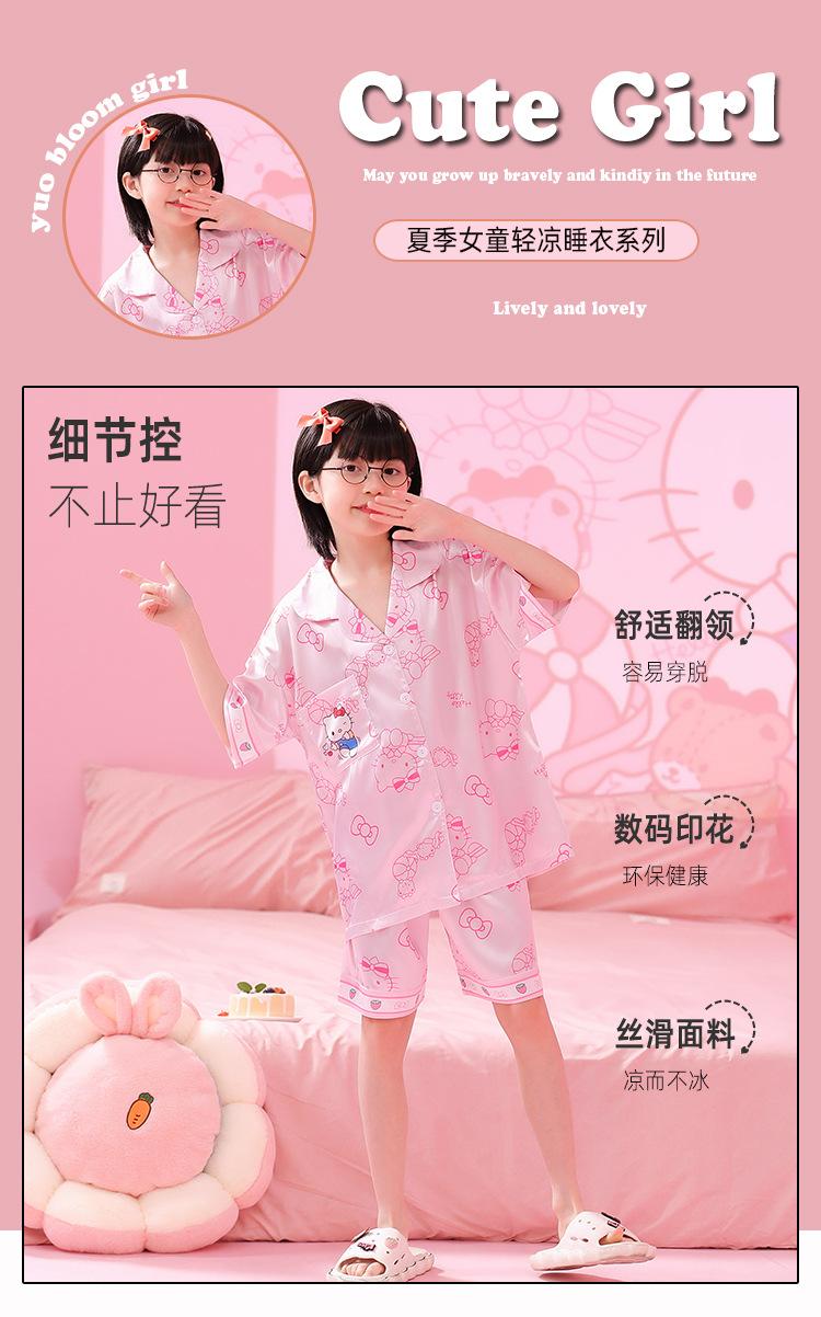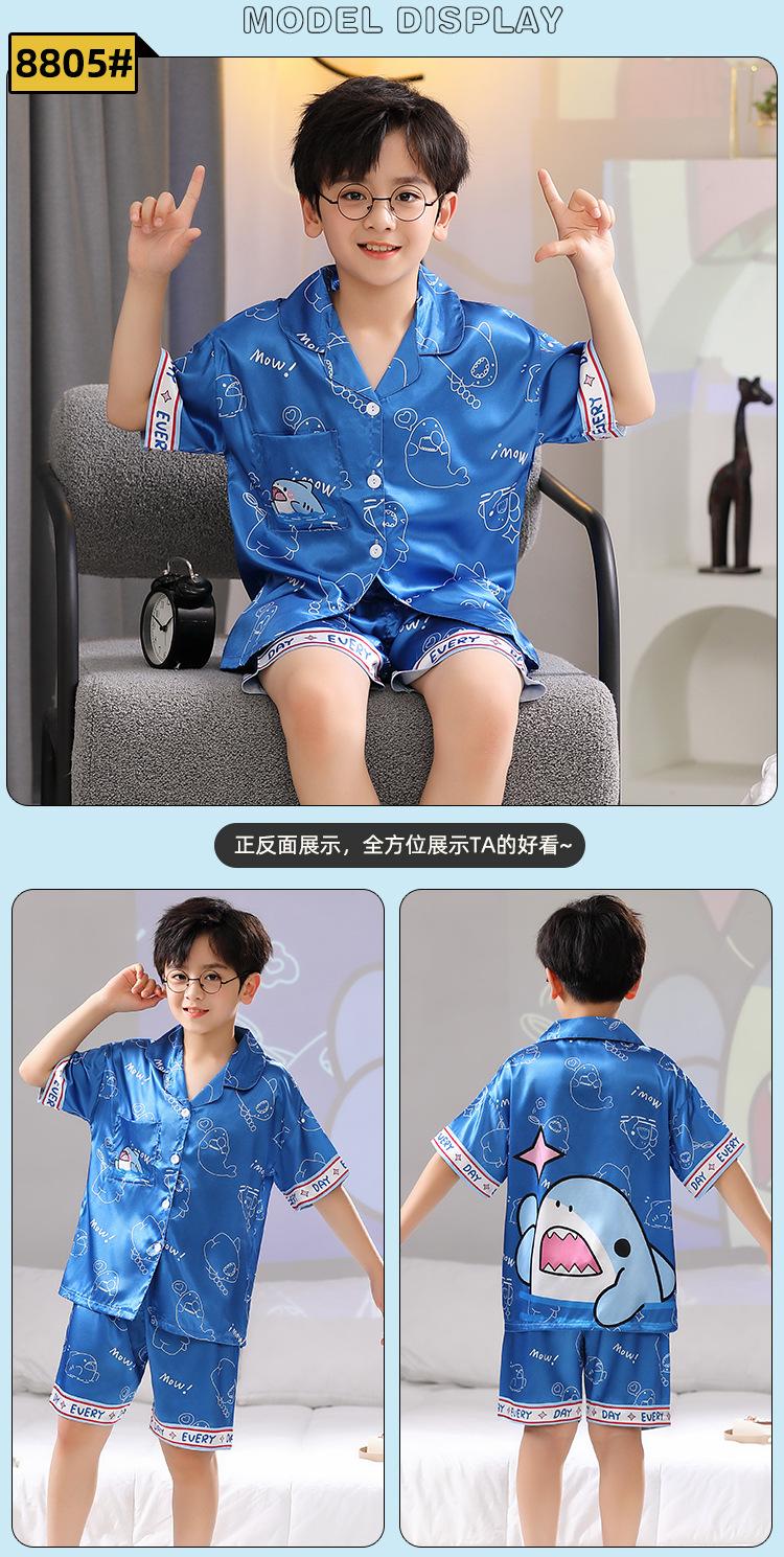 Pijamas de verano para niños, ropa de dormir de manga corta con solapa y estampado de dibujos animados, ideal para estudiantes de secundaria y niñas.