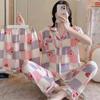 Pijama de verano de tres piezas para mujer, ropa de dormir fina de talla grande, de espuma, de alta gama, para el hogar, 2024