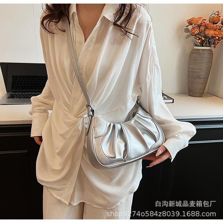 Bolso Pequeño de Lujo Ligero Estilo Francés con Pliegues para Axila para Mujer 2024 Nueva Moda Nicho Bolso Mensajero Bolso de Hombro para Viajes de Mujer