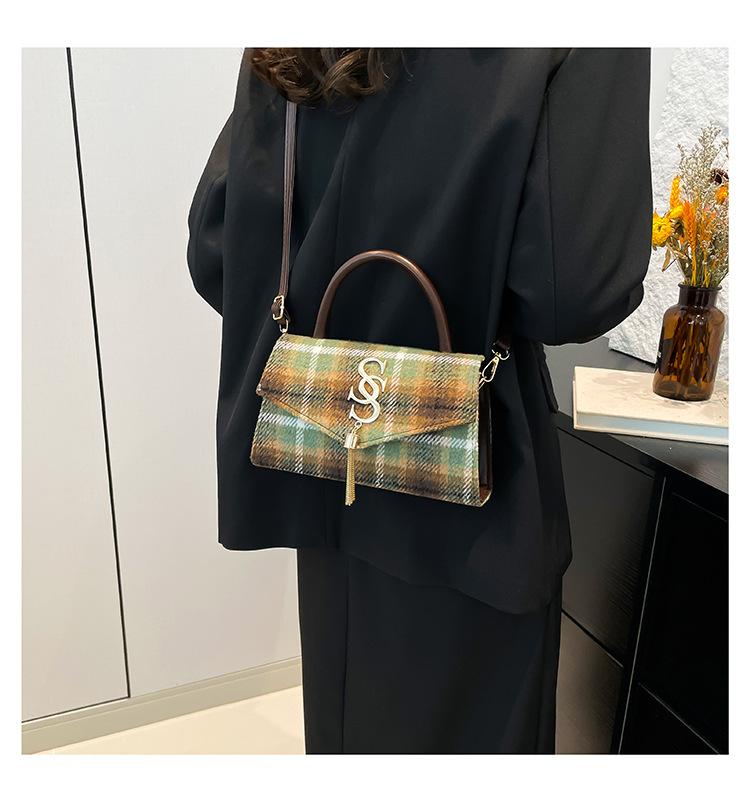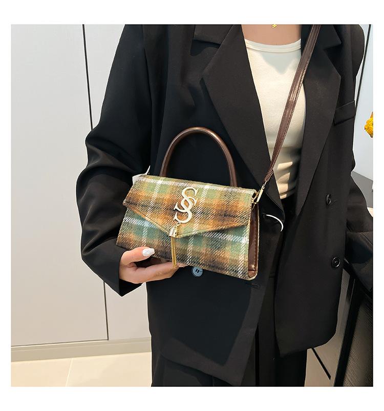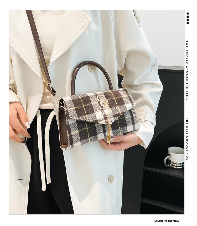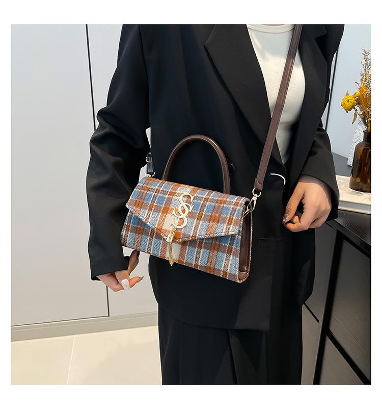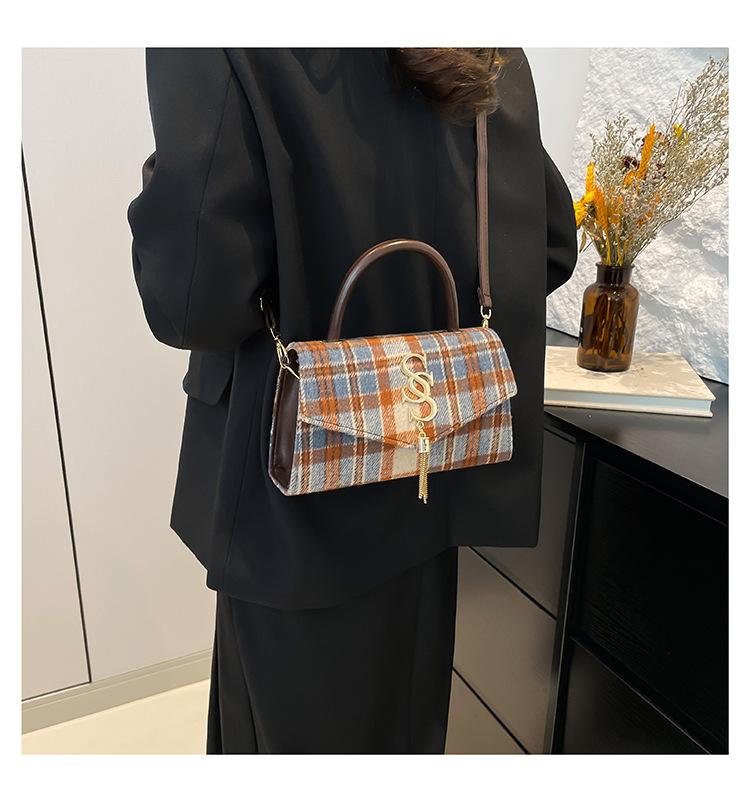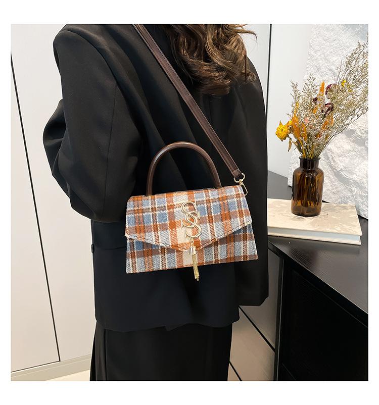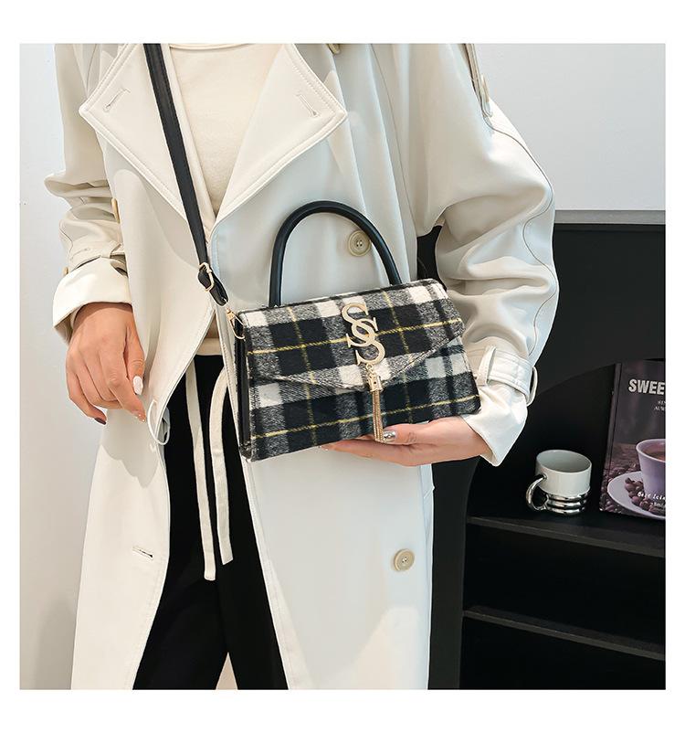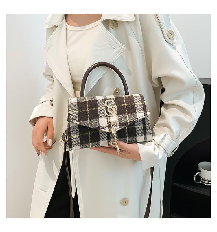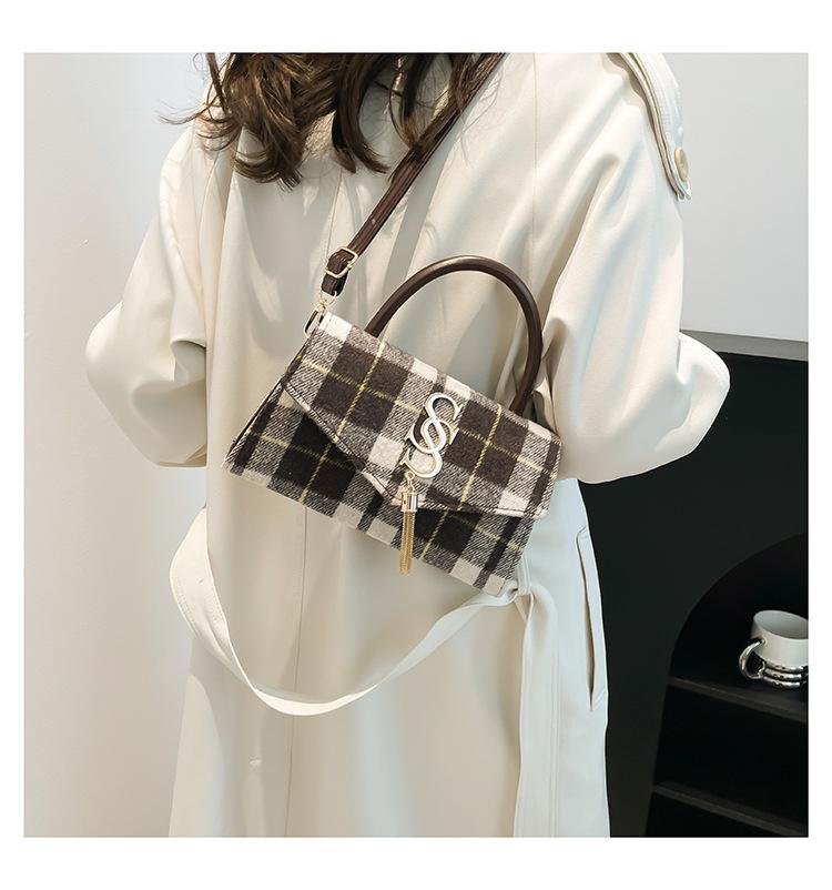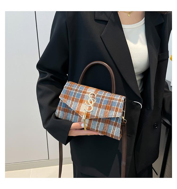 Bolso de mano sencillo de moda con textura a cuadros para mujer, nuevo bolso cuadrado pequeño combinable con todo, estilo occidental, bandolera de hombro, 2024