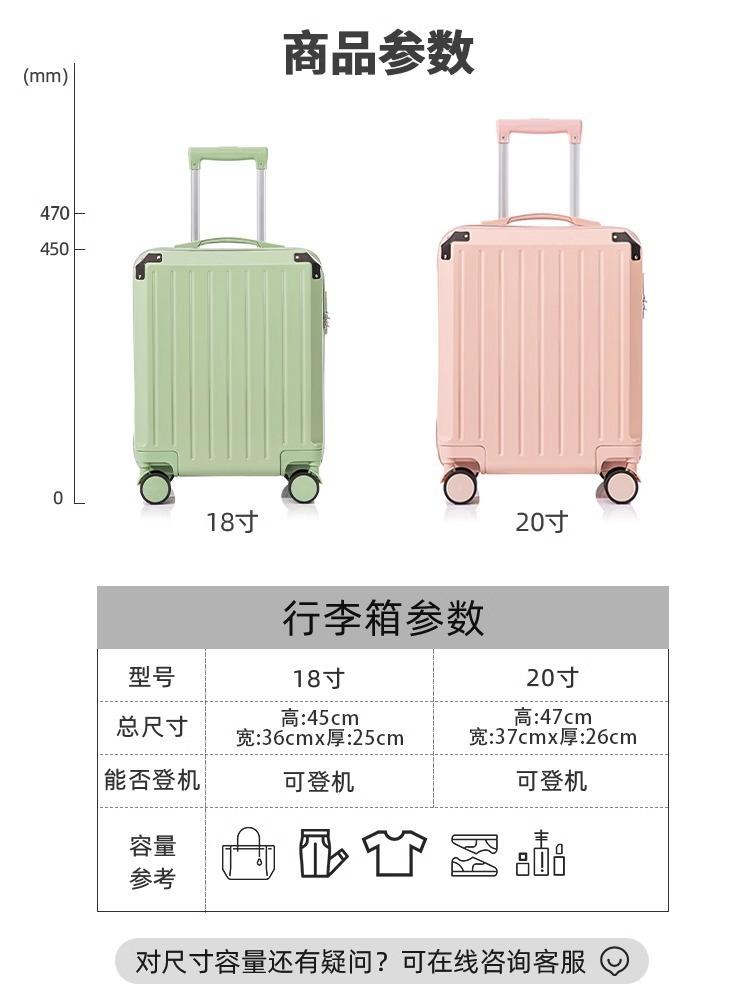 Maleta de embarque nueva de 18 pulgadas pequeña para mujer, robusta y duradera, maleta con ruedas universal para hombre, maleta con contraseña, ligera