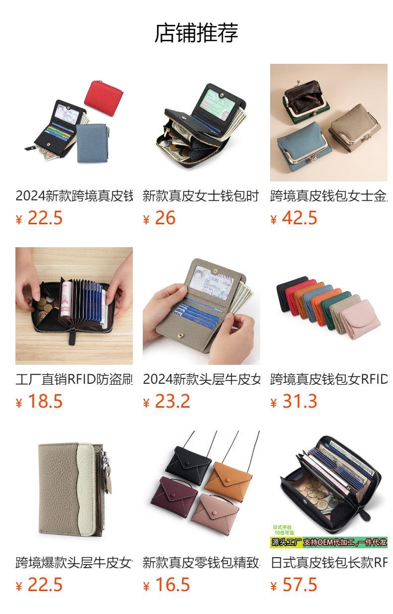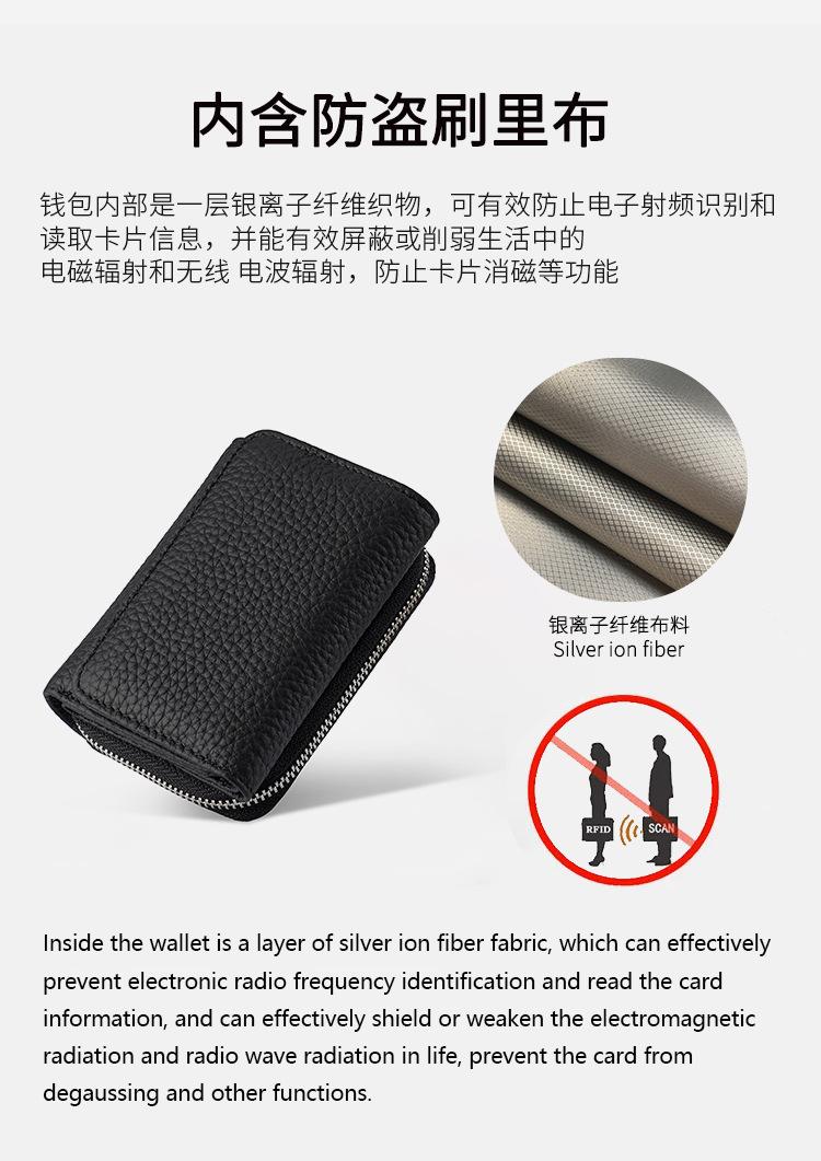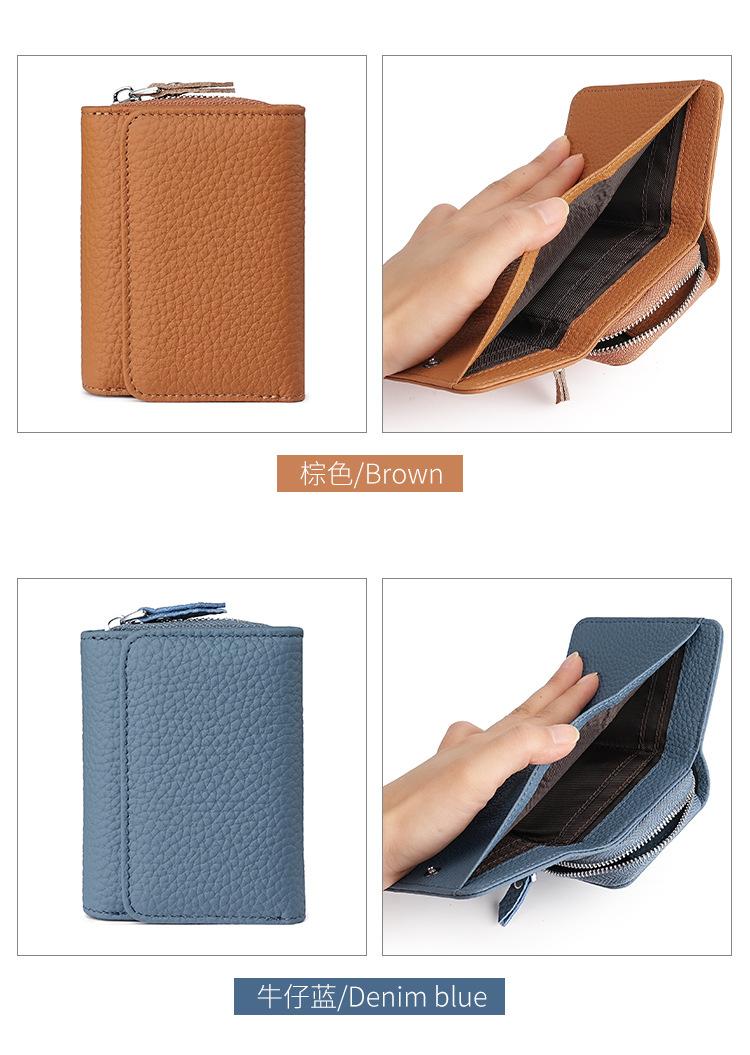 Monedero pequeño de estilo japonés transfronterizo para mujer de cuero genuino RFID antirrobo cepillo Doka-bit para mujer monedero triple monedero con cremallera
