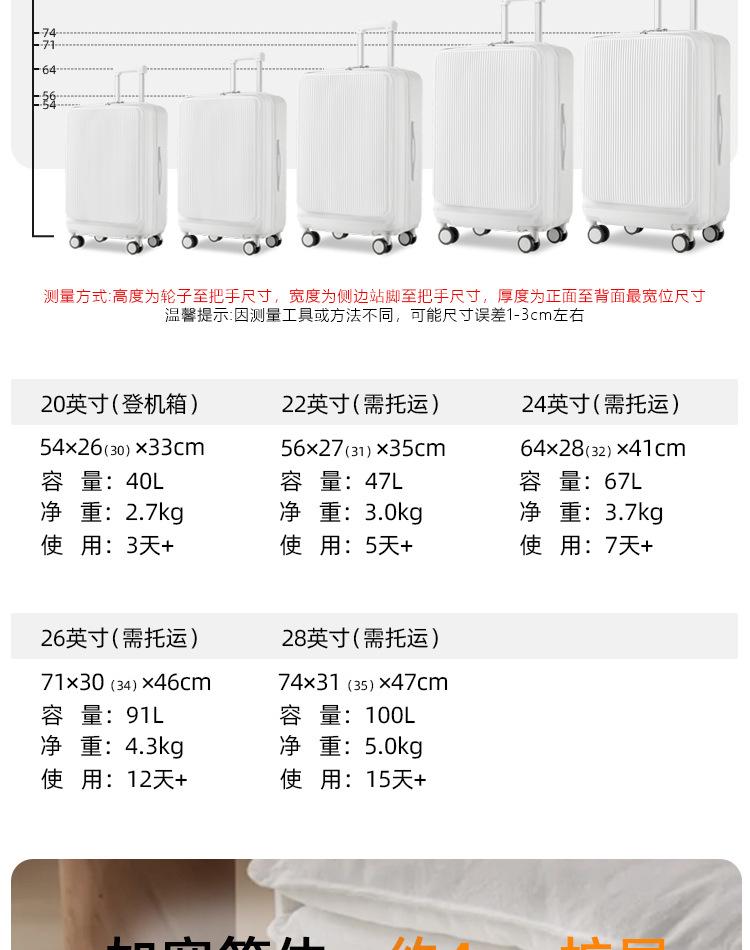 20inch (side opening model + expansion layer opening is equivalent to 22inch ), 24inch (side opening model + e...