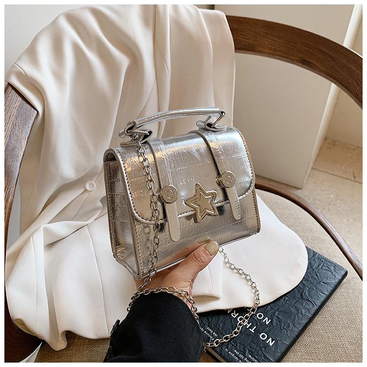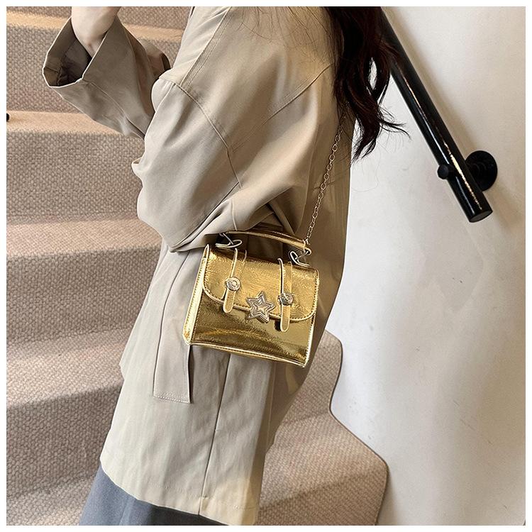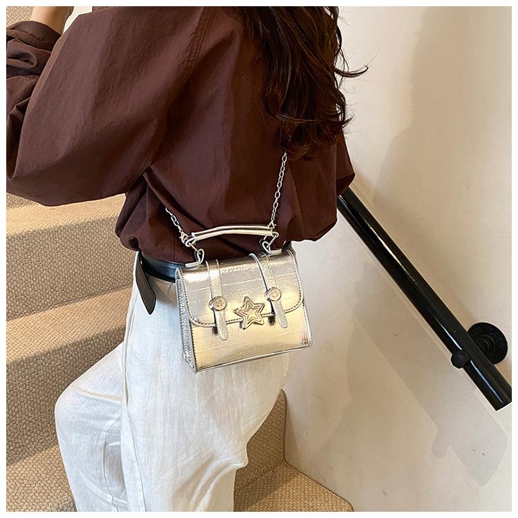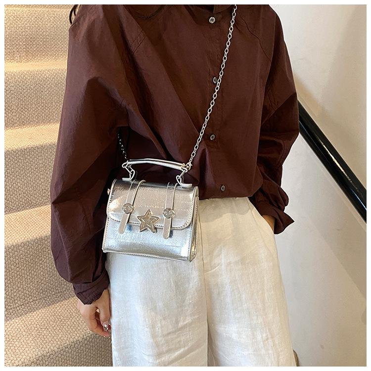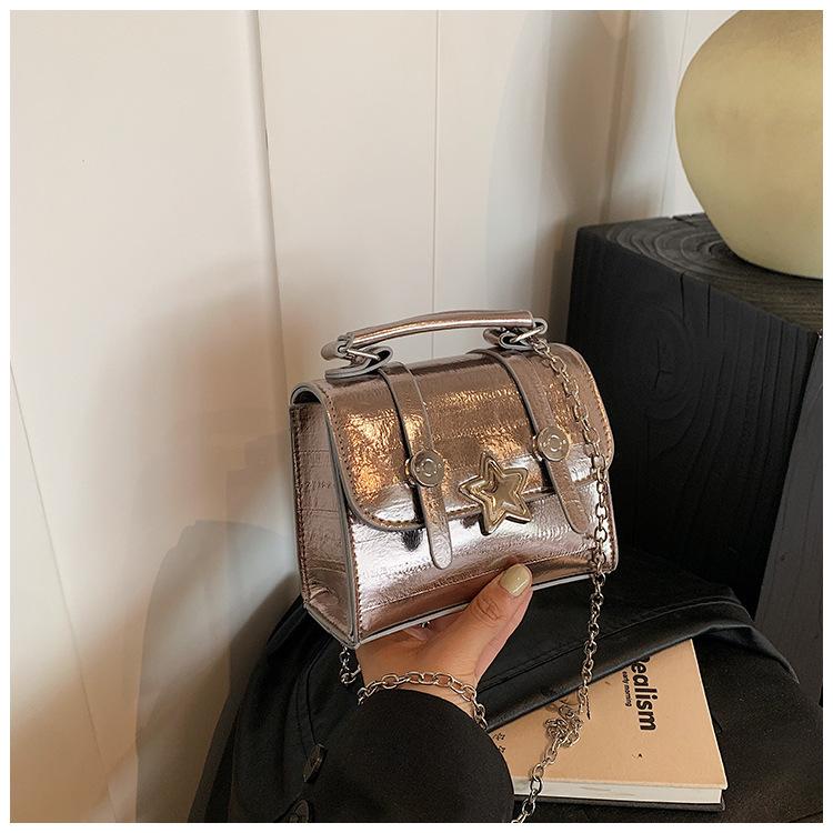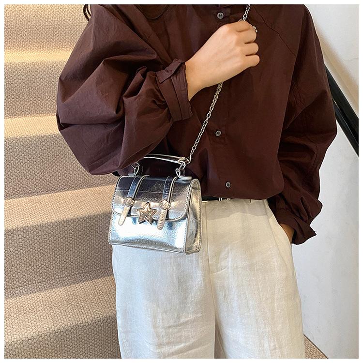 2025 nueva moda bolso simple retro brillante láser cadena bandolera casual viajero pequeño bolso cuadrado
