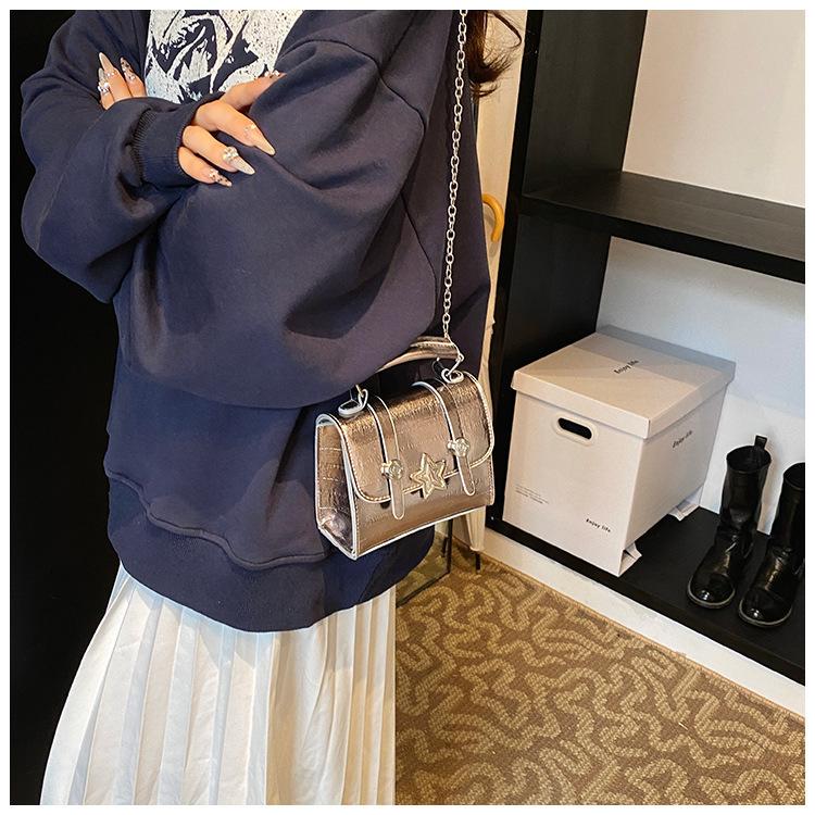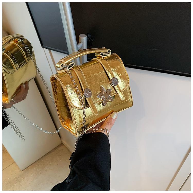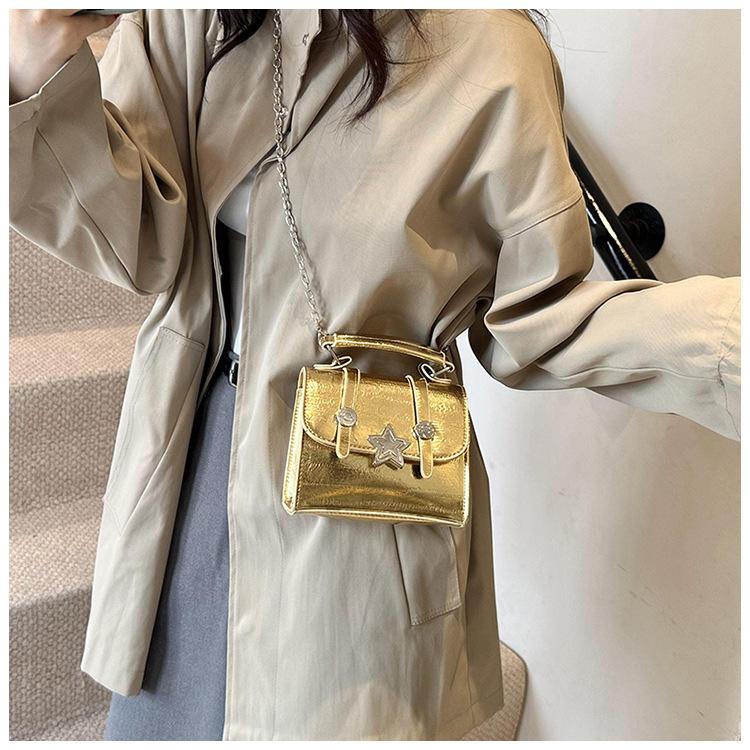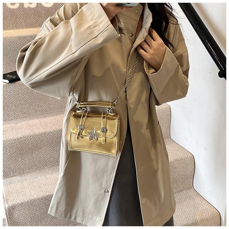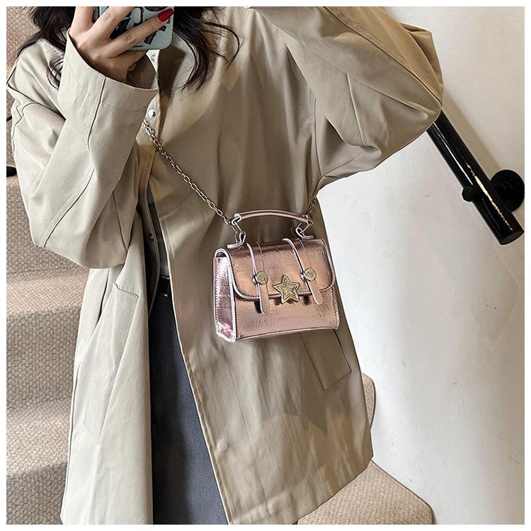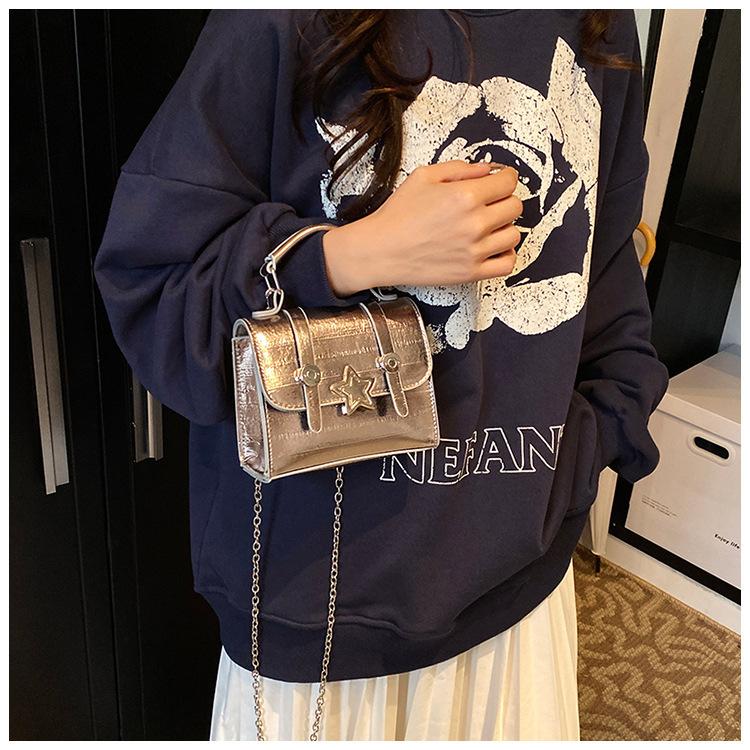 2025 nueva moda bolso simple retro brillante láser cadena bandolera casual viajero pequeño bolso cuadrado