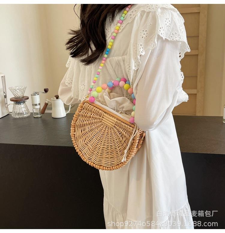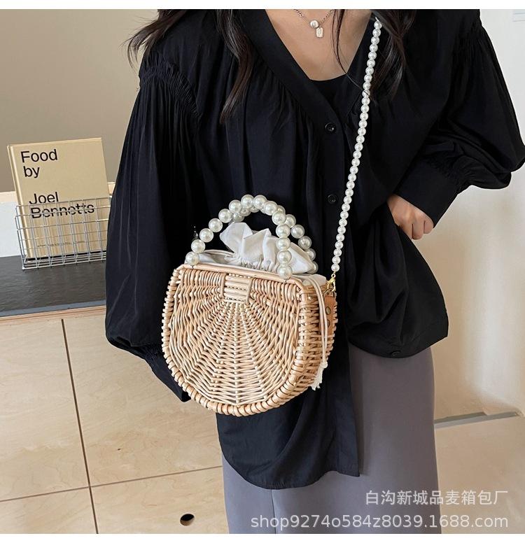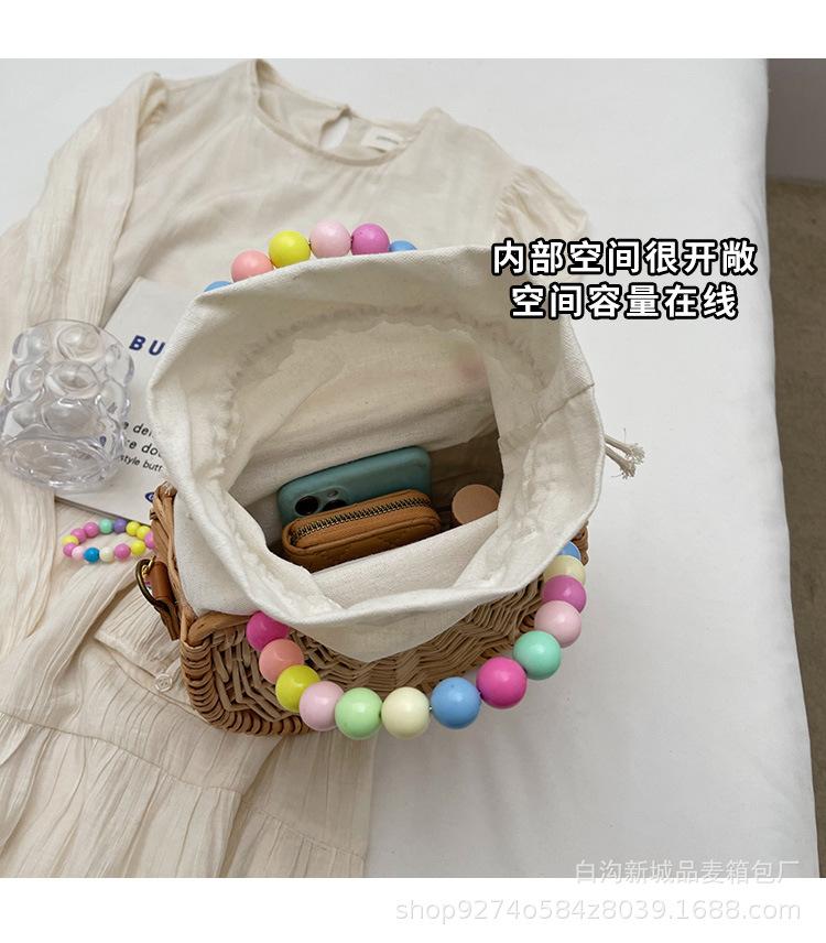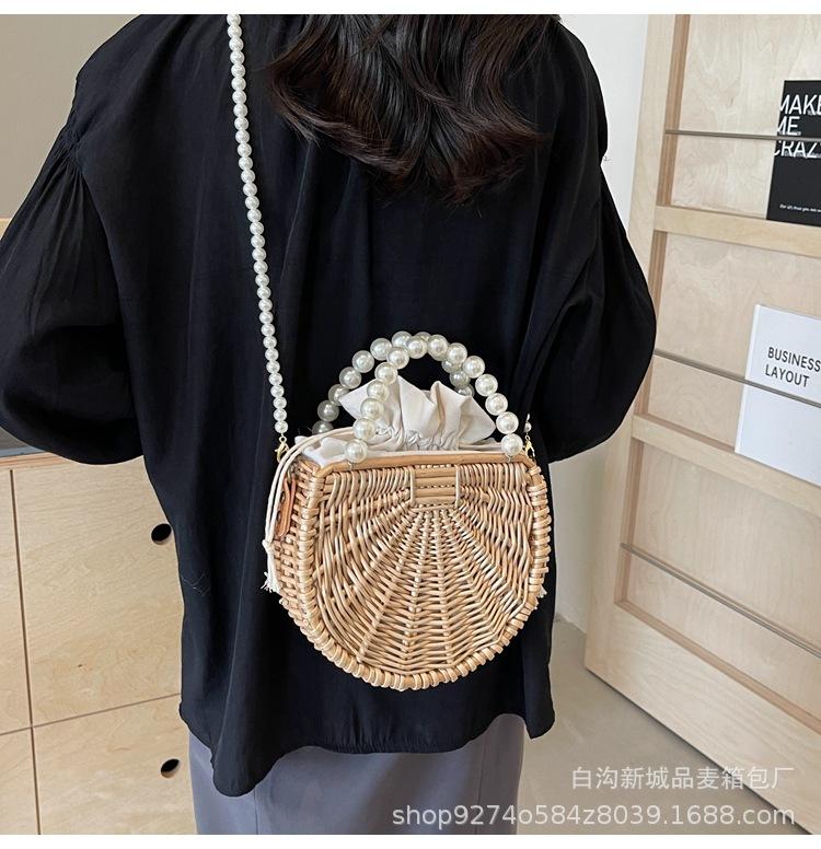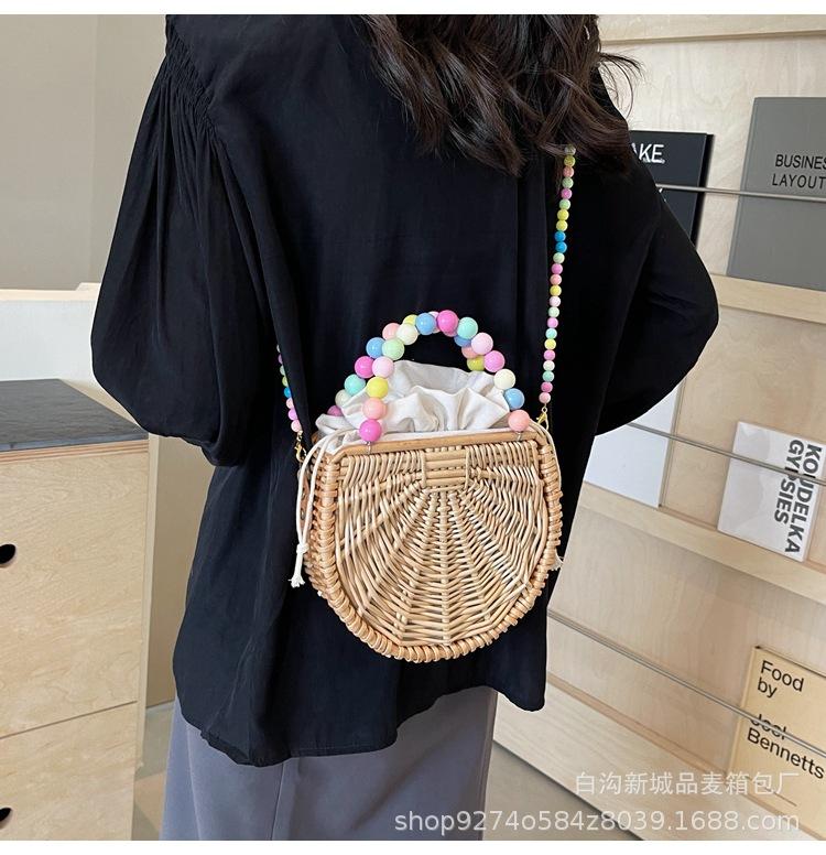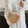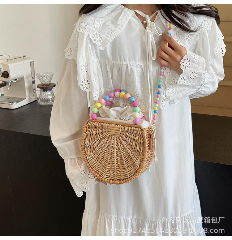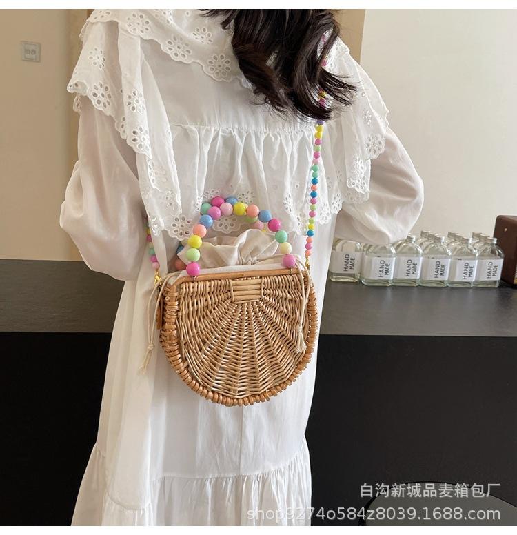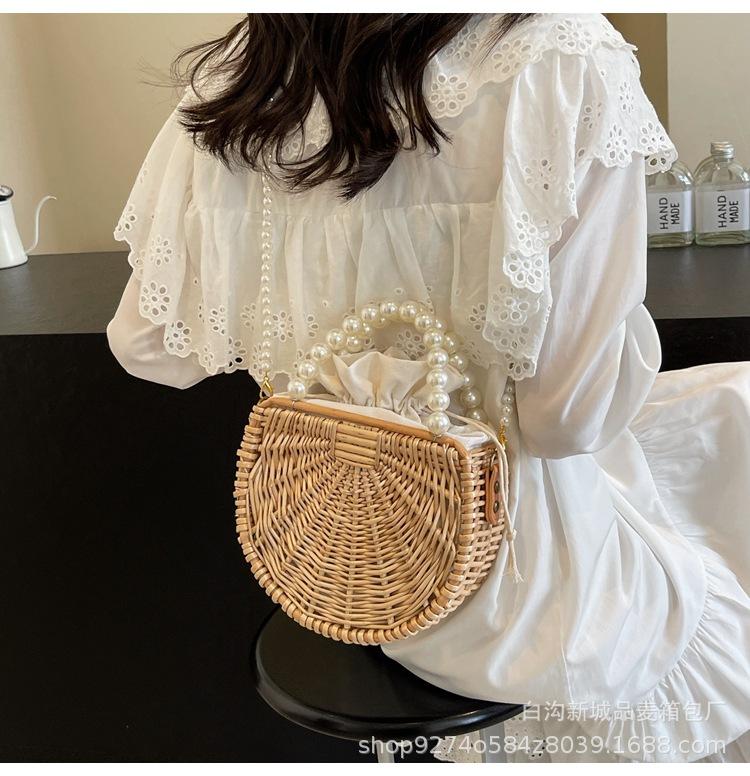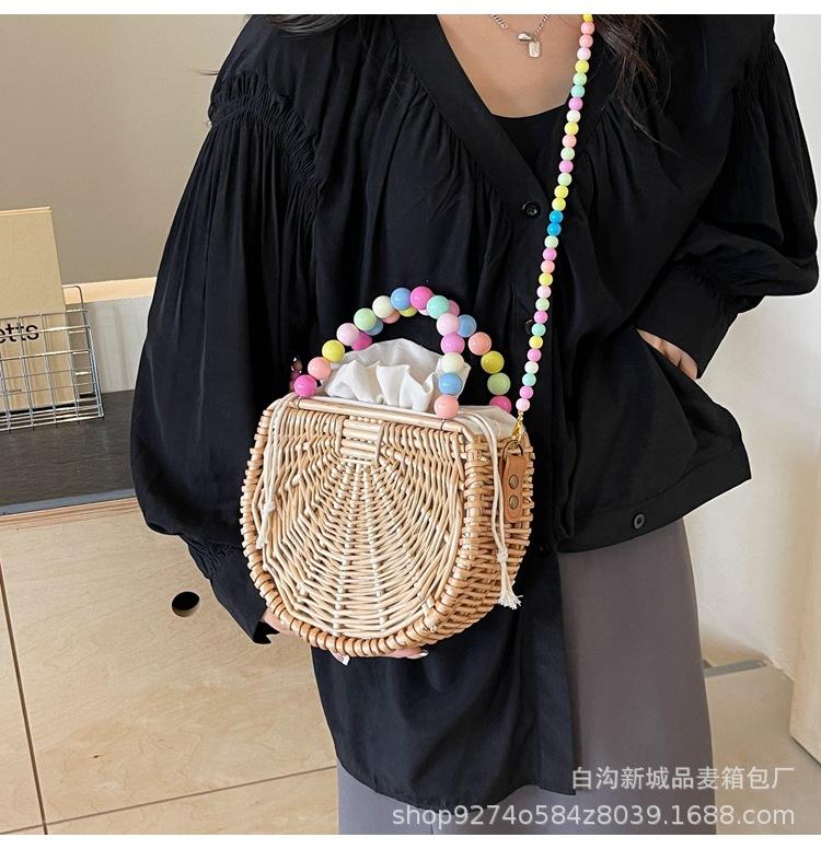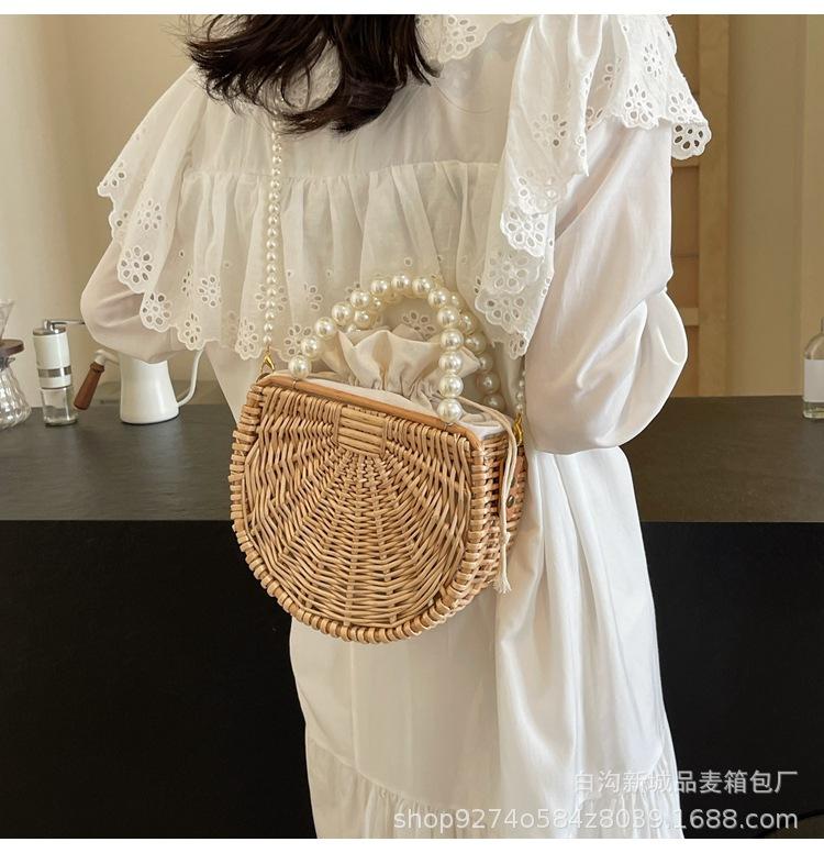 Bolso pequeño portátil tejido de estilo fresco de verano para mujer, nuevo estilo 2024, bolso cruzado estilo occidental, bolso pequeño de paja para vacaciones en la playa.