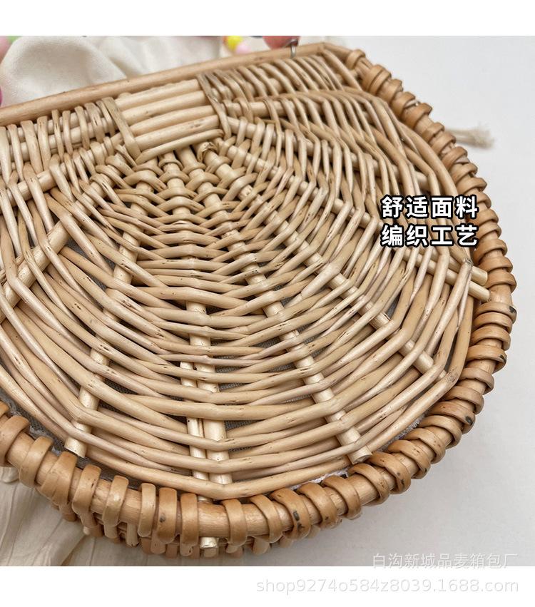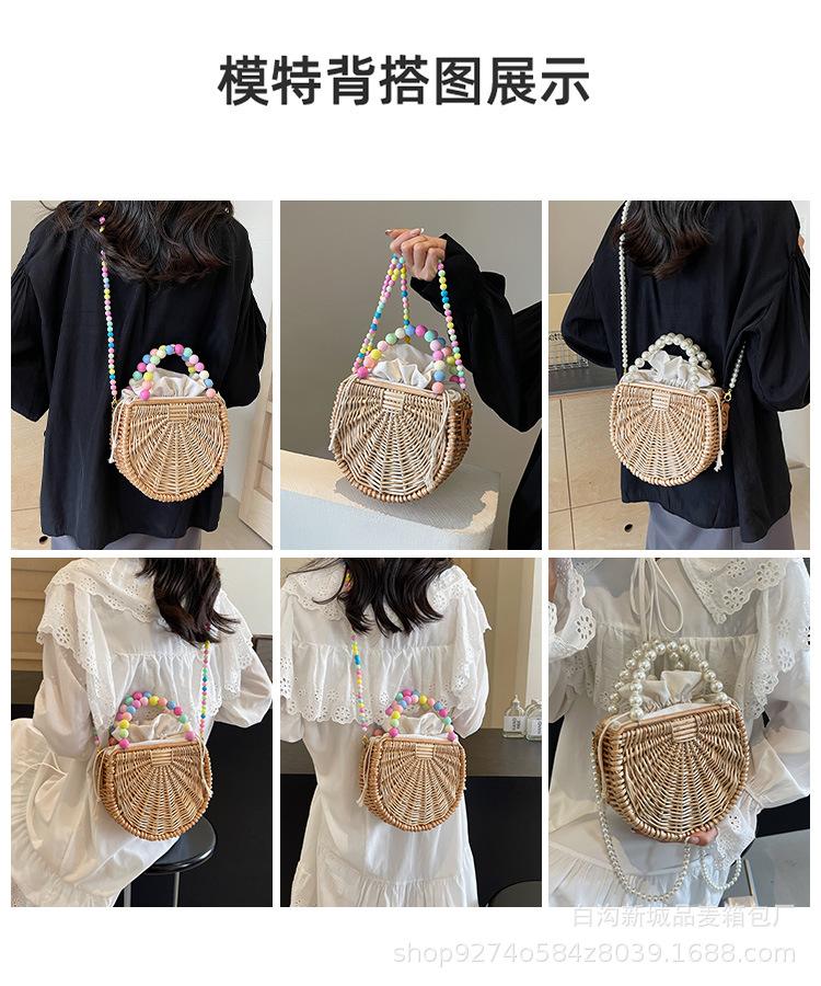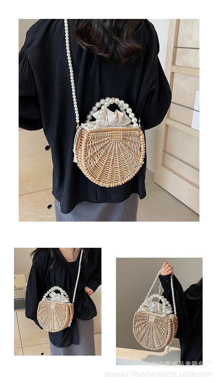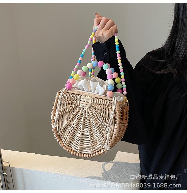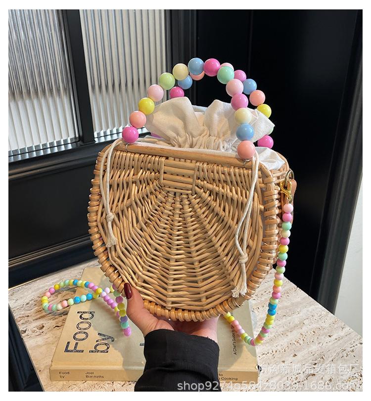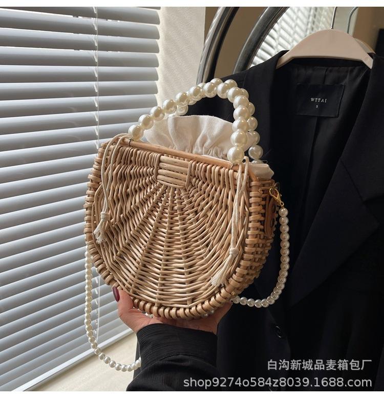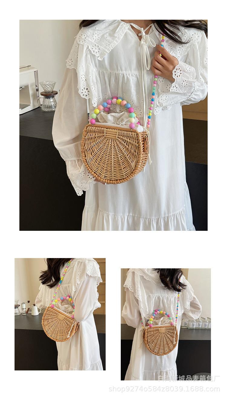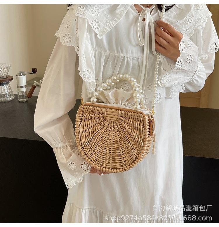 Bolso pequeño portátil tejido de estilo fresco de verano para mujer, nuevo estilo 2024, bolso cruzado estilo occidental, bolso pequeño de paja para vacaciones en la playa.