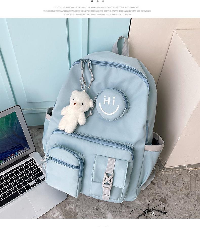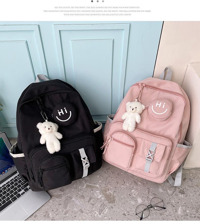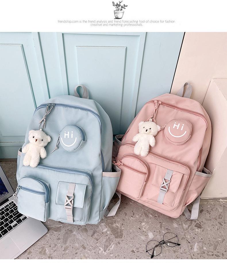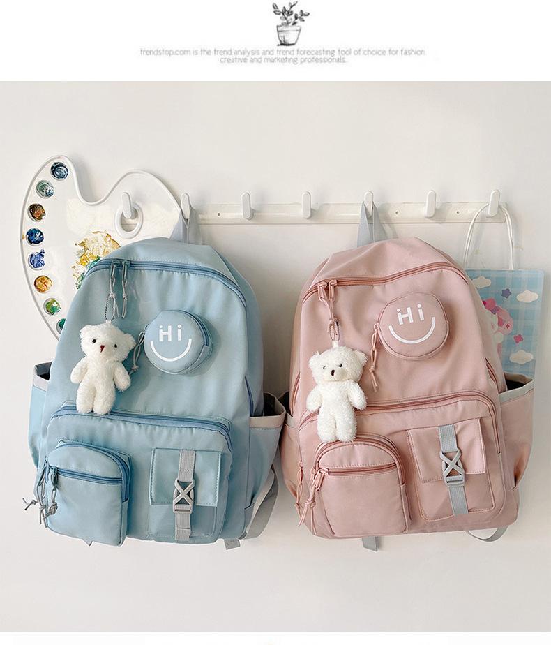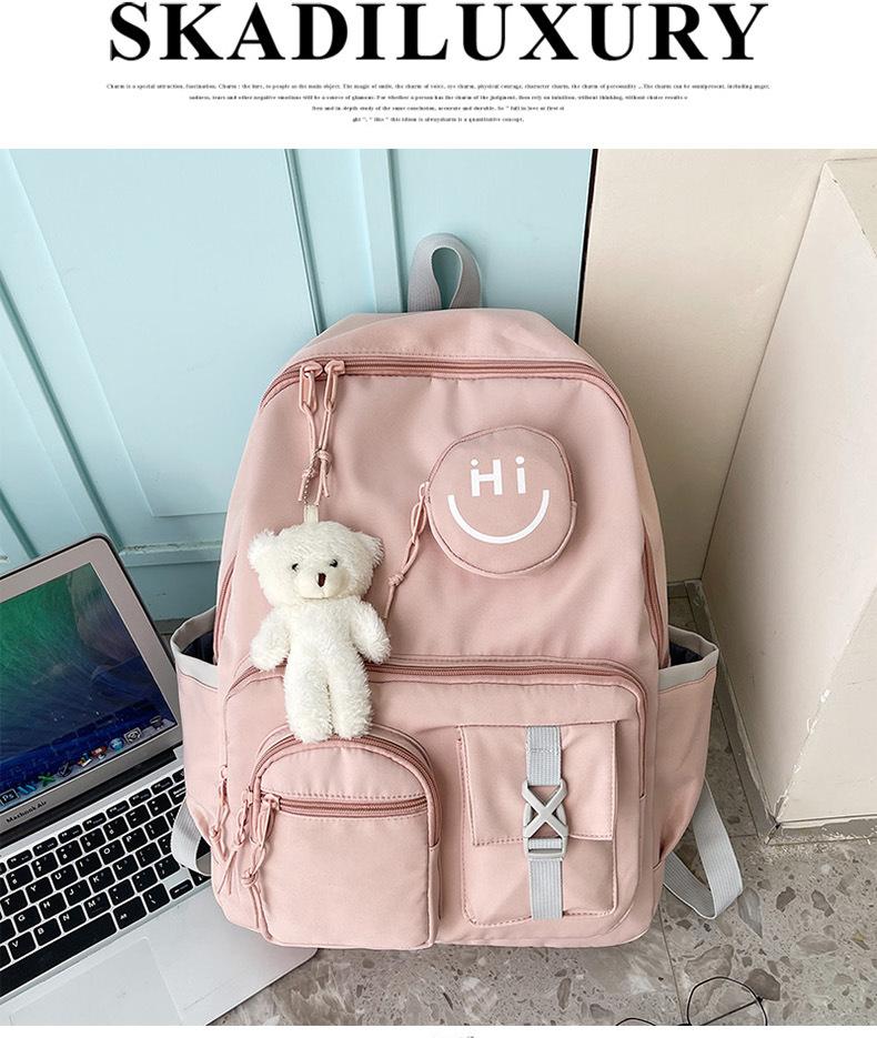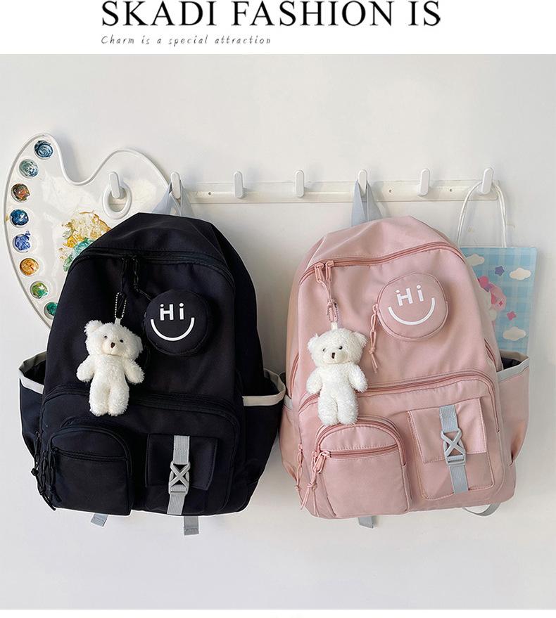 Mochila escolar linda de estilo japonés para niñas, estilo coreano, para estudiantes de secundaria, de gran capacidad, para estudiantes de secundaria y primaria, mochila de viaje con cara sonriente