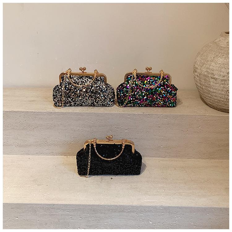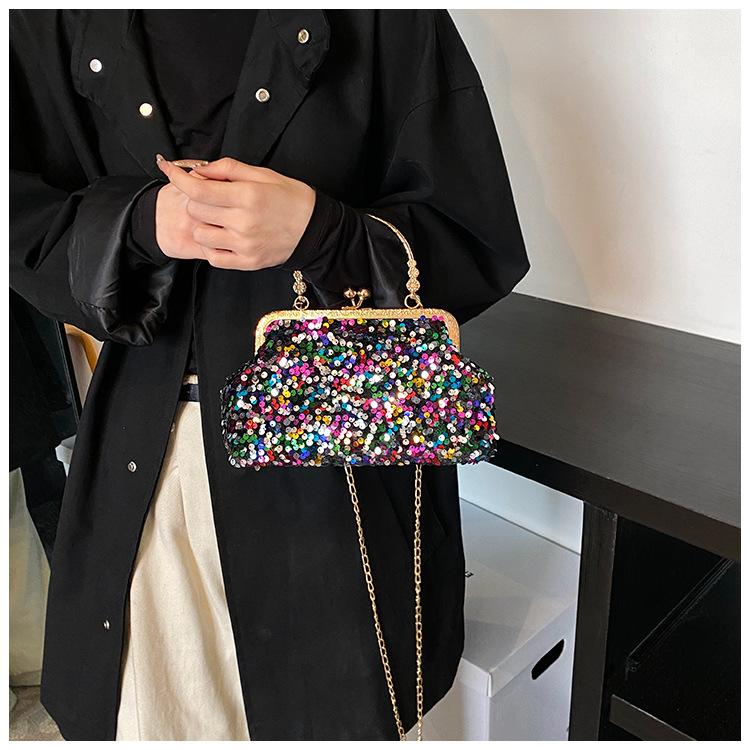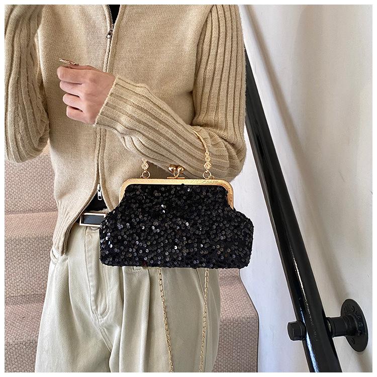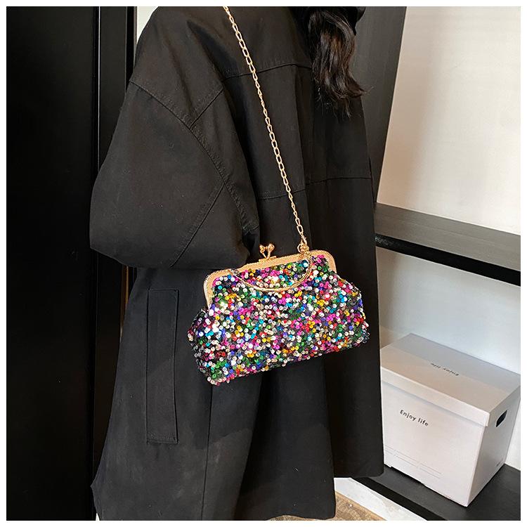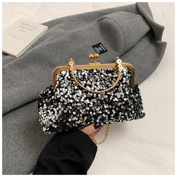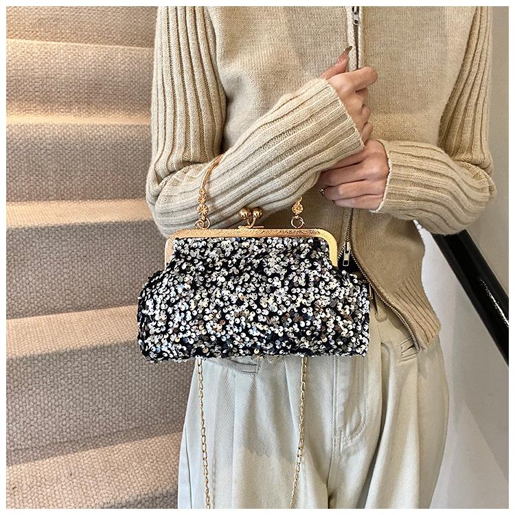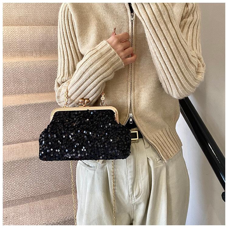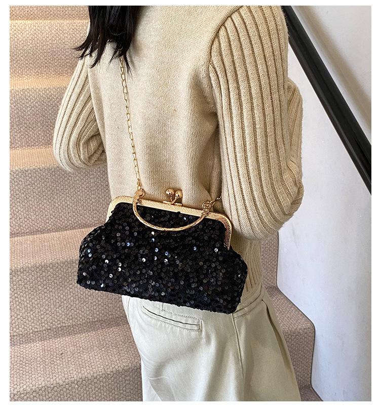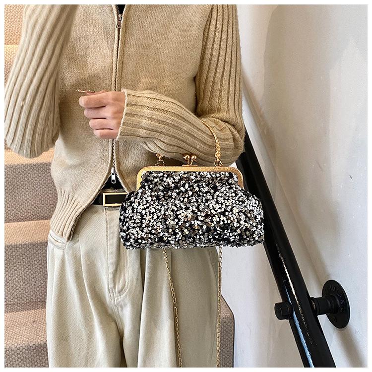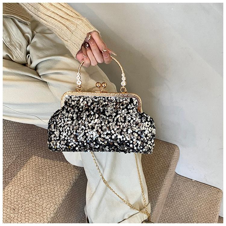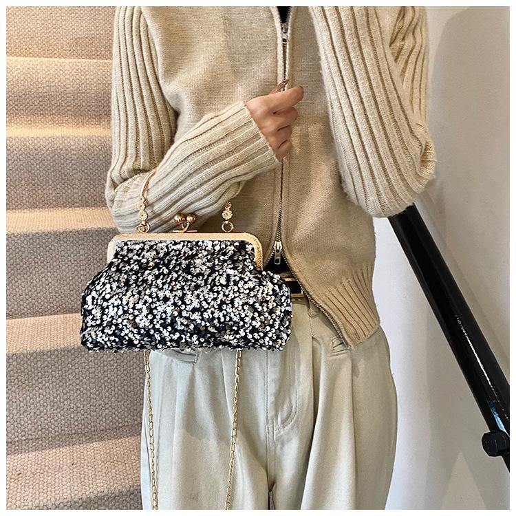 Hermoso bolso de banquete coreano, bolso de hombro con cadena para mujer, bolso cruzado con lentejuelas, novedad de 2024.