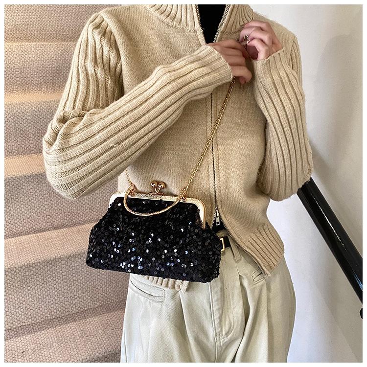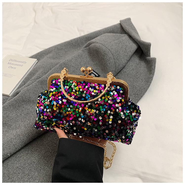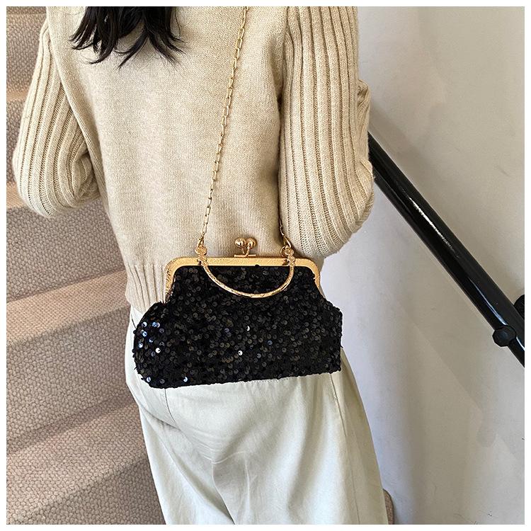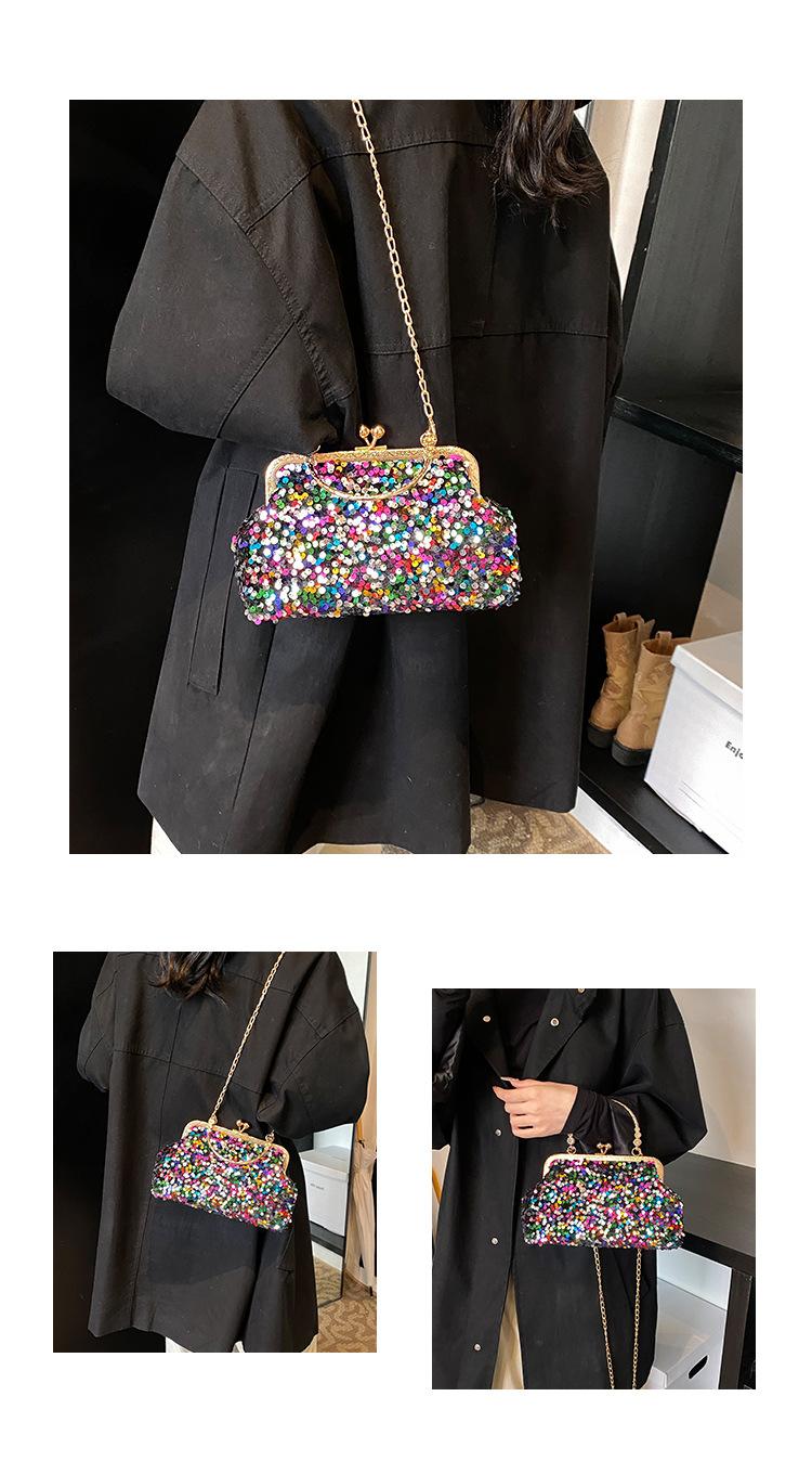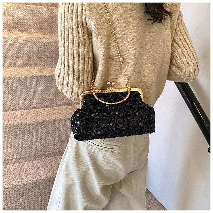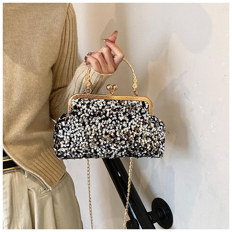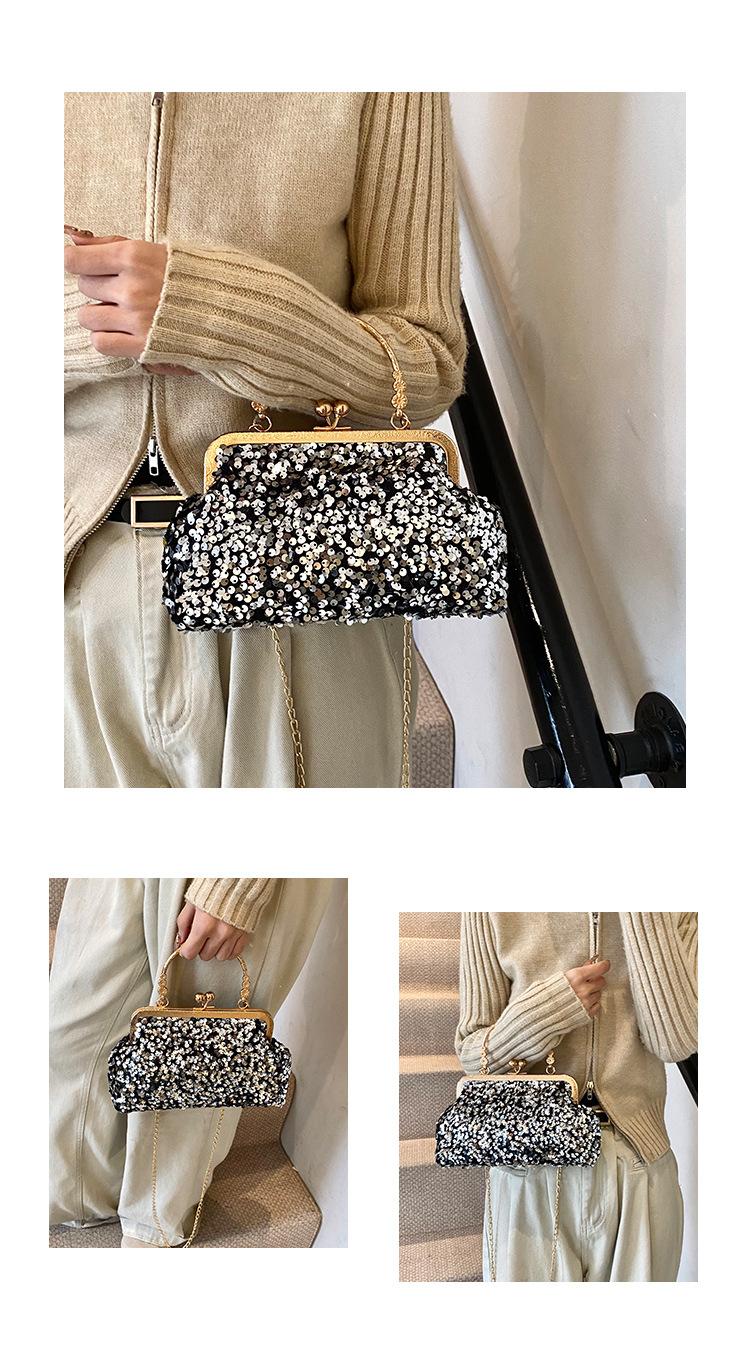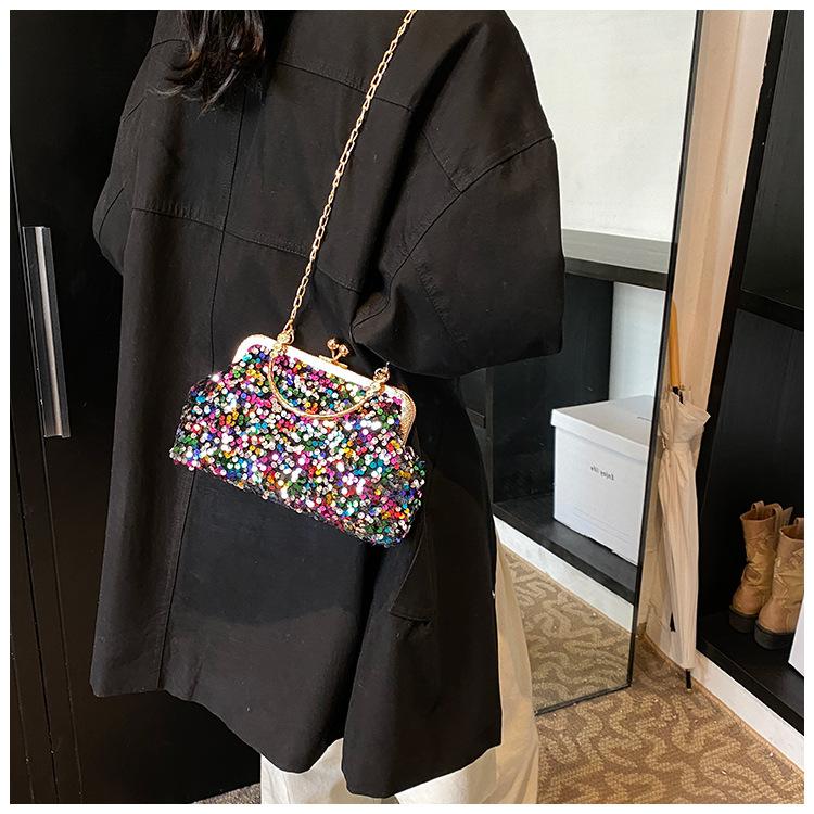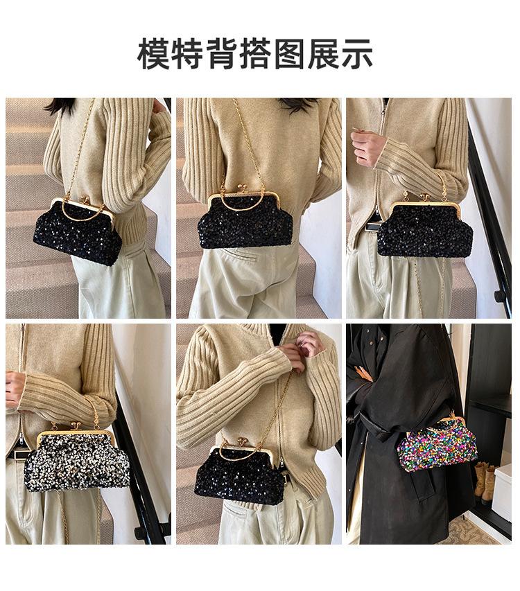 Hermoso bolso de banquete coreano, bolso de hombro con cadena para mujer, bolso cruzado con lentejuelas, novedad de 2024.