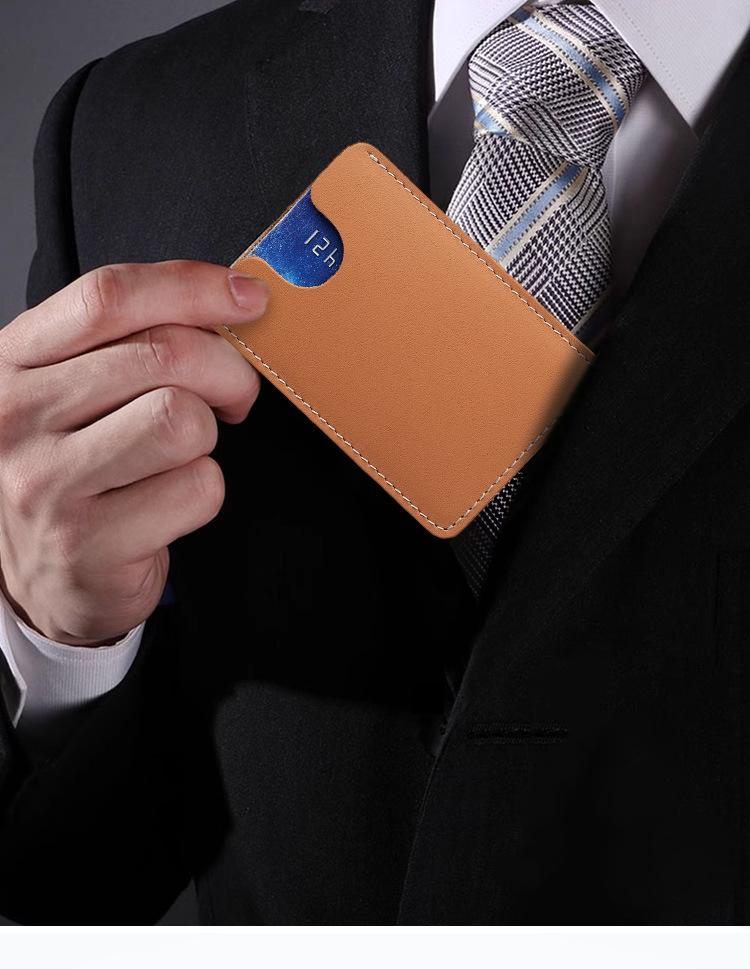 Tarjetero de piel de vaca de primera capa al por mayor, minitarjetero de cuero genuino para hombres y mujeres, ligero y suave, funda protectora para tarjetas de crédito.