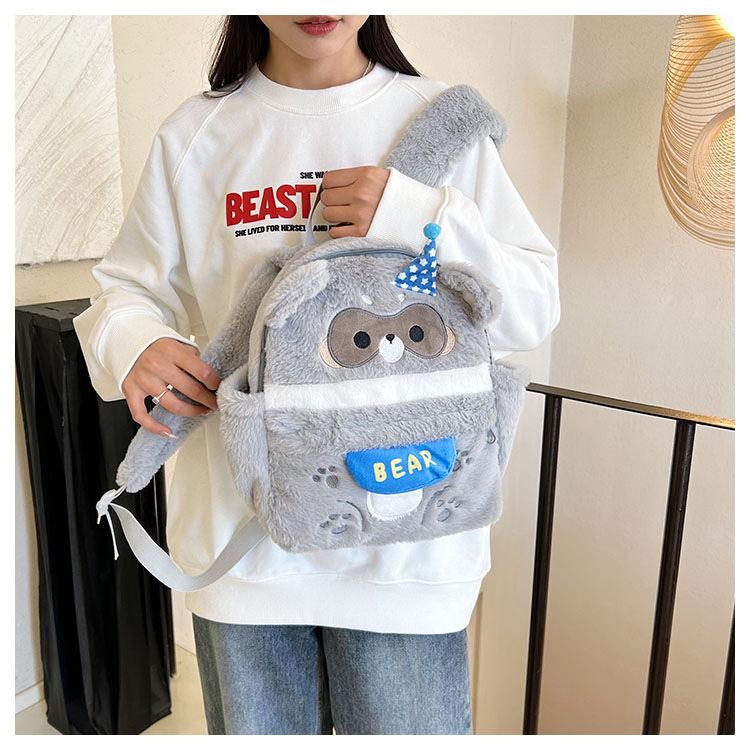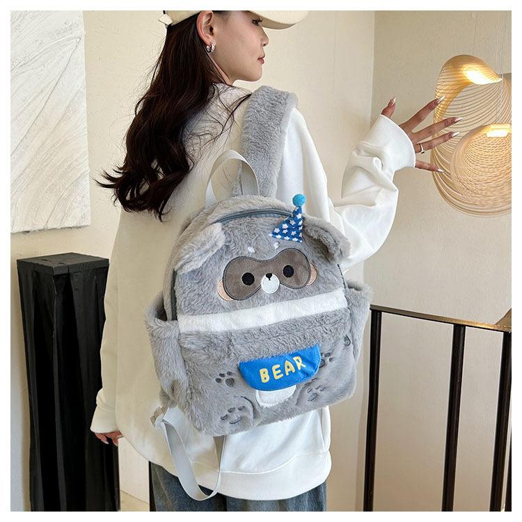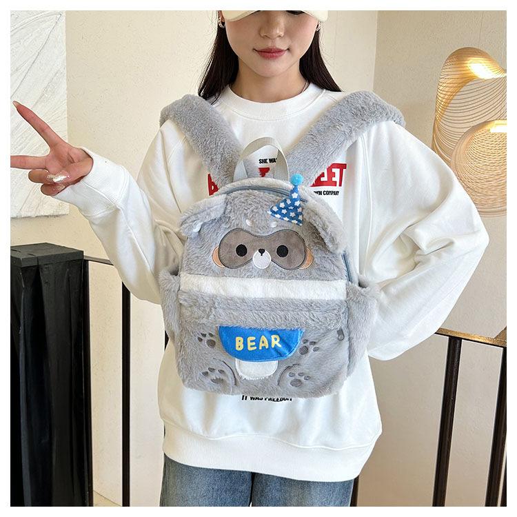 Nueva mochila escolar de peluche con capucha de dibujos animados, bonita y bonita mochila para la escuela primaria, mochila de gran capacidad para ir al trabajo.