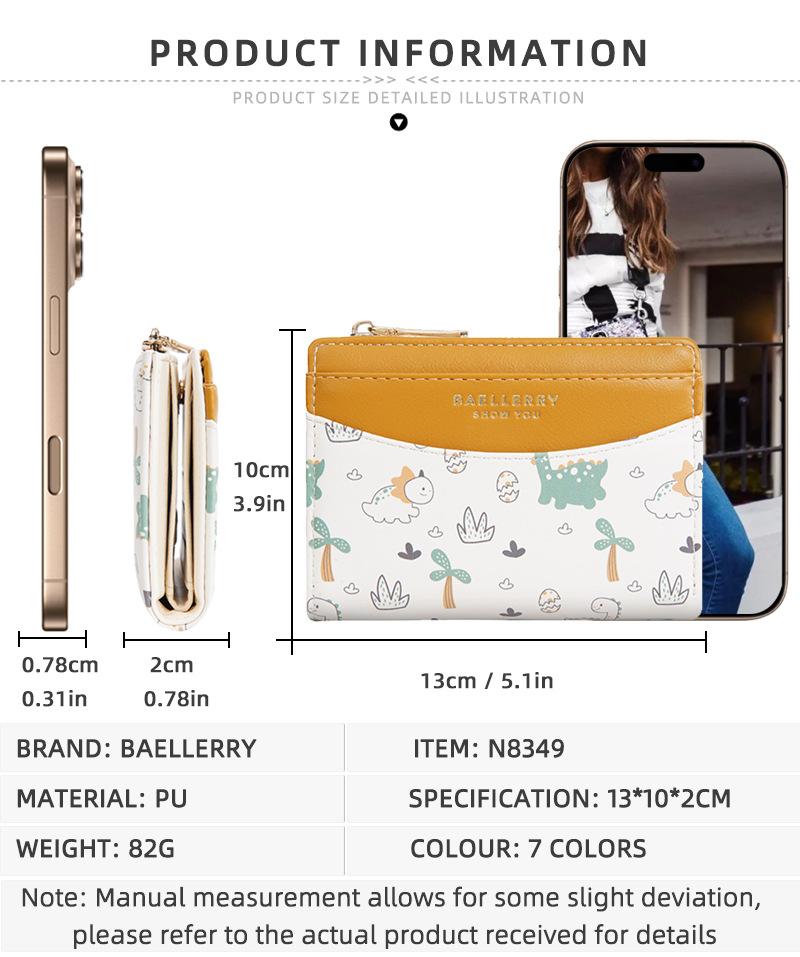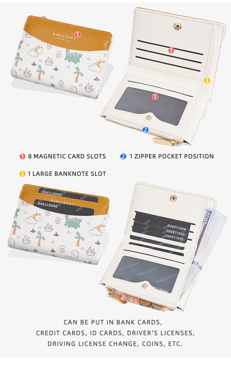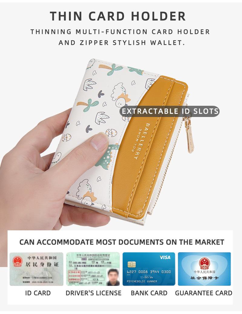 Titular de Tarjetas Titular de Tarjetas Moda Femenina Lindo Estampado de Dinosaurio Monedero Nicho Cierre de Cremallera Titular de Tarjetas de Gama Alta Id Bolsa de Cosméticos
