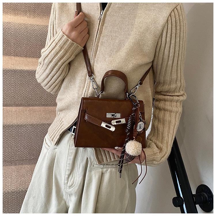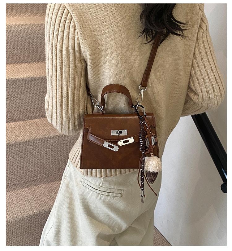 Bolso pequeño cuadrado portátil de moda de nicho para otoño e invierno 2024, bolso cruzado de hombro para mujer, estilo occidental, sencillo y combinable.