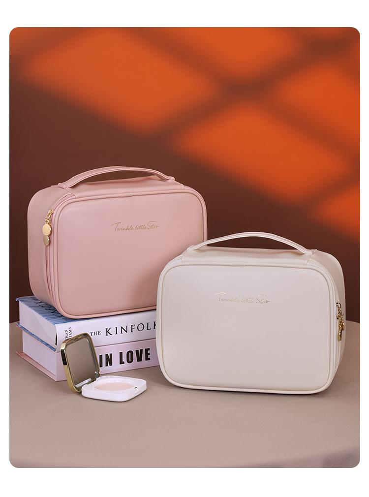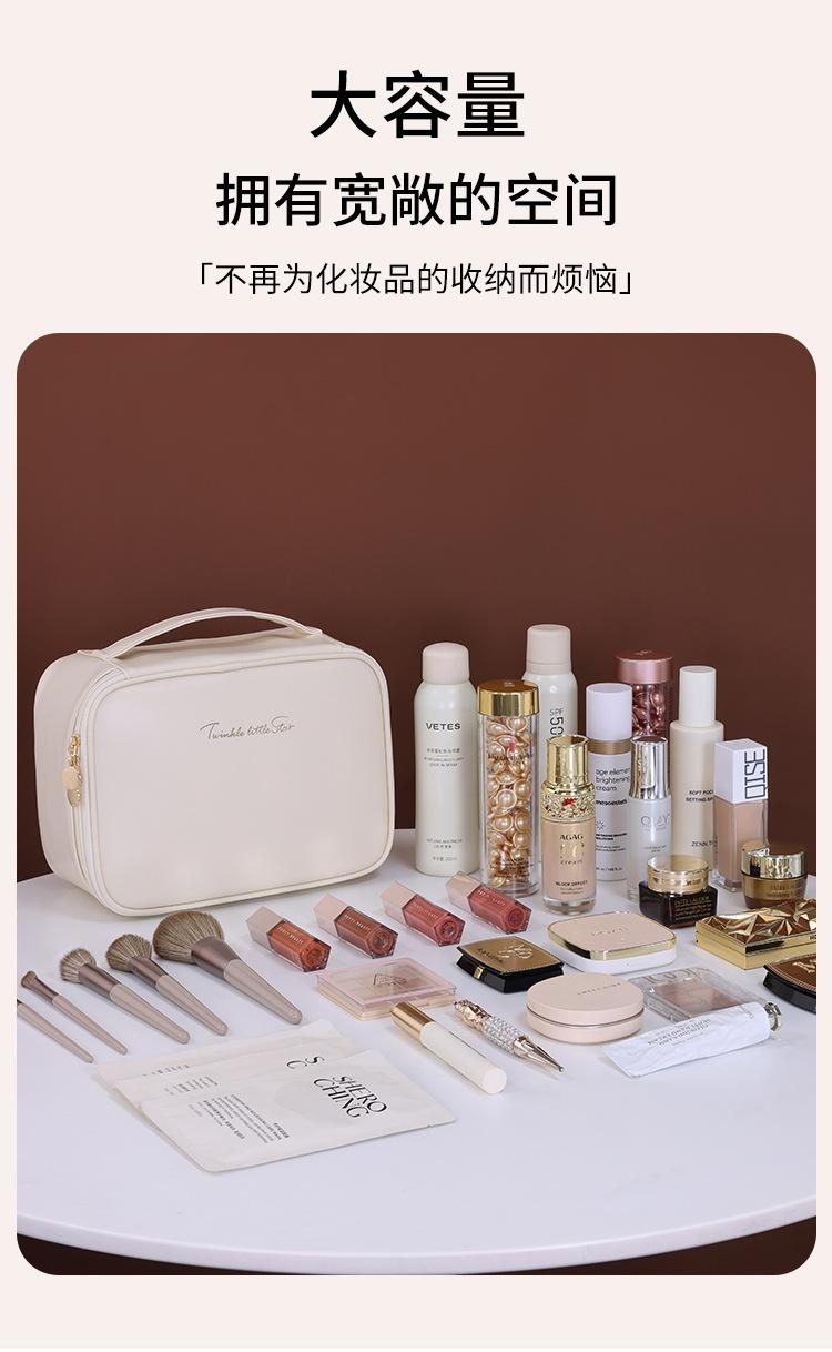 Bolsa Organizadora de Maquillaje Gratuita Transfronteriza, Bolsa de Almacenamiento de Cosméticos de Gran Capacidad, Estuche de Maquillaje Impermeable de Pu Portátil con Divisiones
