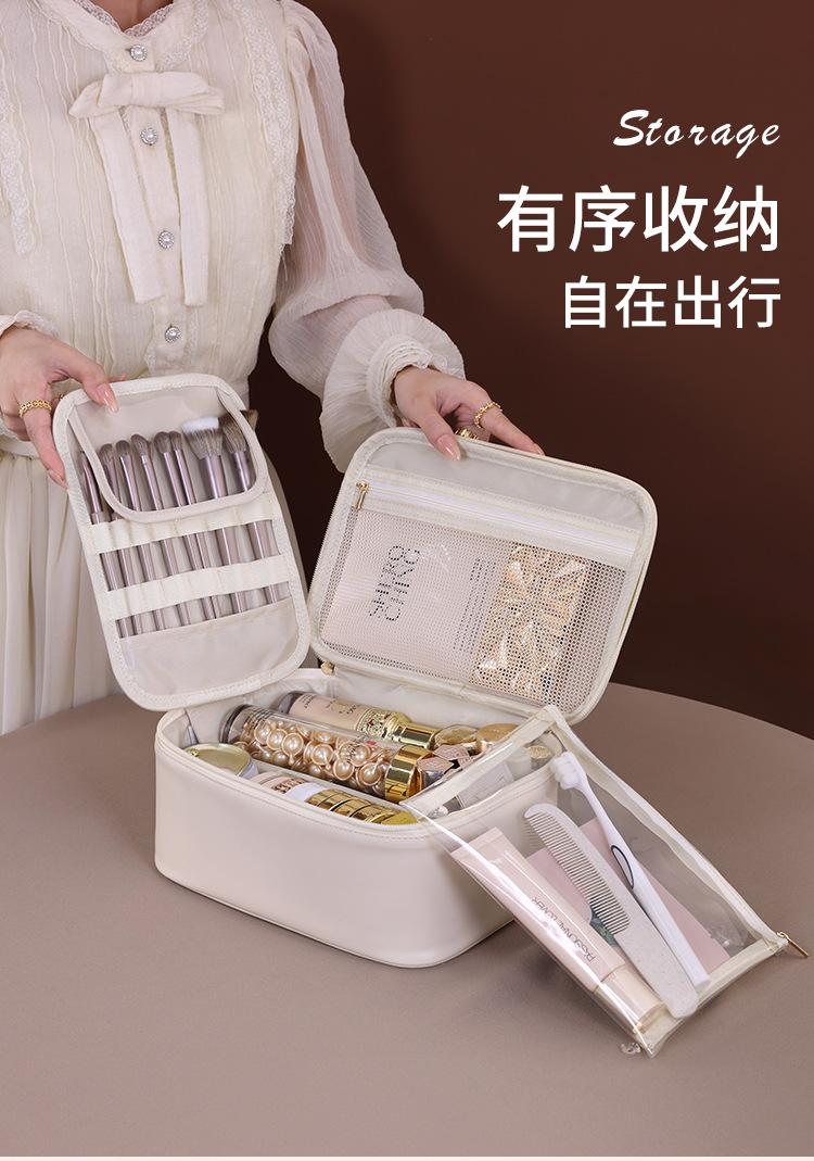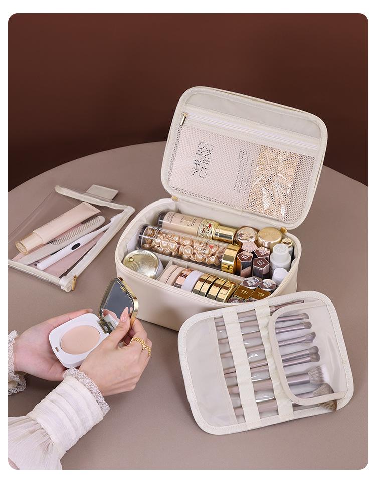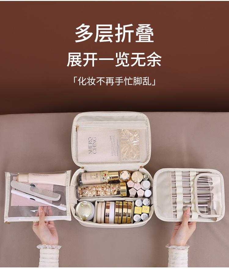 Compra Bolsa Organizadora de Maquillaje Gratuita Transfronteriza, Bolsa de Almacenamiento de Cosméticos de Gran Capacidad, Estuche de Maquillaje Impermeable de Pu Portátil con Divisiones al por mayor en Joom.pro