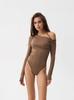 Conjunto de moda sexy de otoño e invierno para mujer, estilo europeo y americano, transfronterizo, de una pieza, de manga larga con hombro caído, corte ajustado, para chica hot, venta al por mayor