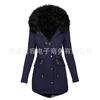 Deseo transfronterizo Amazon ropa de mujer europea y americana otoño e invierno color sólido cuello de piel con capucha de longitud media grueso cálido abrigo acolchado de algodón para mujer
