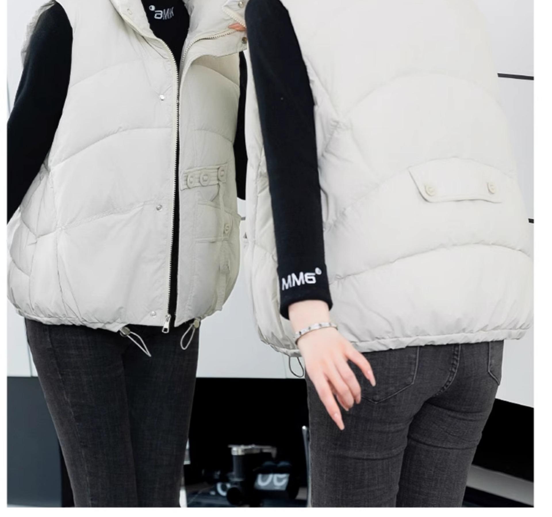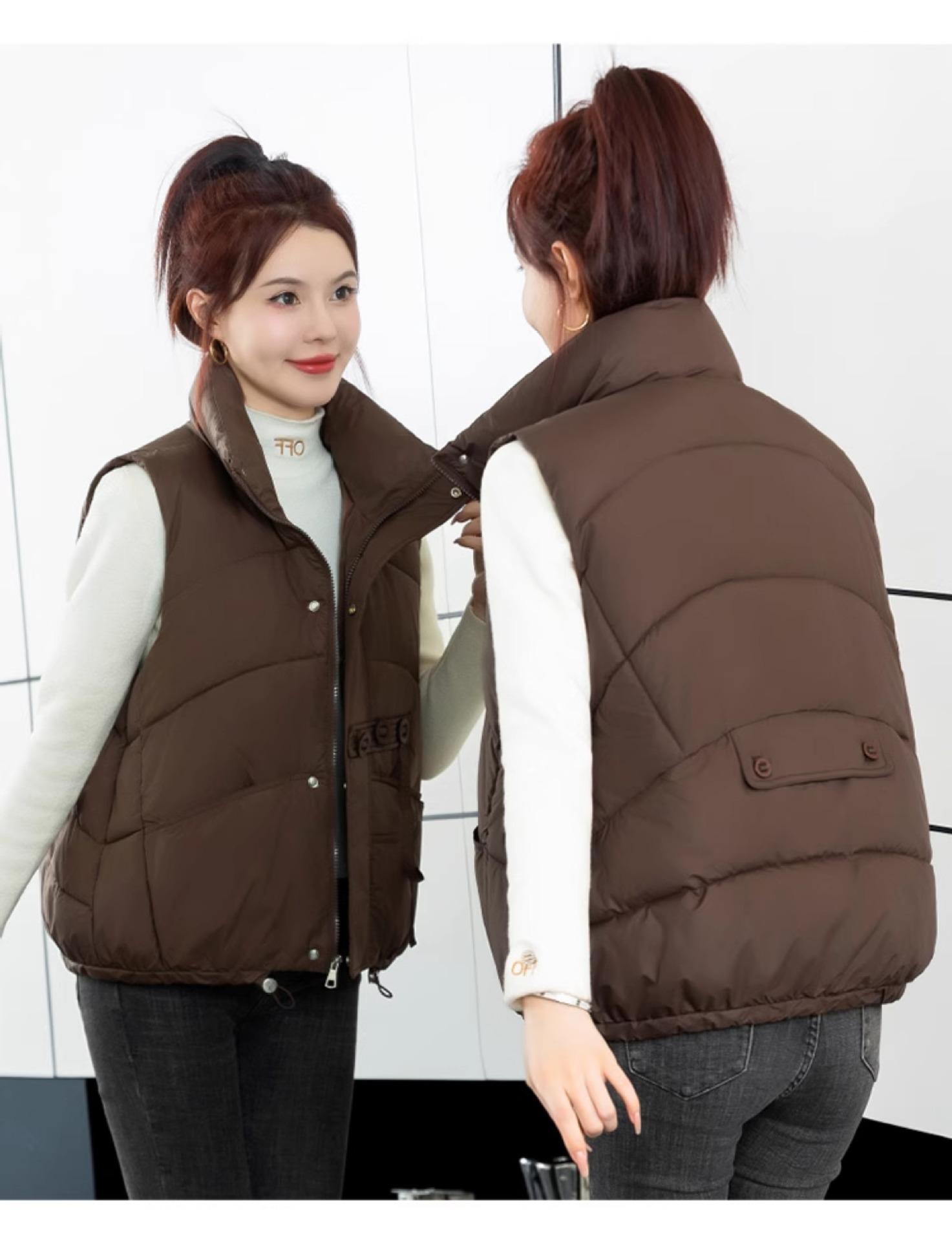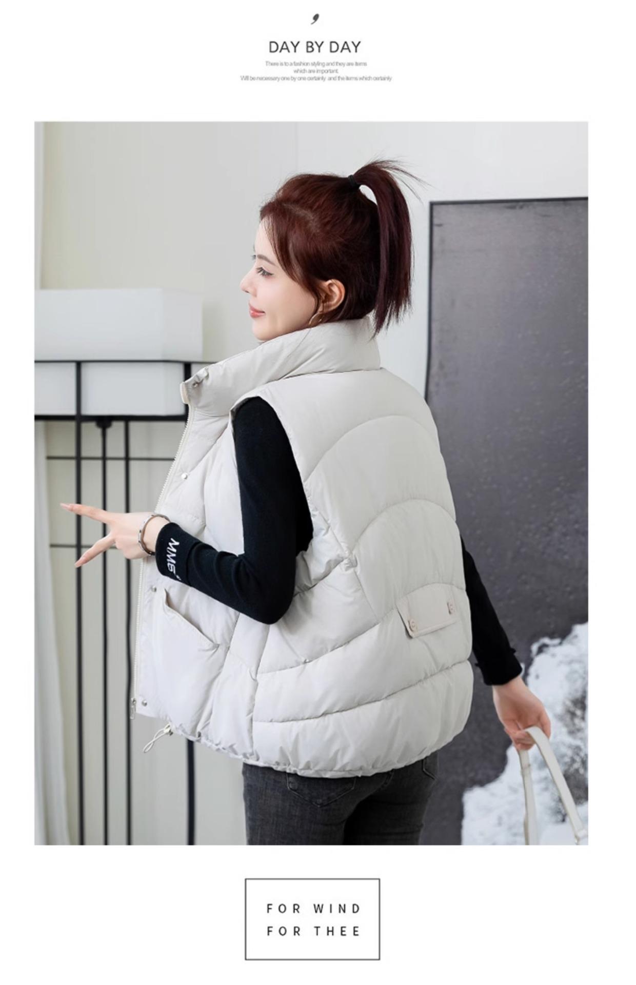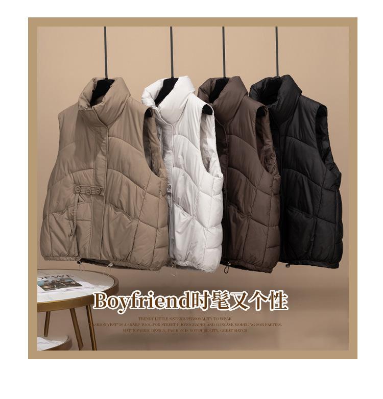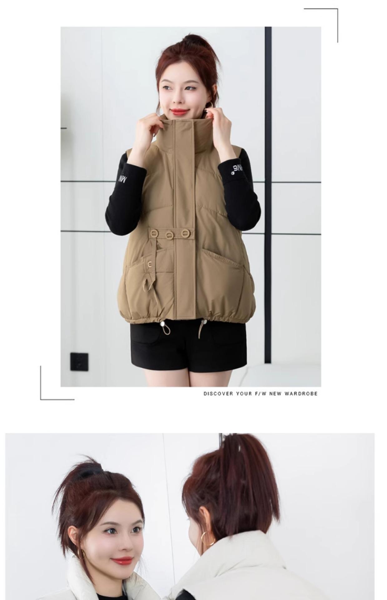 Colete Curto Europeu de Gola Alta Outono e Inverno 2025 Acolchoado com Algodão para Baixo Feminino Popular Elegante Quente Estilo Ocidental Popular Regata
