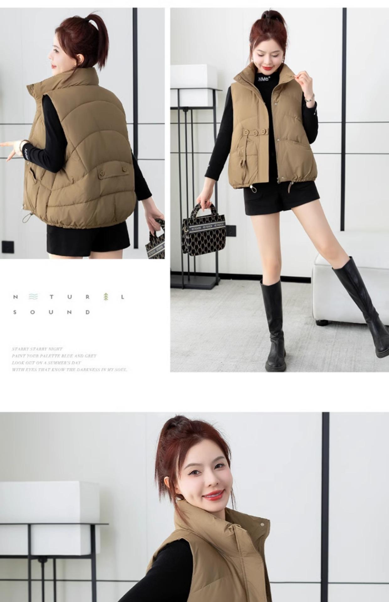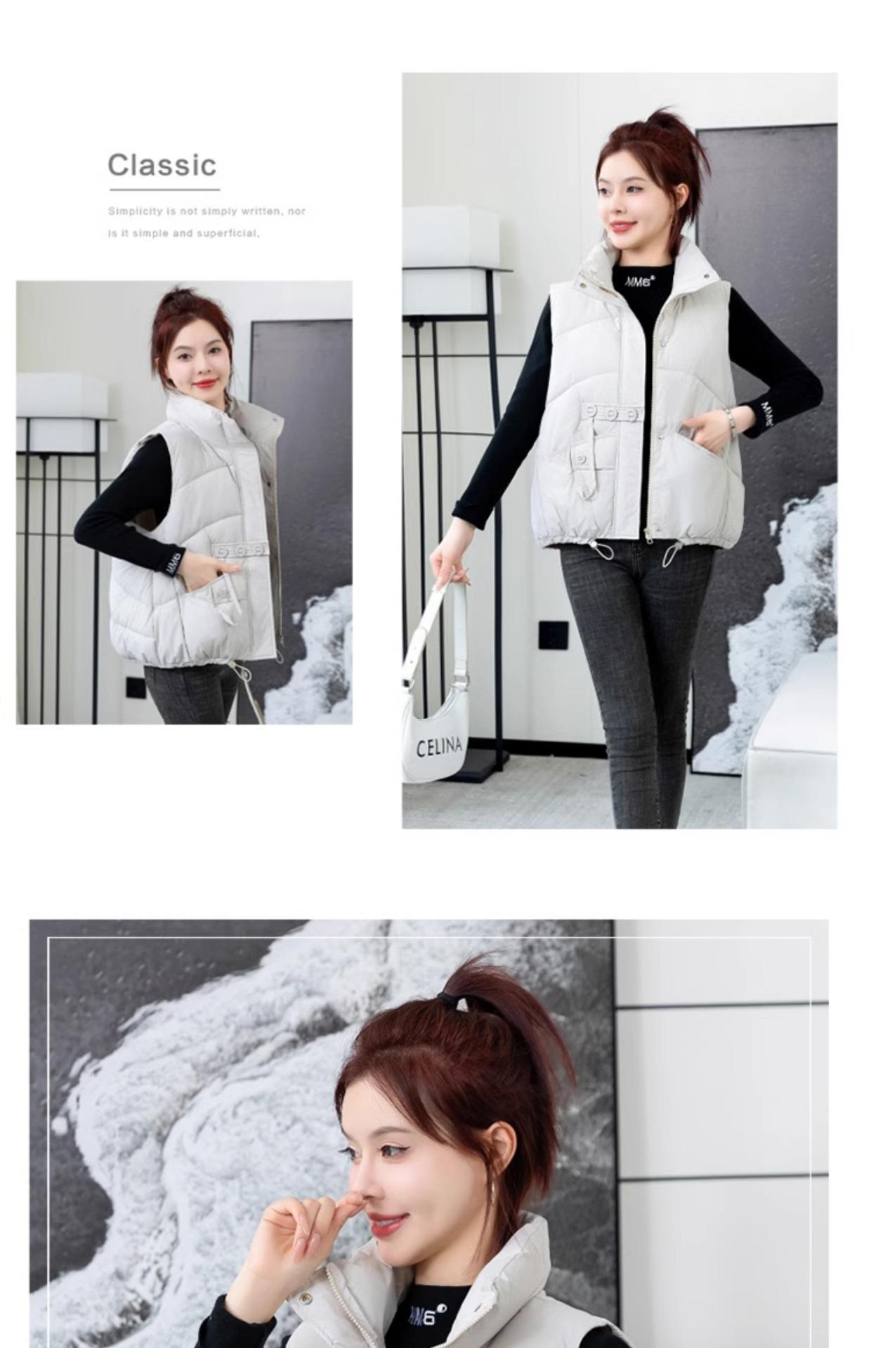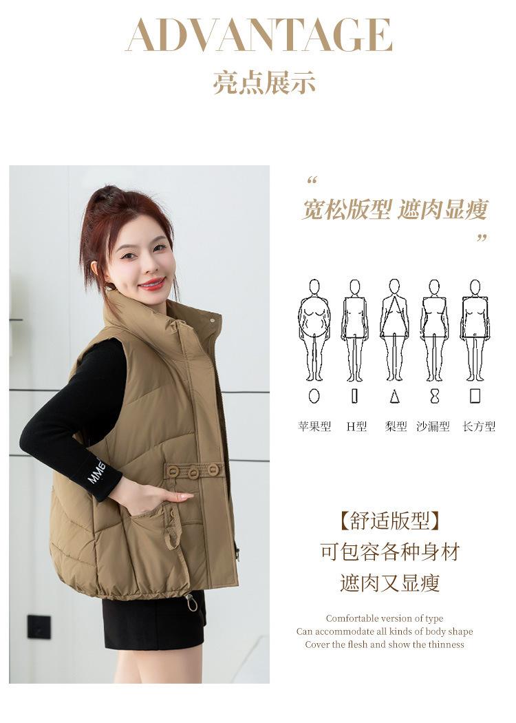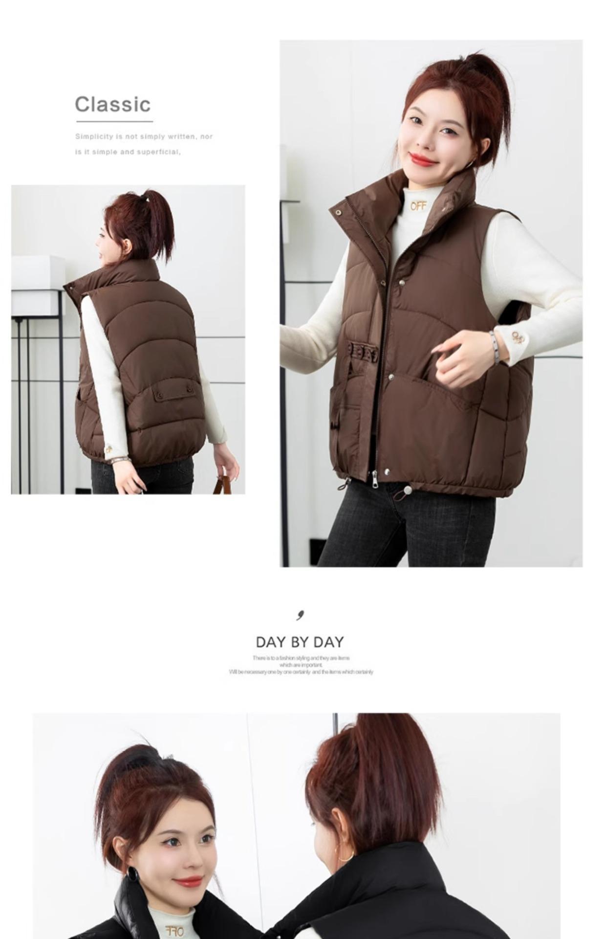 Colete Curto Europeu de Gola Alta Outono e Inverno 2025 Acolchoado com Algodão para Baixo Feminino Popular Elegante Quente Estilo Ocidental Popular Regata