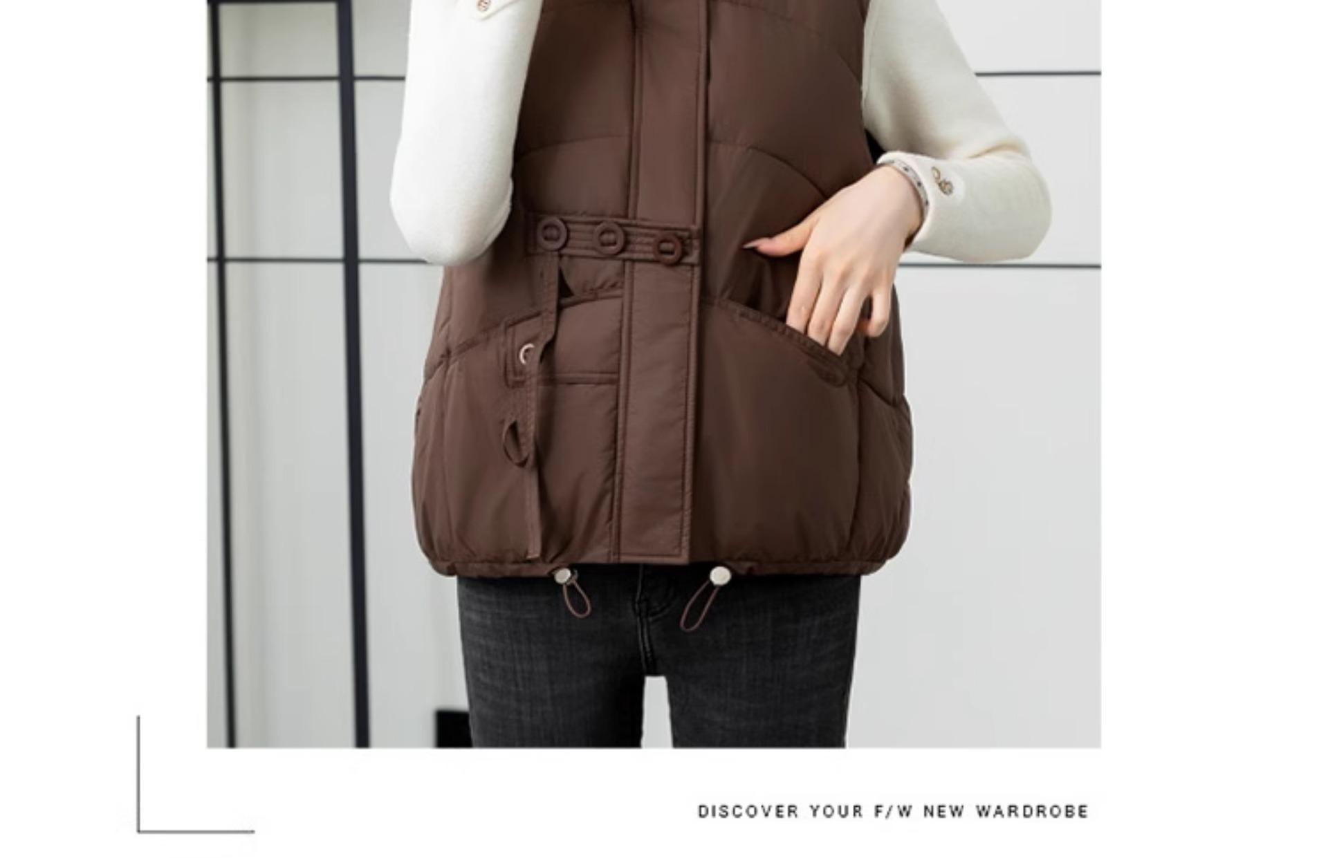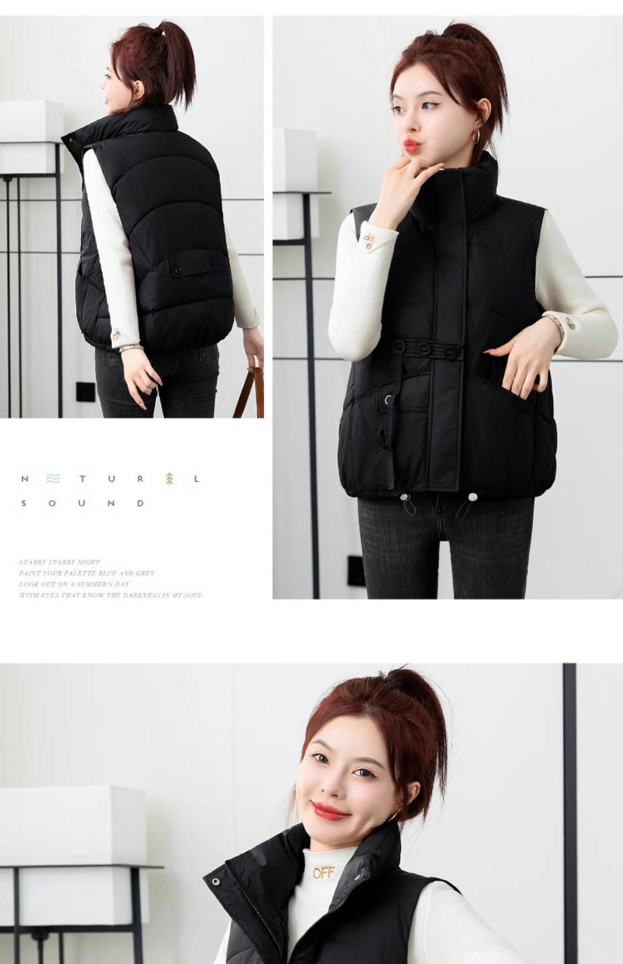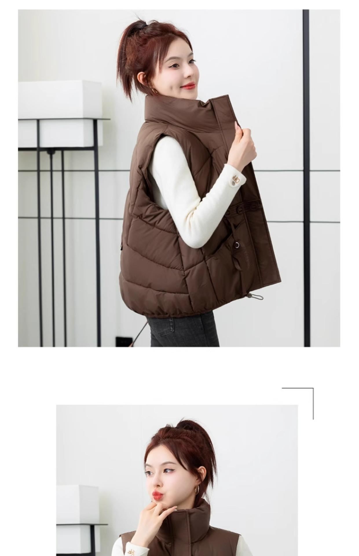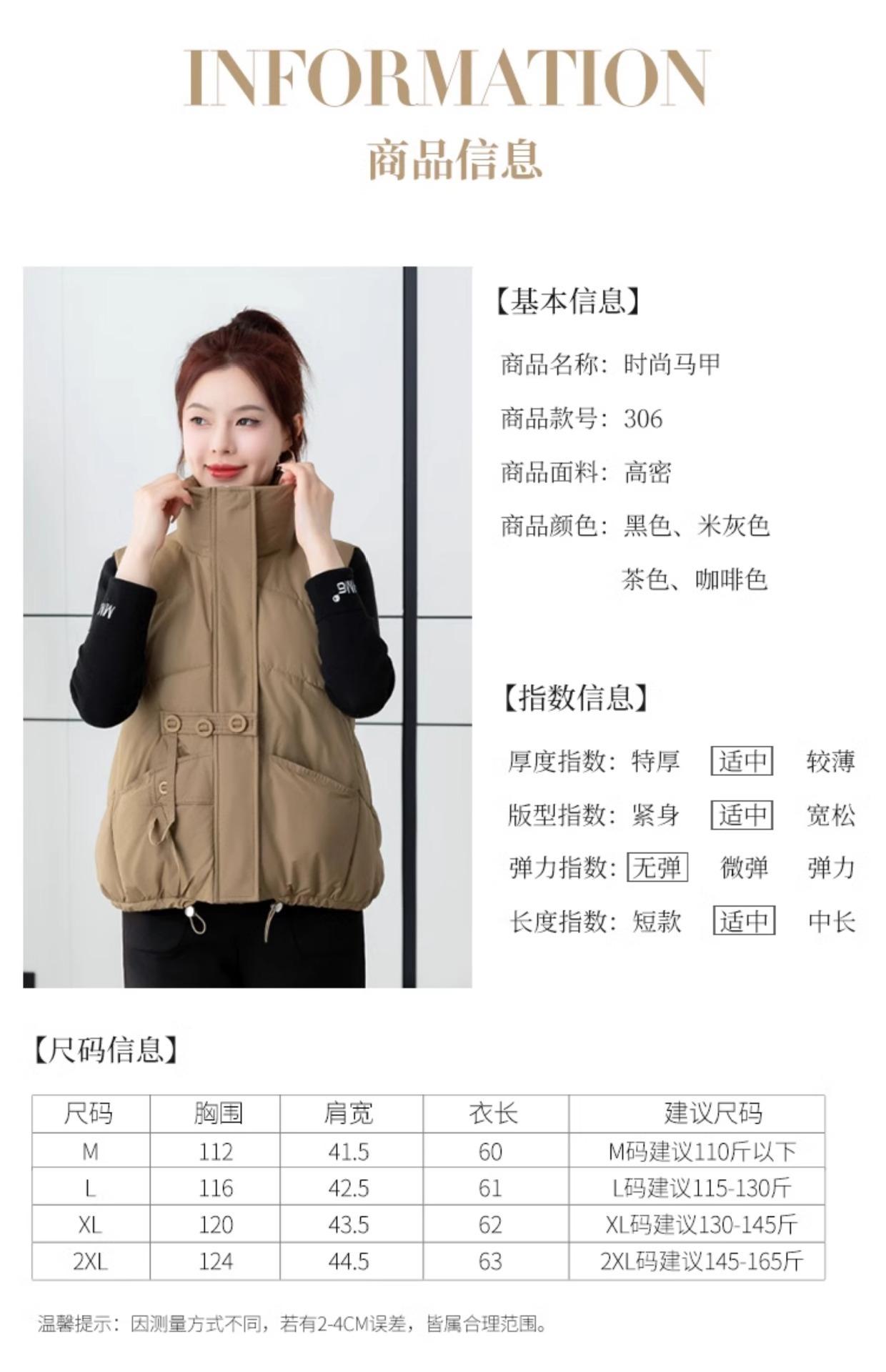 Colete Curto Europeu de Gola Alta Outono e Inverno 2025 Acolchoado com Algodão para Baixo Feminino Popular Elegante Quente Estilo Ocidental Popular Regata